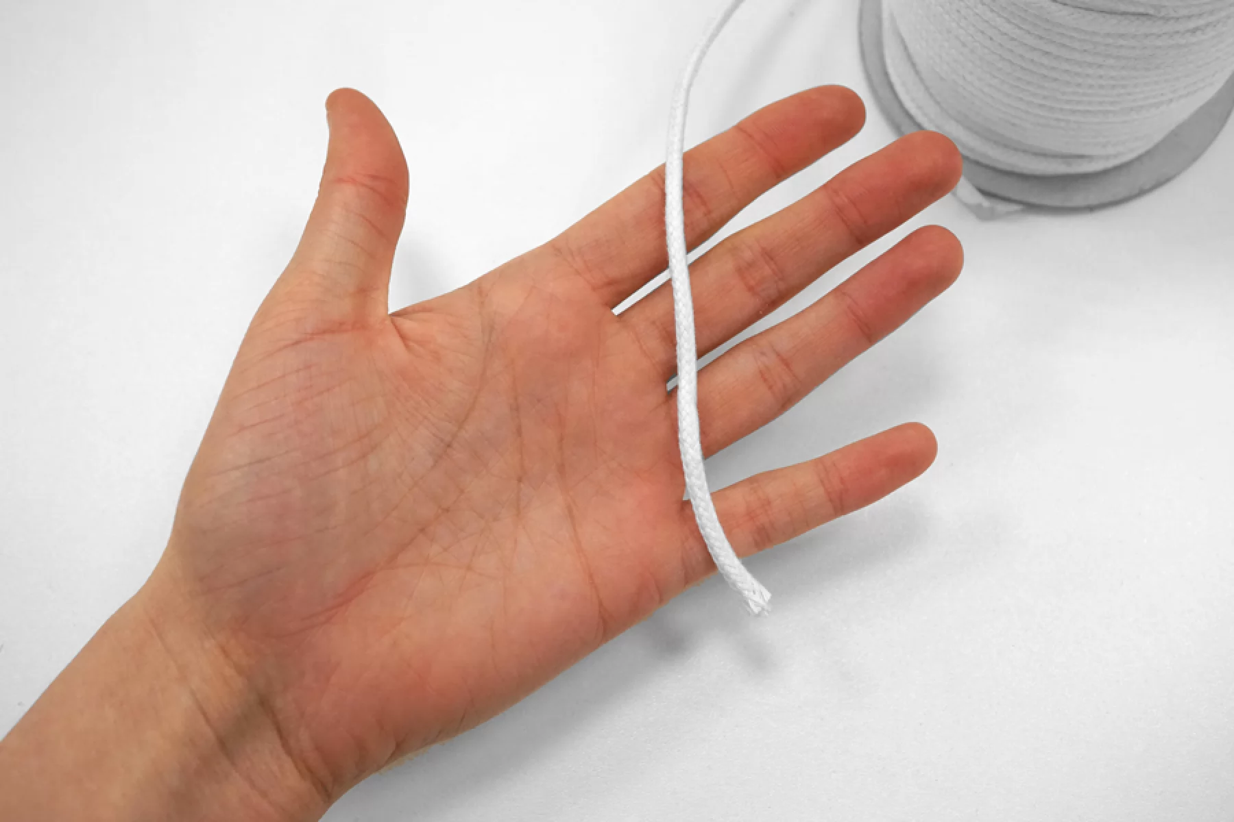 Круглый хлопковый шнур белого цвета, ширина 5 мм.