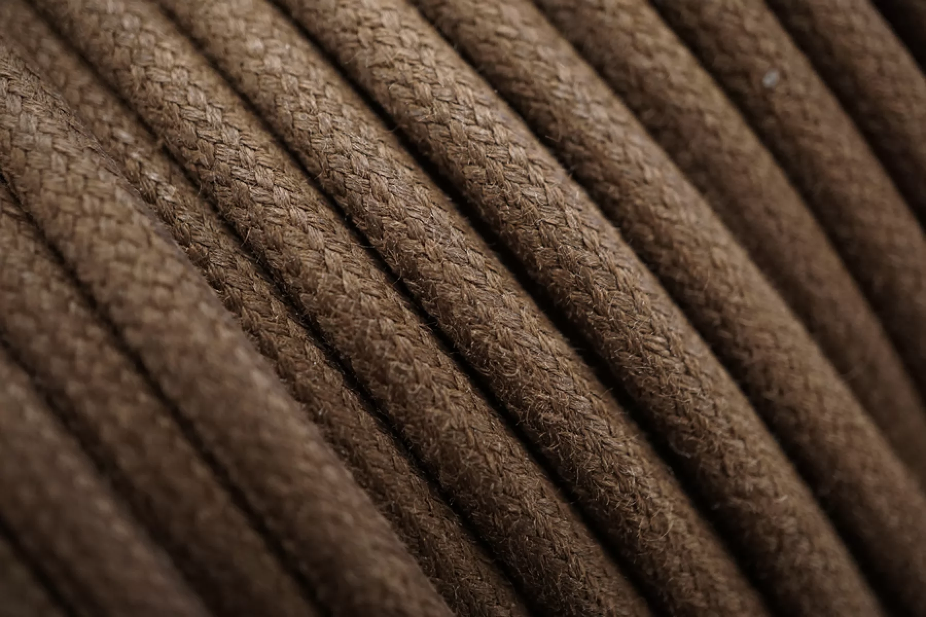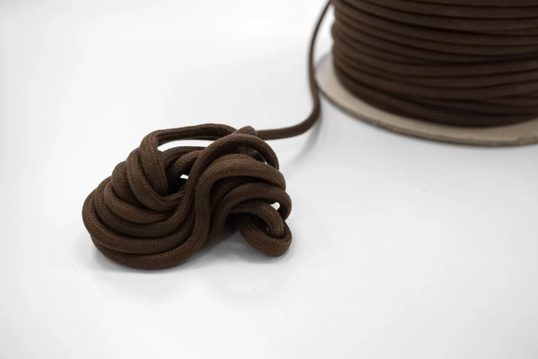 Круглый хлопковый шнур коричневого цвета, ширина 5 мм.