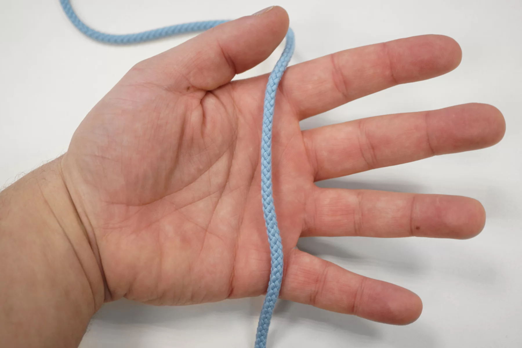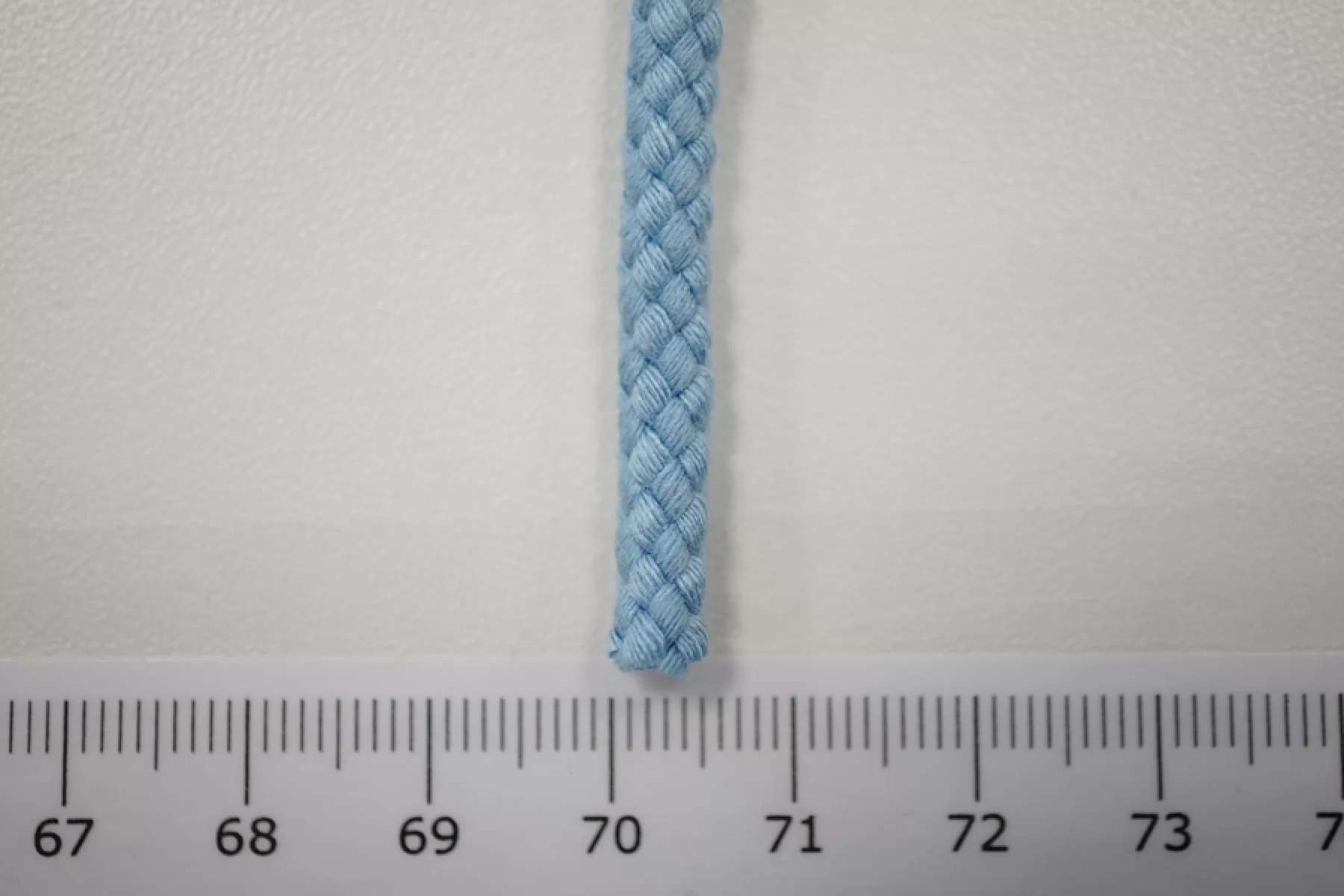 Круглый синтетический (визуально как хлопковый) шнур голубого цвета.