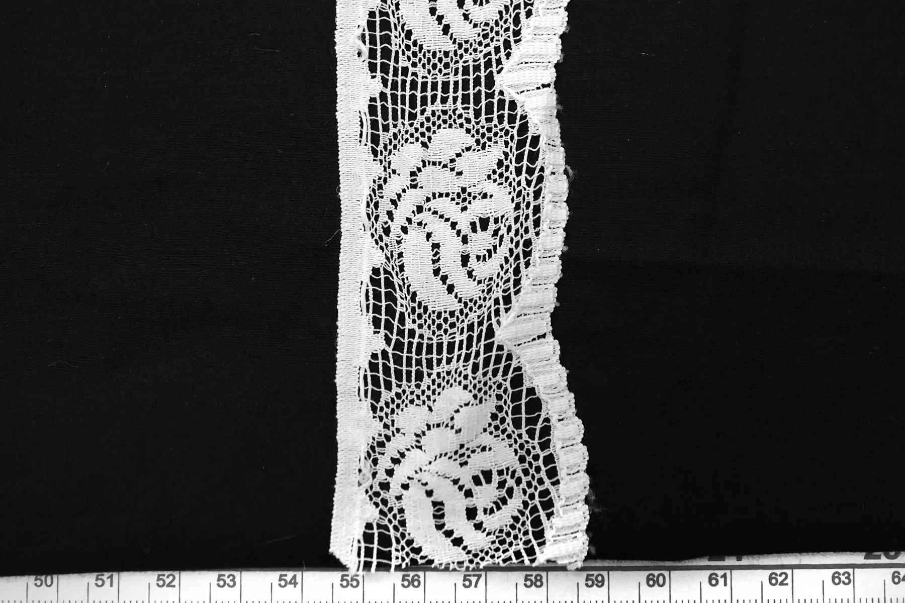 Итальянское кружево белого цвета. Мягкое, пластичное. Не тянется. Отлично подойдет для пошива нижнего белья, отделки одежды и аксессуаров.