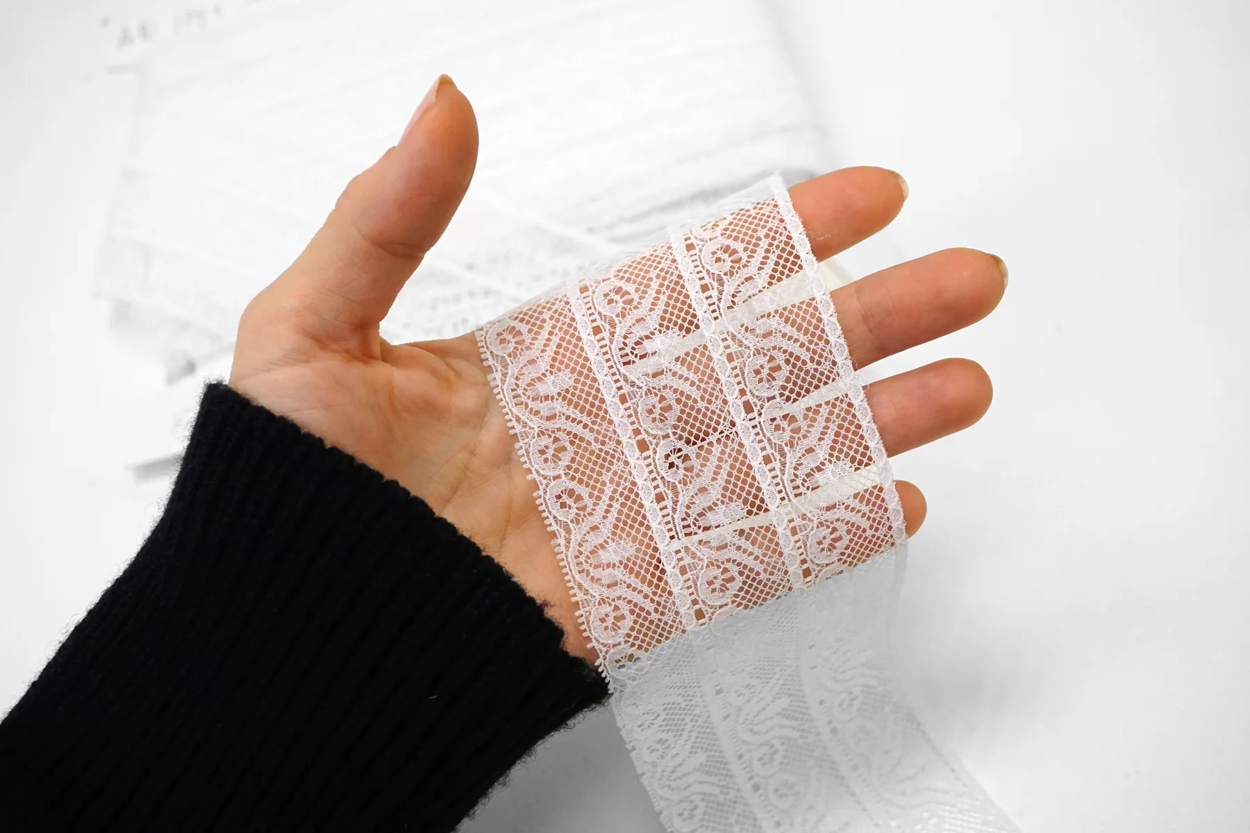 Итальянское кружево белого цвета. Мягкое, пластичное. Не тянется. Отлично подойдет для пошива нижнего белья, отделки одежды и аксессуаров.