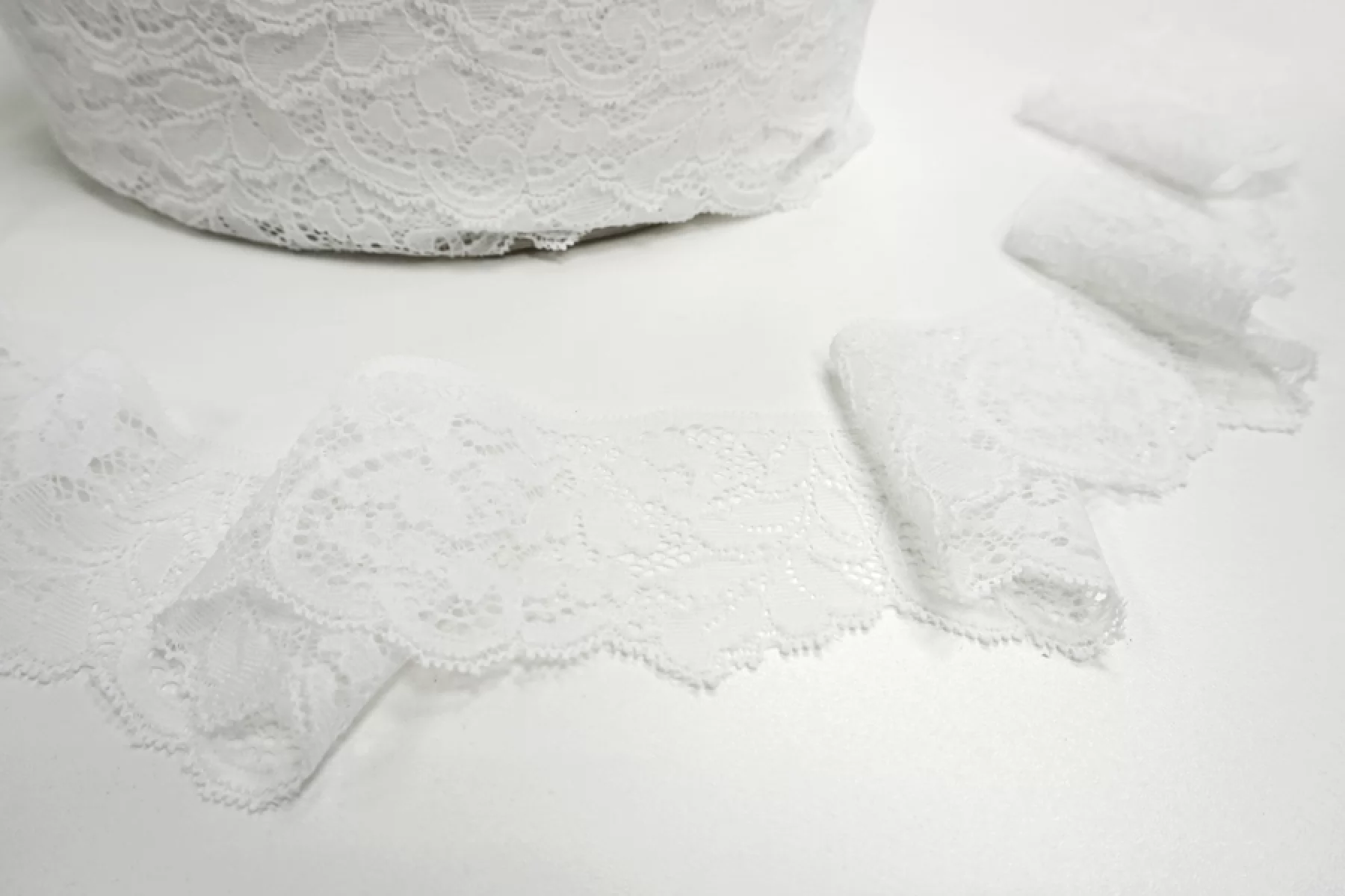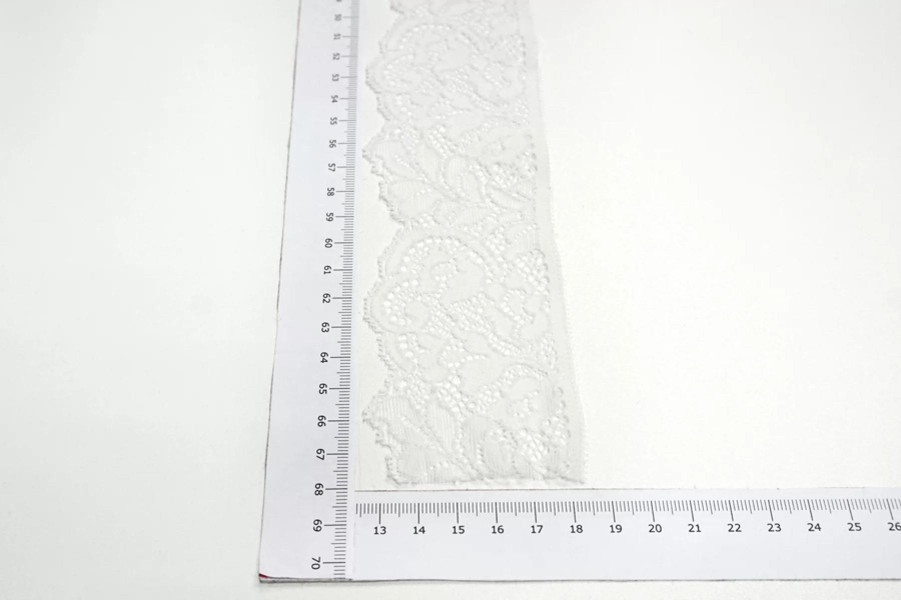 Итальянское кружево белого цвета. Мягкое, пластичное. Отлично подойдет для пошива нижнего белья, отделки одежды и аксессуаров.
