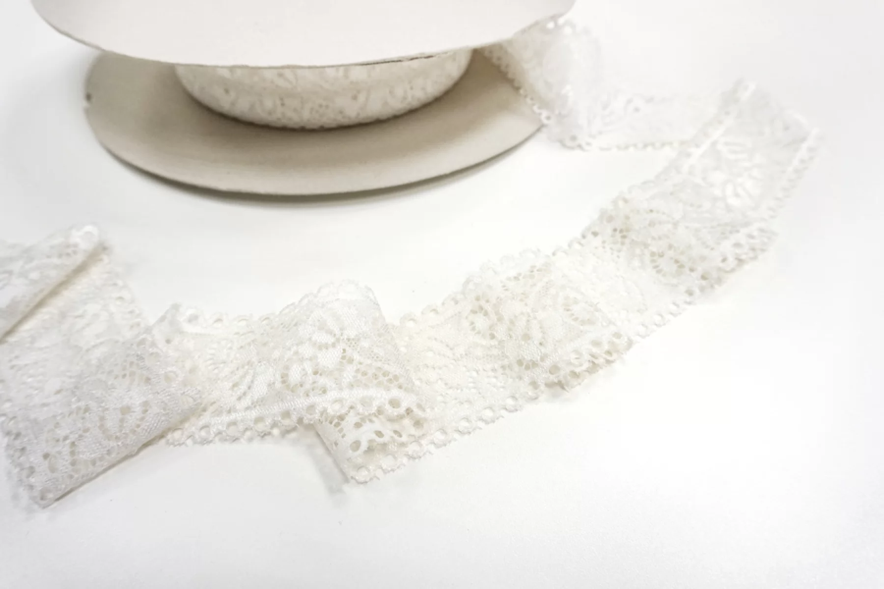 Итальянское кружево белого цвета. Мягкое, пластичное. Отлично подойдет для пошива нижнего белья, отделки одежды и аксессуаров.