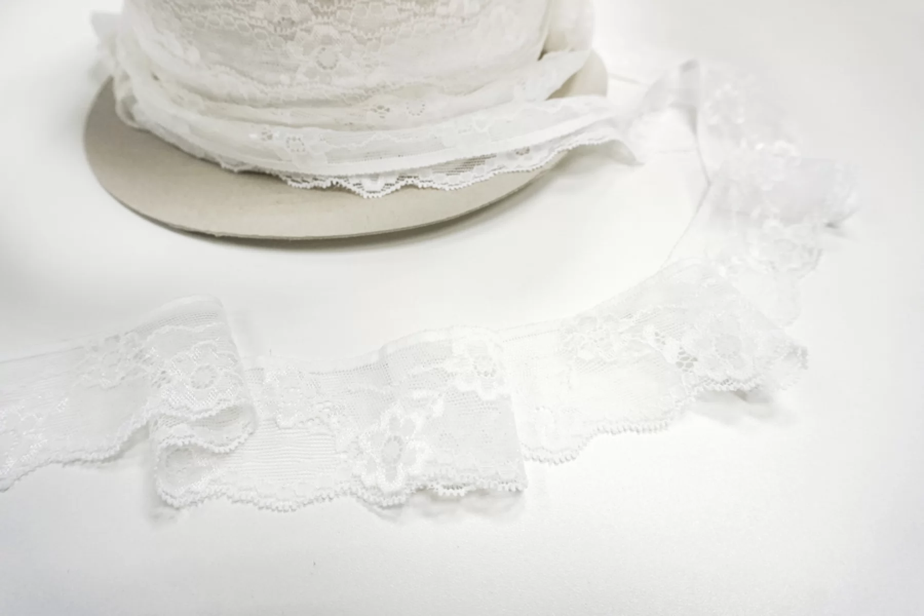 Итальянское кружево белого цвета. Мягкое, пластичное. Отлично подойдет для пошива нижнего белья, отделки одежды и аксессуаров.