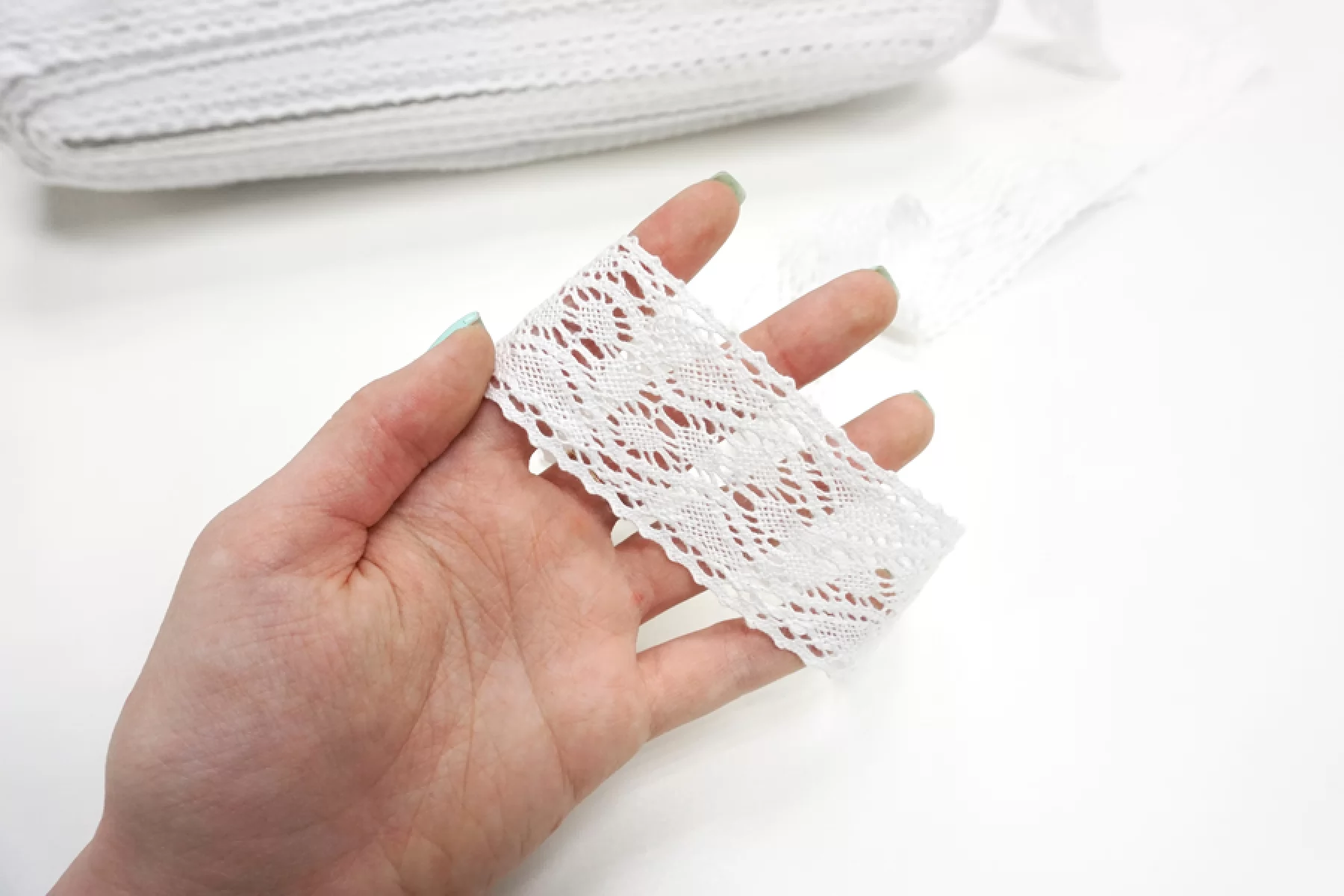 Итальянское кружево белого цвета. Мягкое, хлопковое. Отлично подойдет для пошива нижнего белья, отделки одежды и аксессуаров.