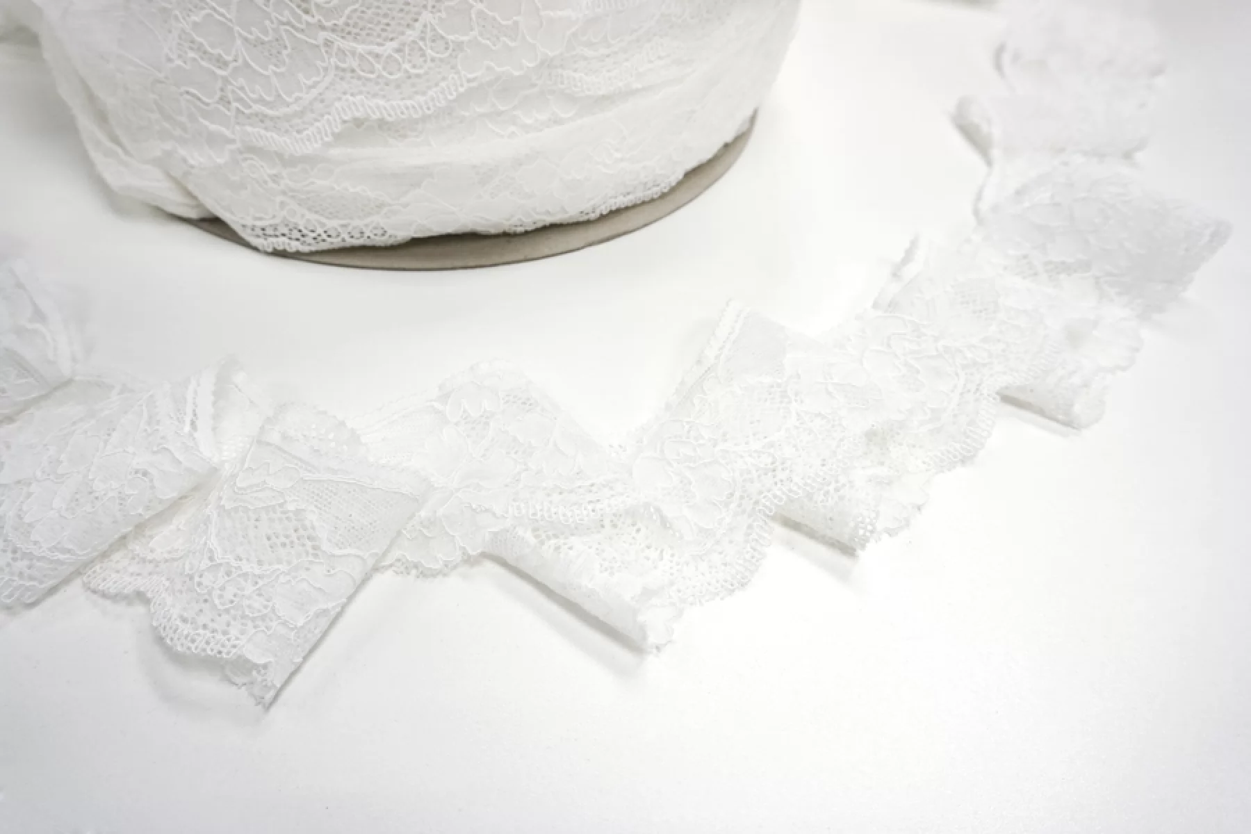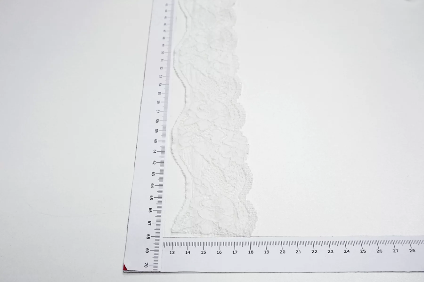 Итальянское кружево белого цвета. Мягкое, пластичное. Отлично подойдет для пошива нижнего белья, отделки одежды и аксессуаров.