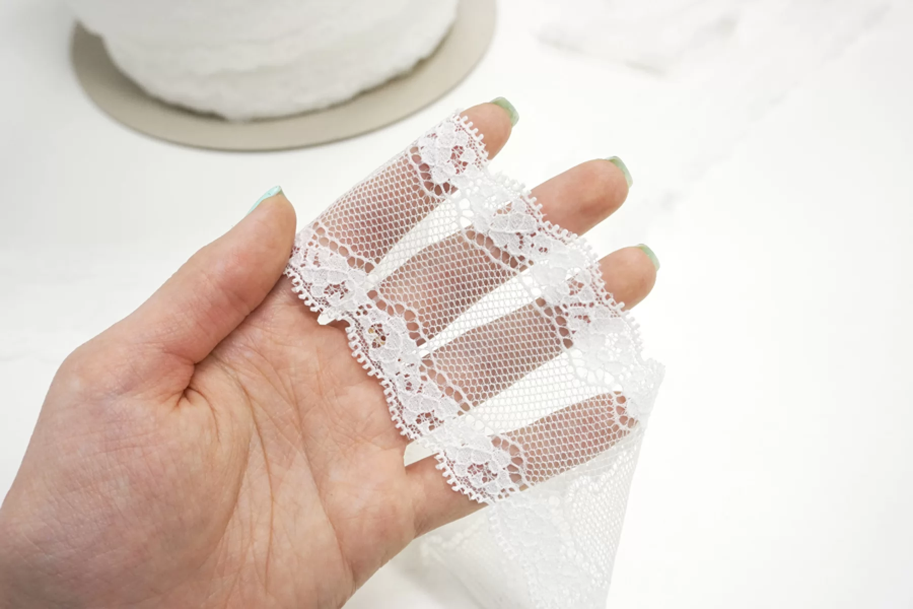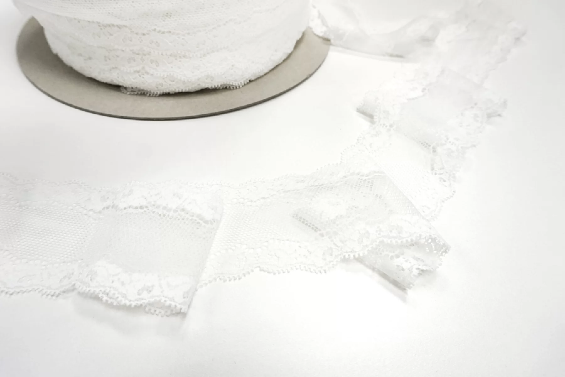 Итальянское кружево белого цвета из хлопка. Мягкое, пластичное. Отлично подойдет для пошива нижнего белья, отделки одежды и аксессуаров.