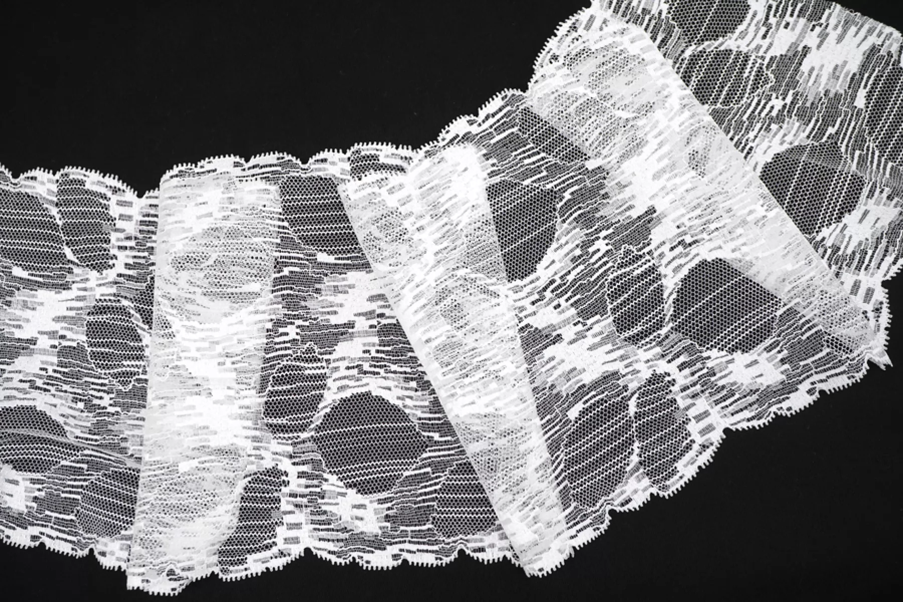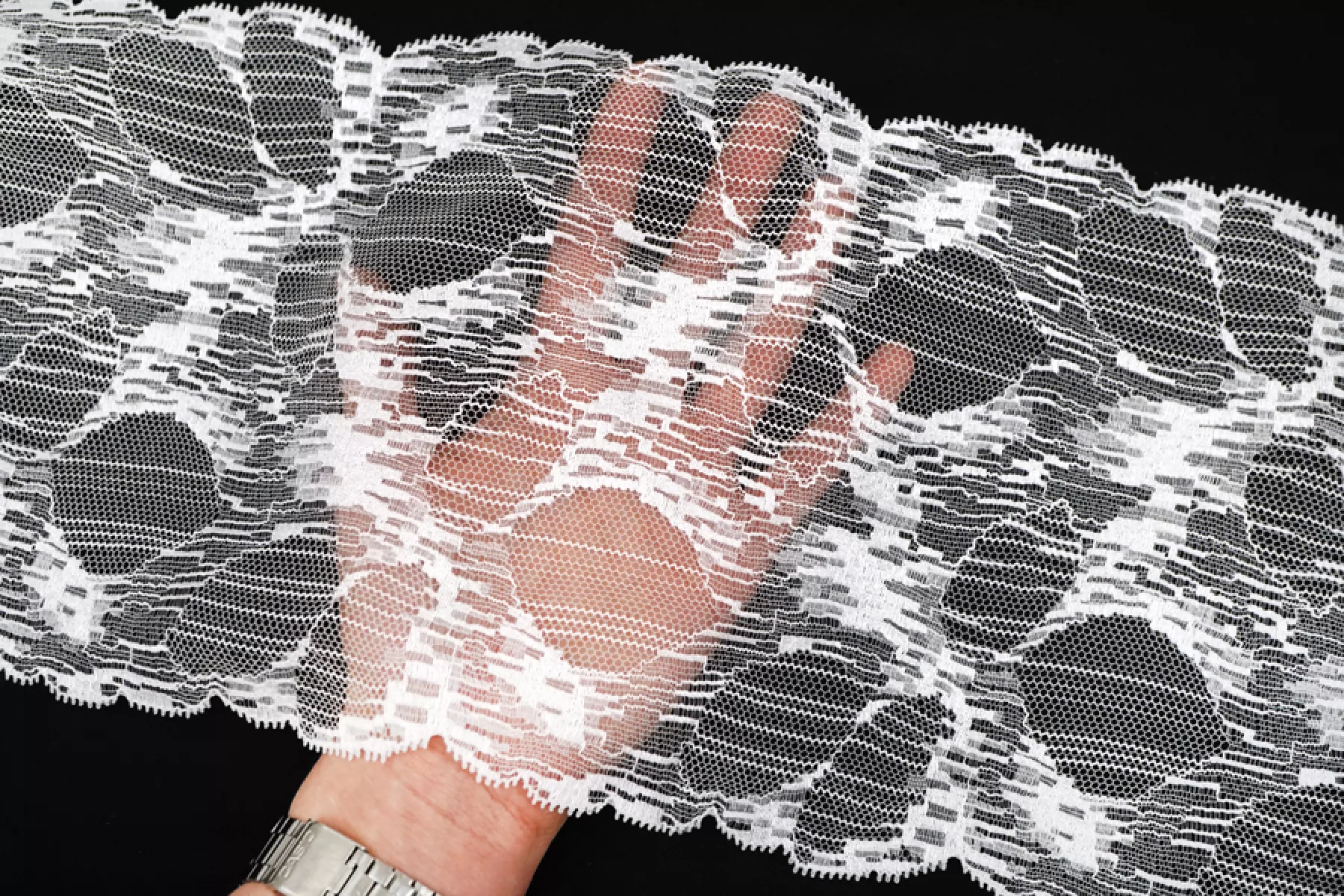 Итальянское эластичное кружево белого цвета. Мягкое, пластичное. Отлично подойдет для пошива нижнего белья, отделки одежды и аксессуаров.