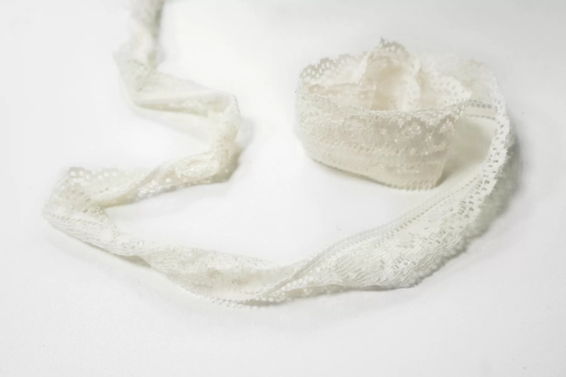 Итальянское кружево бледно-молочного цвета. Мягкое, пластичное. Отлично подойдет для пошива нижнего белья, отделки одежды и аксессуаров.