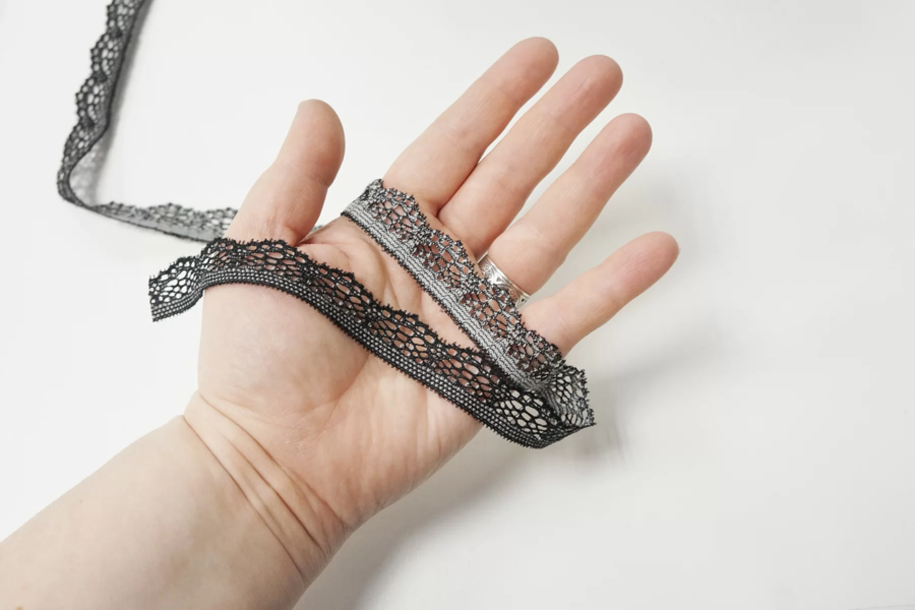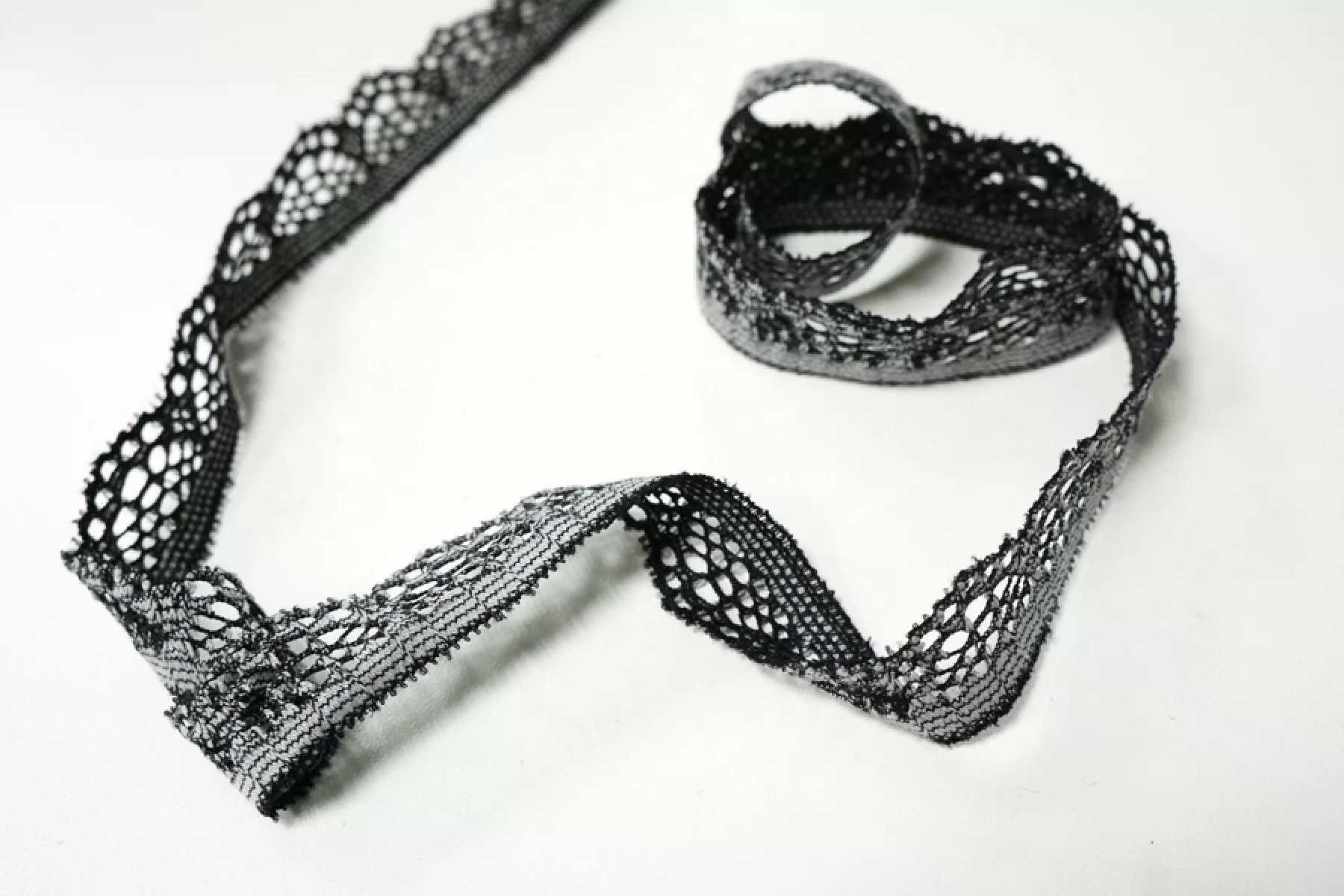 Итальянское кружево черно-серого цвета. Мягкое, пластичное. Отлично подойдет для пошива нижнего белья, отделки одежды и аксессуаров.