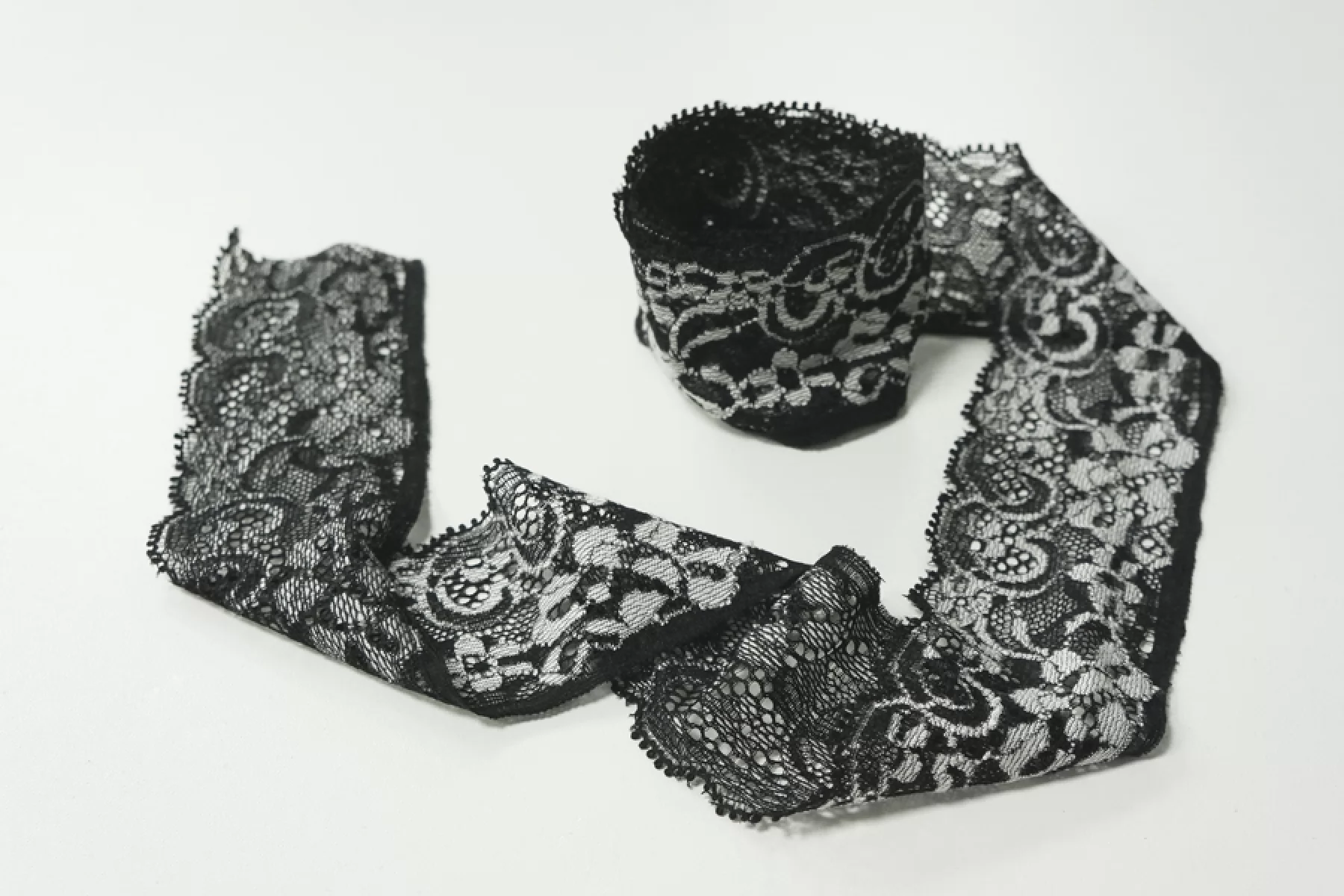 Итальянское кружево черно-серого цвета. Мягкое, пластичное. Отлично подойдет для пошива нижнего белья, отделки одежды и аксессуаров.
