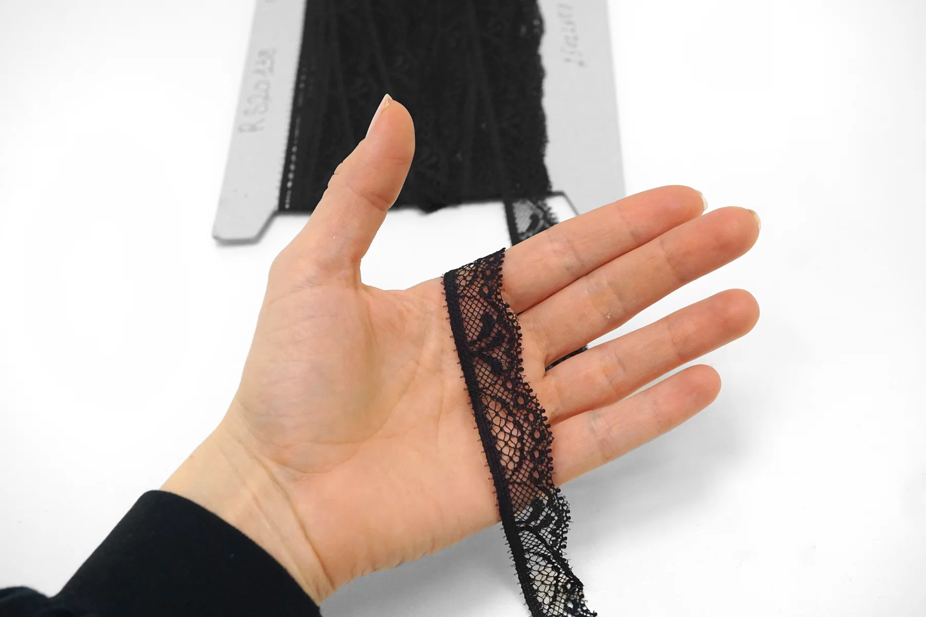 Итальянское кружево черного цвета. Отлично подойдет для пошива нижнего белья, отделки одежды и аксессуаров.