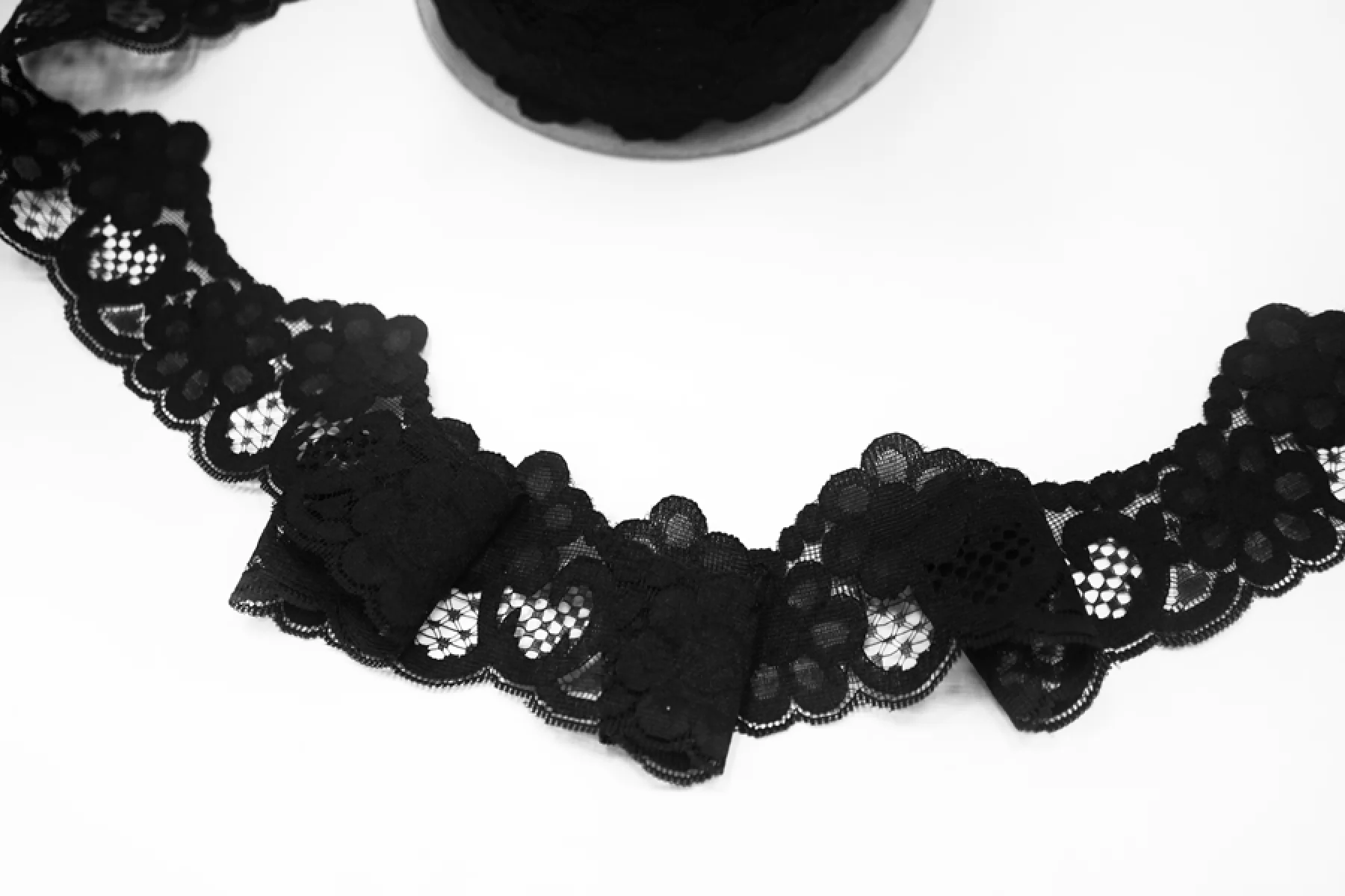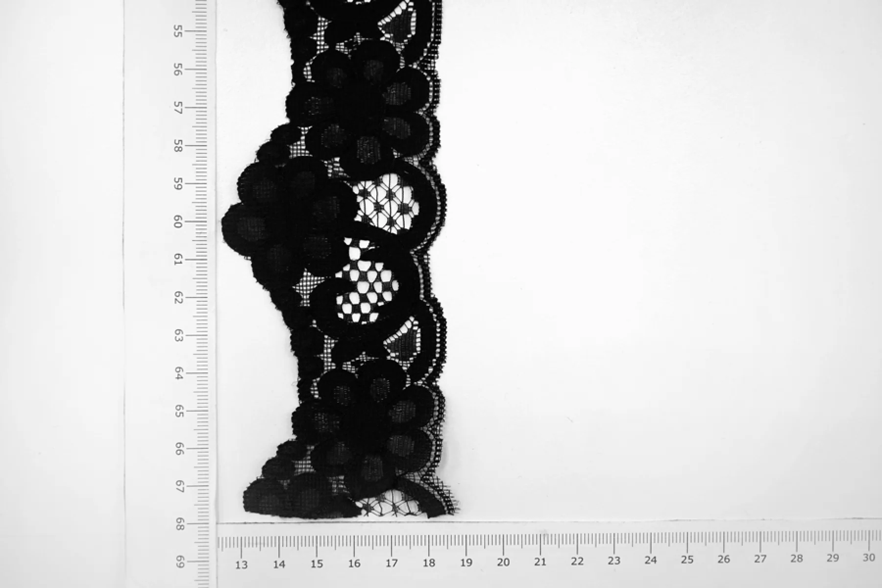 Итальянское кружево черного цвета . Мягкое, пластичное. Отлично подойдет для пошива нижнего белья, отделки одежды и аксессуаров.