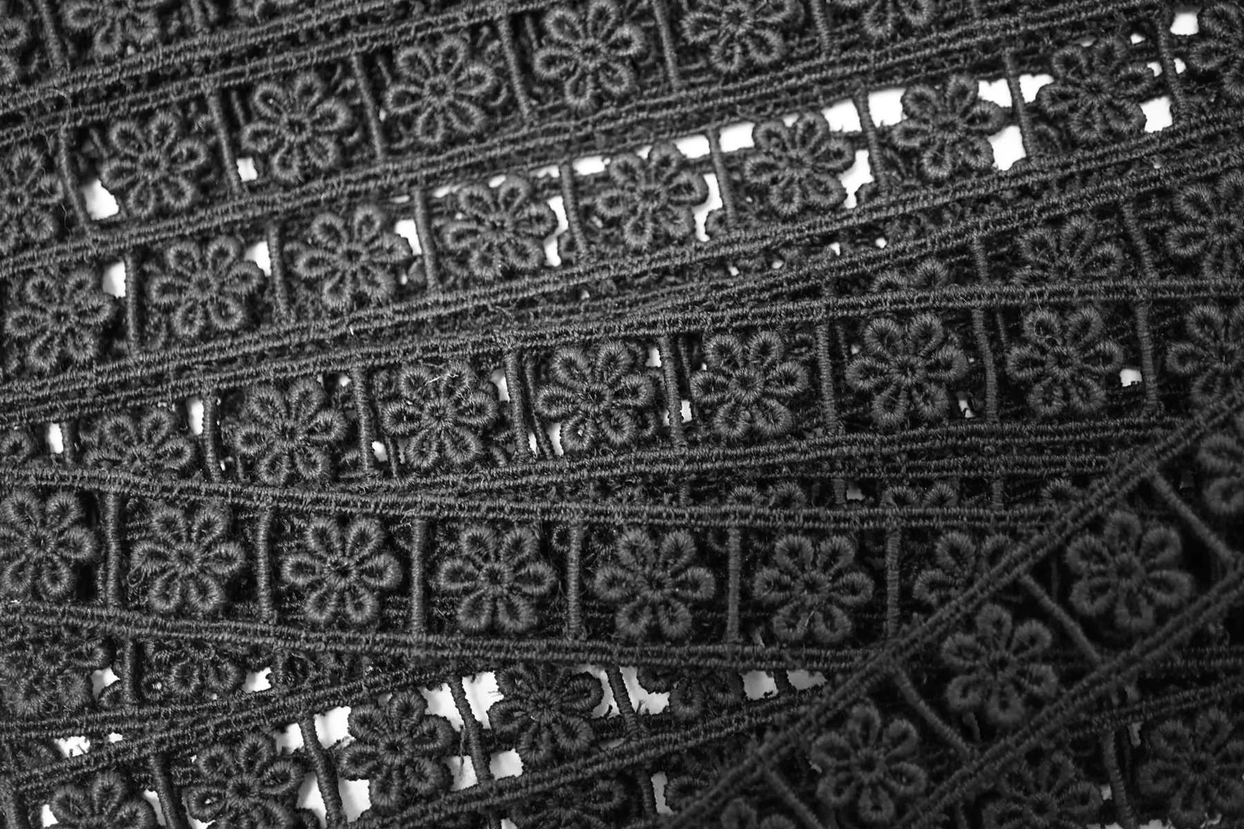 Итальянское кружево черного цвета. Отлично подойдет для пошива нижнего белья, отделки одежды и аксессуаров.