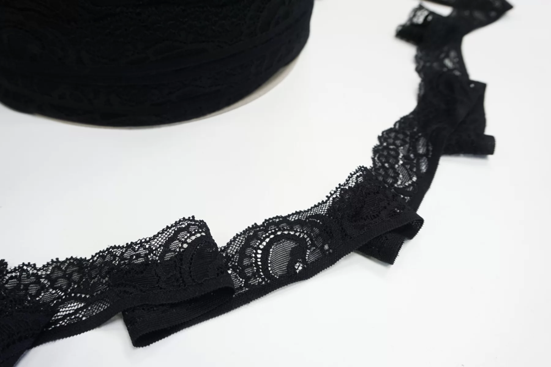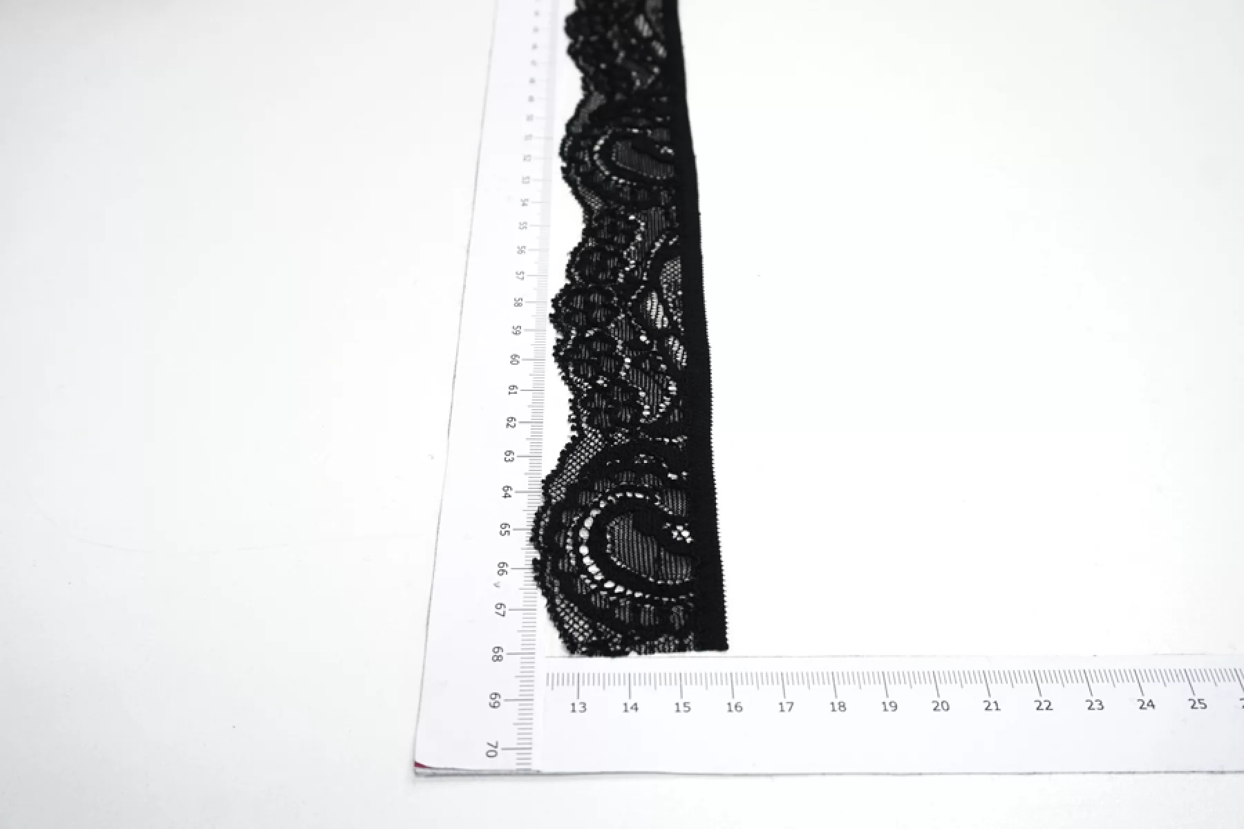 Итальянское кружево черного цвета. Мягкое, пластичное. Отлично подойдет для пошива нижнего белья, отделки одежды и аксессуаров.