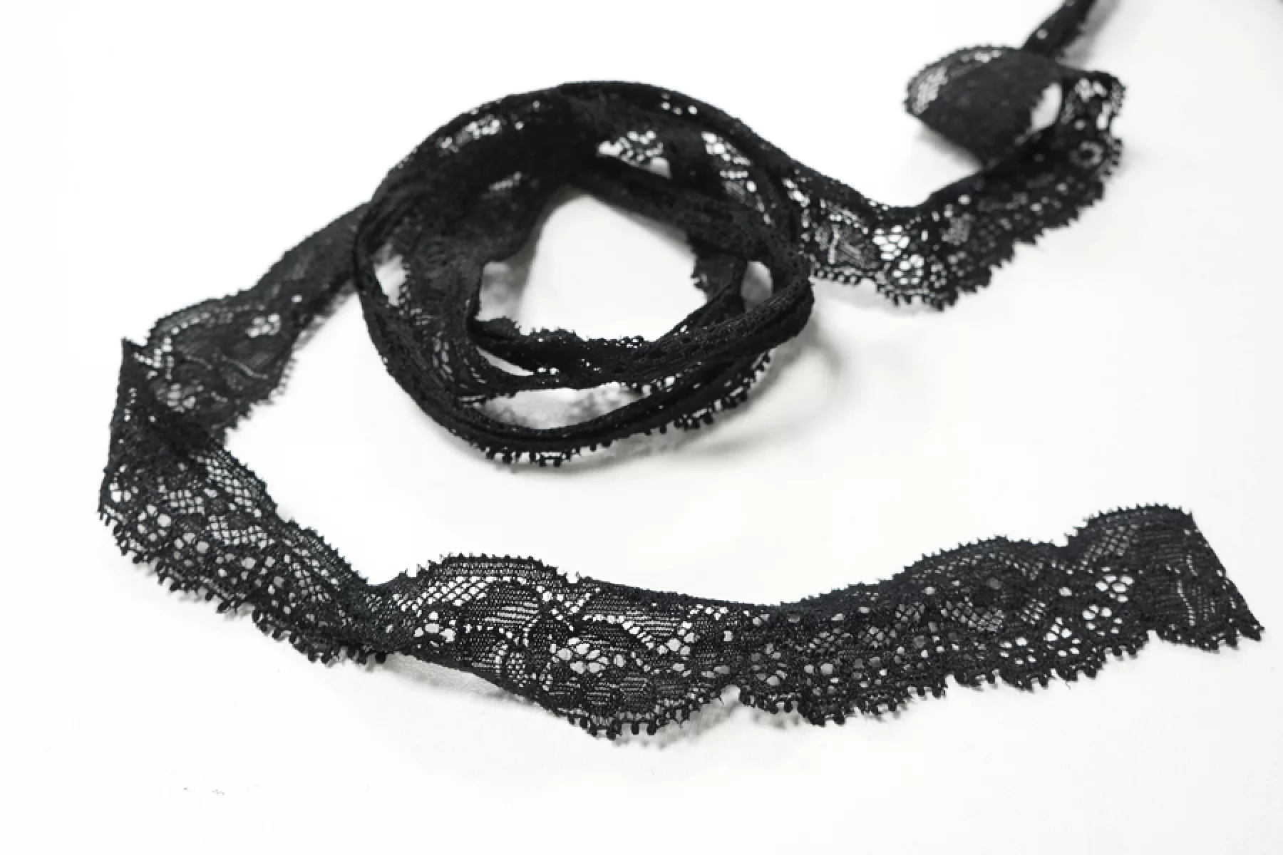 Итальянское кружево черного цвета. Мягкое, пластичное. Отлично подойдет для пошива нижнего белья, отделки одежды и аксессуаров.