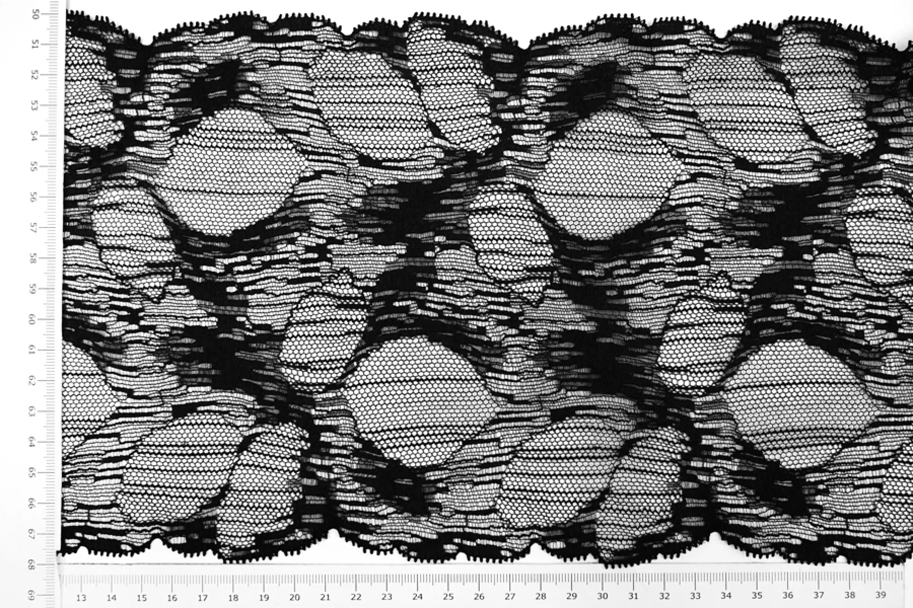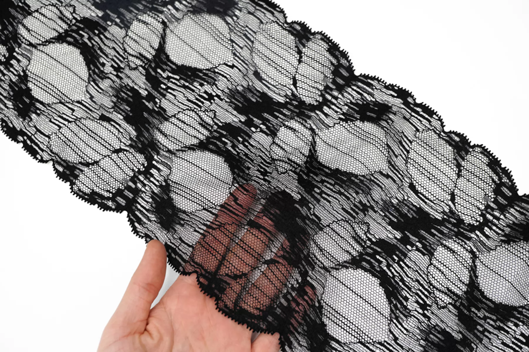 Итальянское эластичное кружево черного цвета. Мягкое, пластичное. Отлично подойдет для пошива нижнего белья, отделки одежды и аксессуаров.