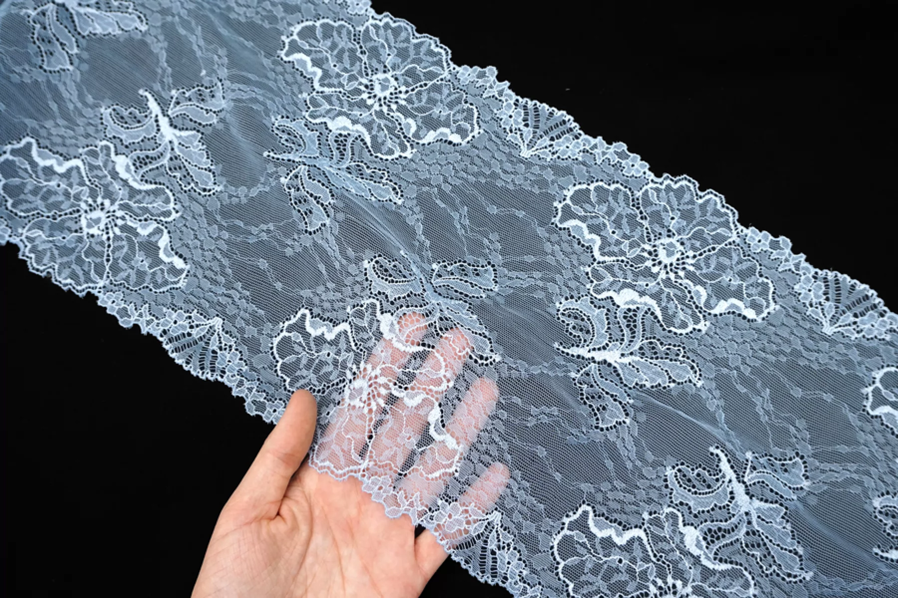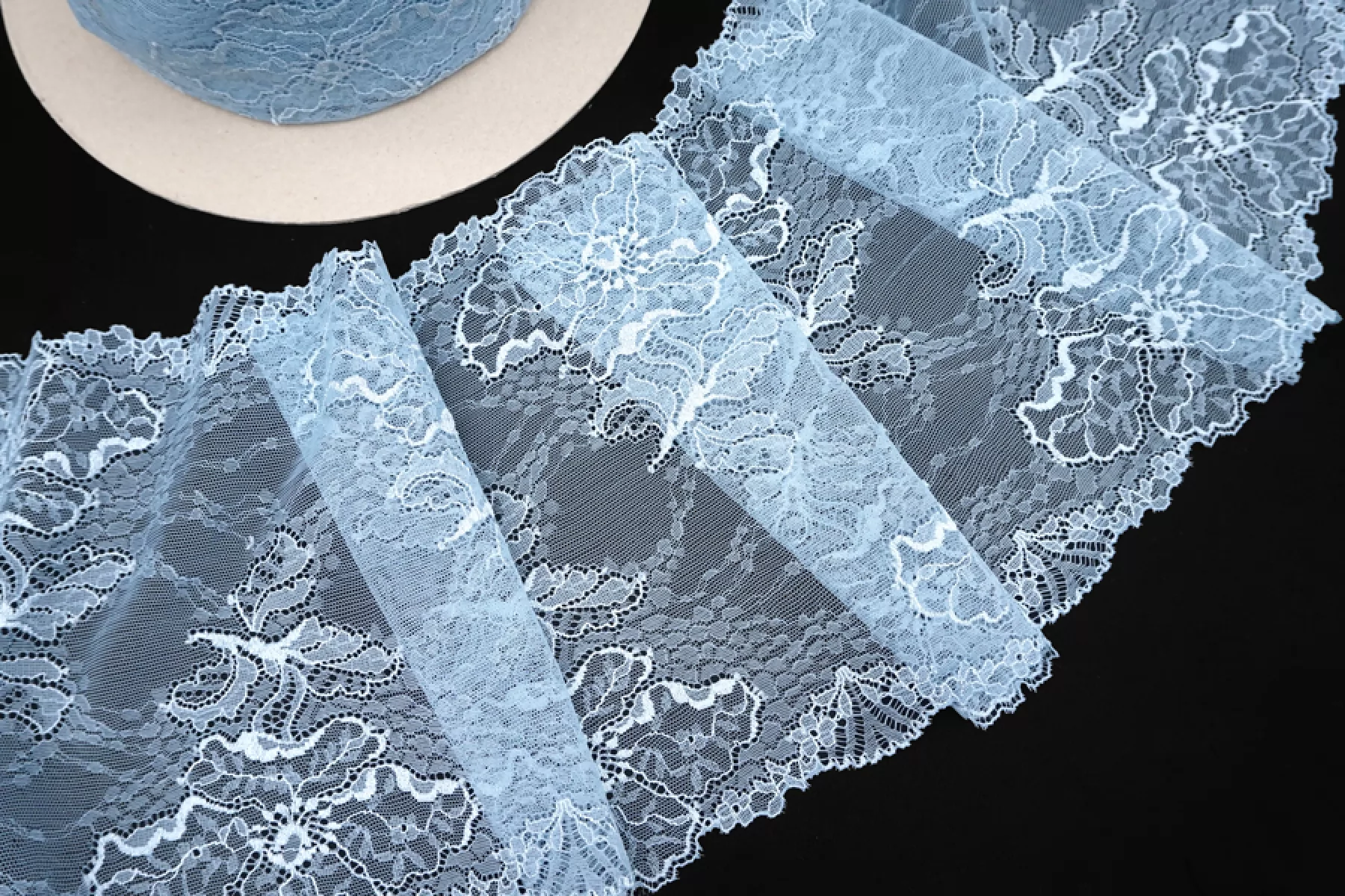 Итальянское эластичное голубого цвета. Мягкое, пластичное. Отлично подойдет для пошива нижнего белья, отделки одежды и аксессуаров.