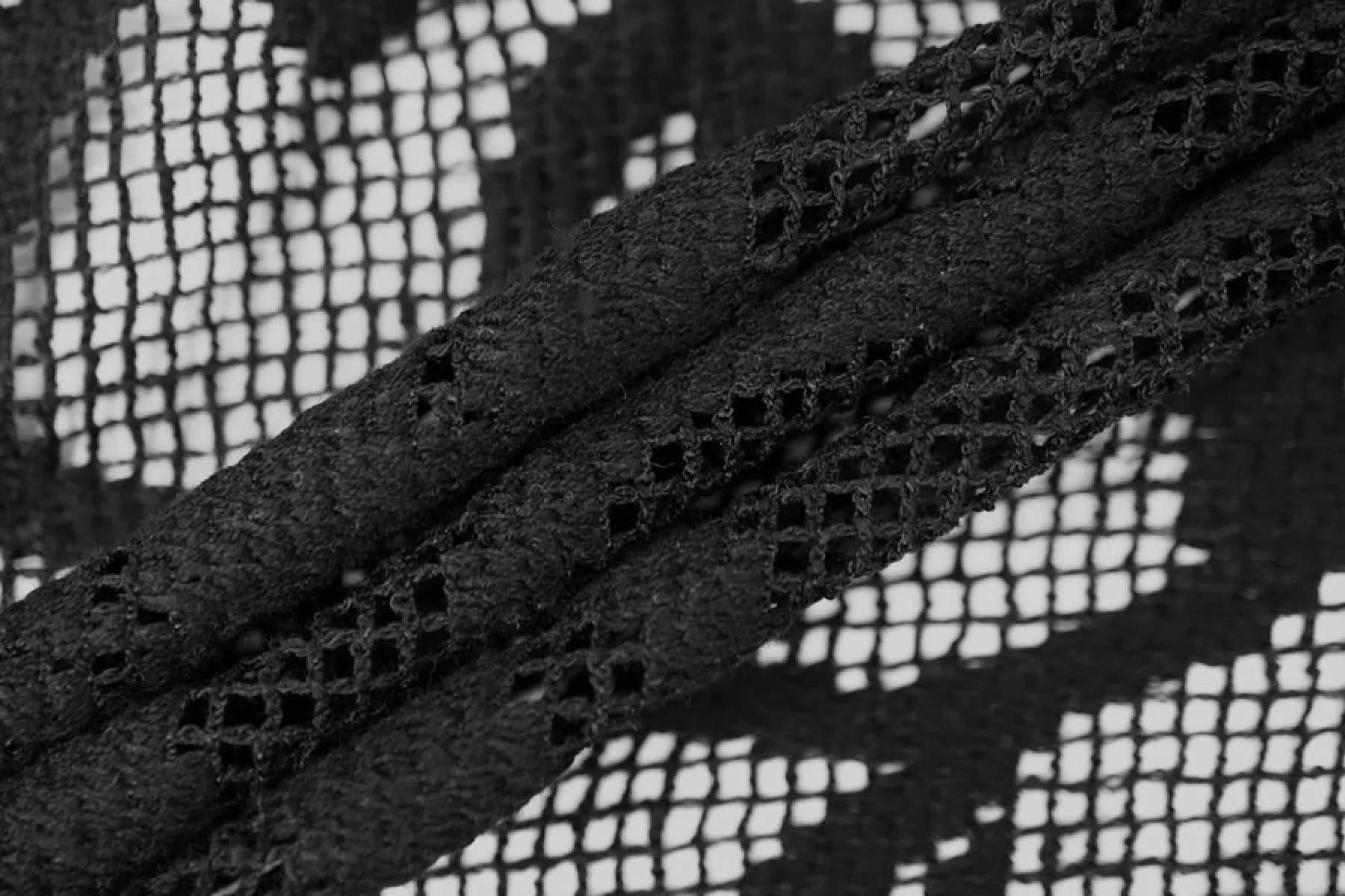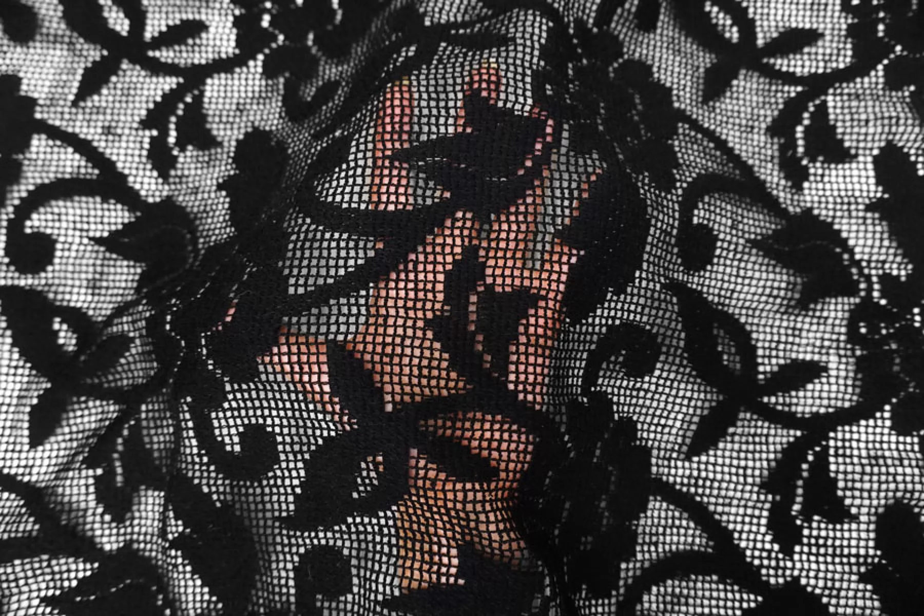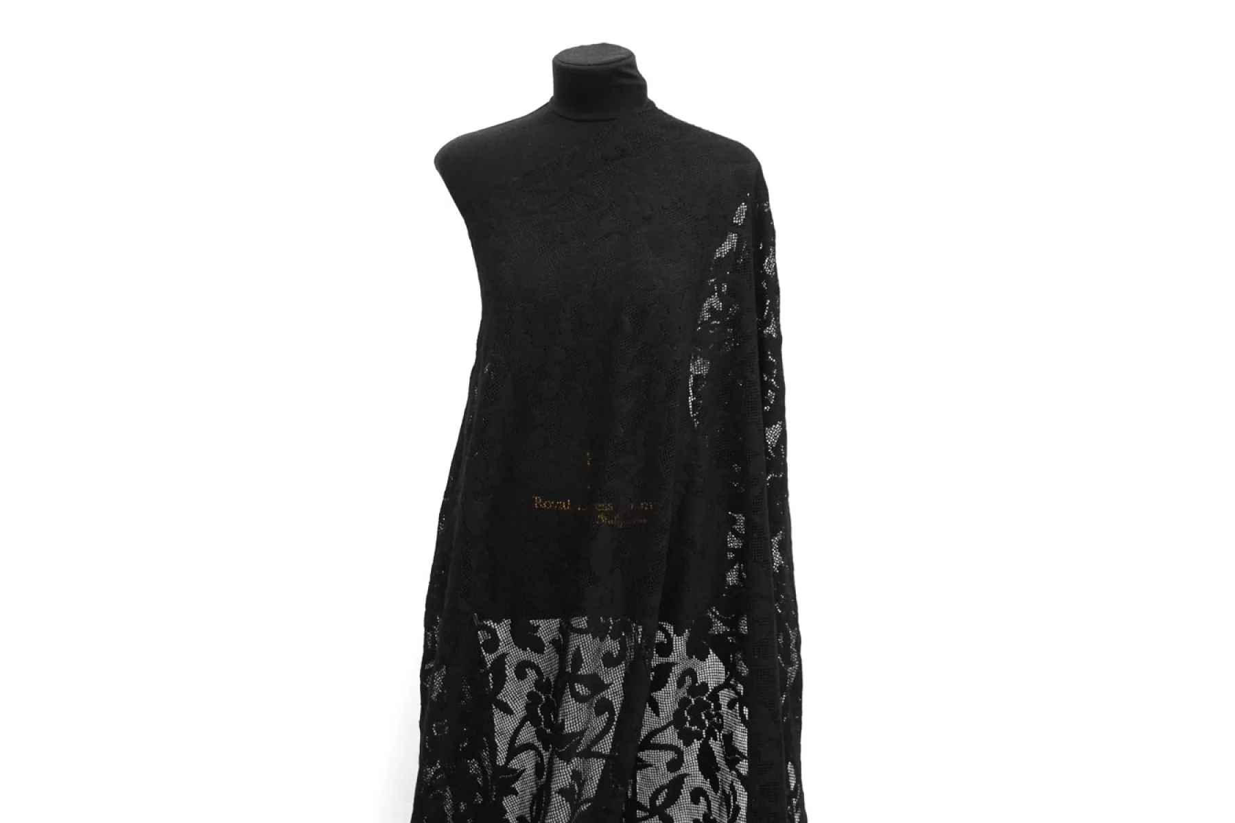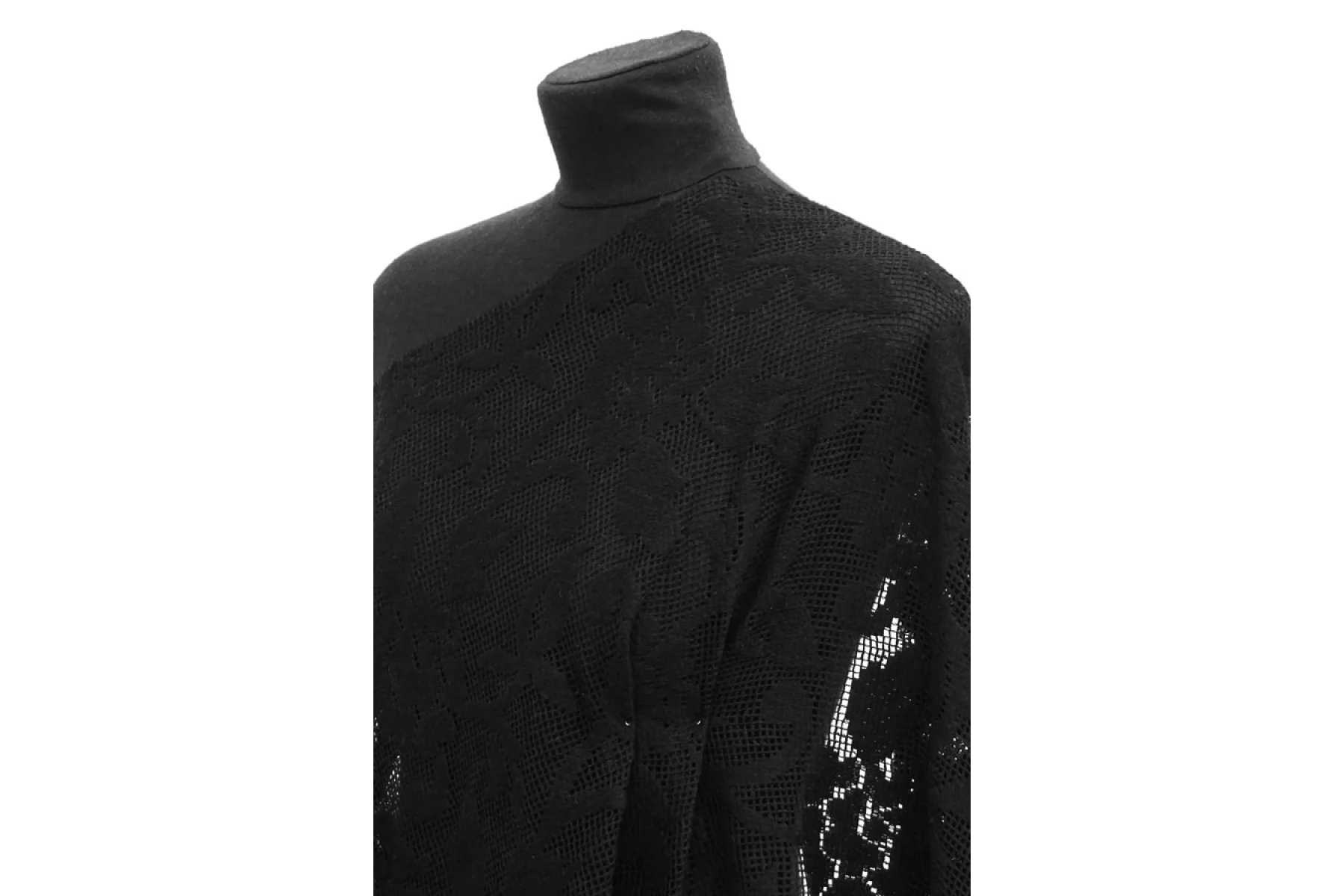 Итальянское хлопковое кружево с крупным цветочным узором черного цвета. Основа из полиэстера, сами цветы из хлопка. Приятный, мягкий и немного суховатый наощупь. Немного тянется. Форму держит. Просвечивает. Не мнется. Отлично подойдет для пошива самостоятельного изделия (на подкладе), или отделки отдельных элементов одежды.