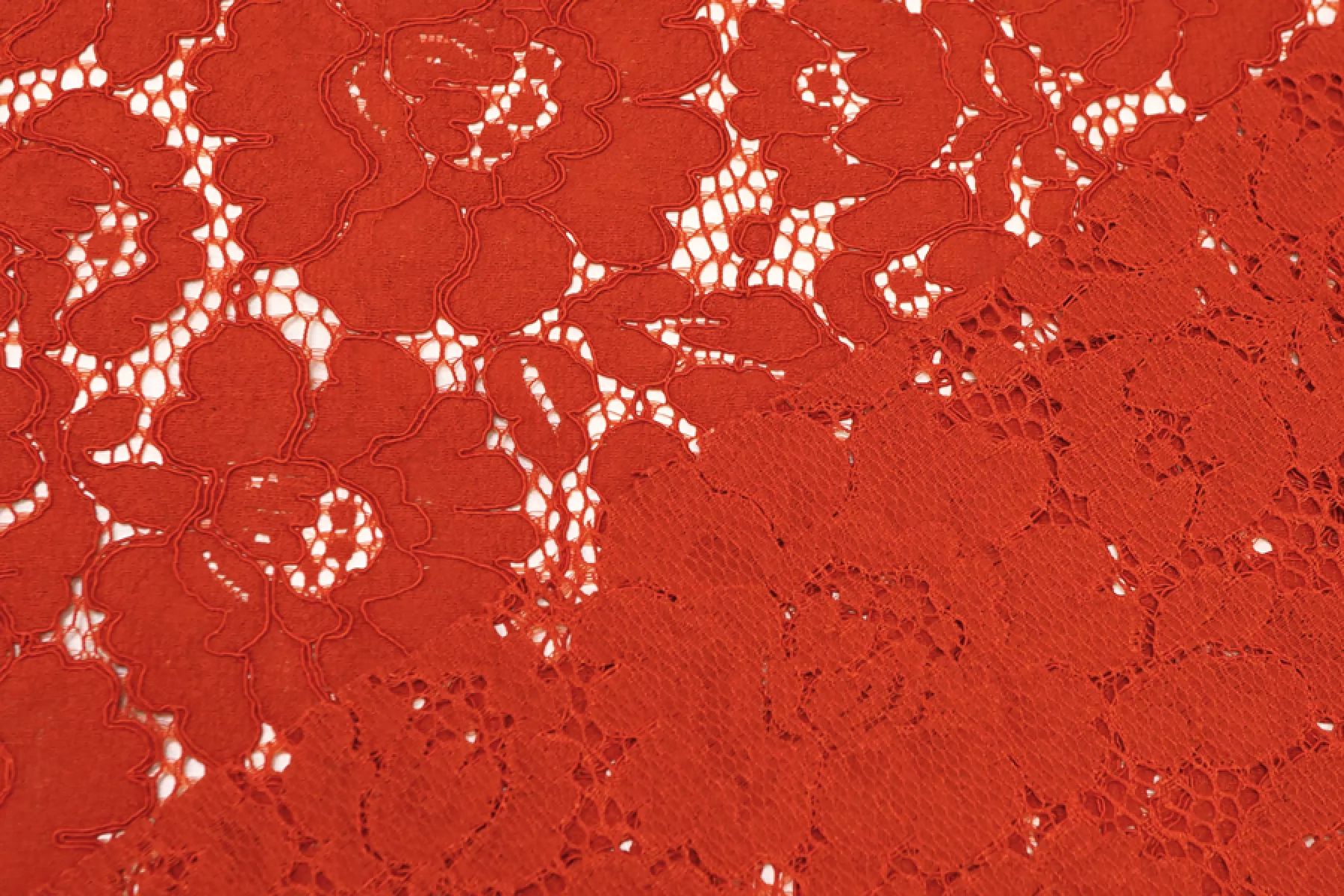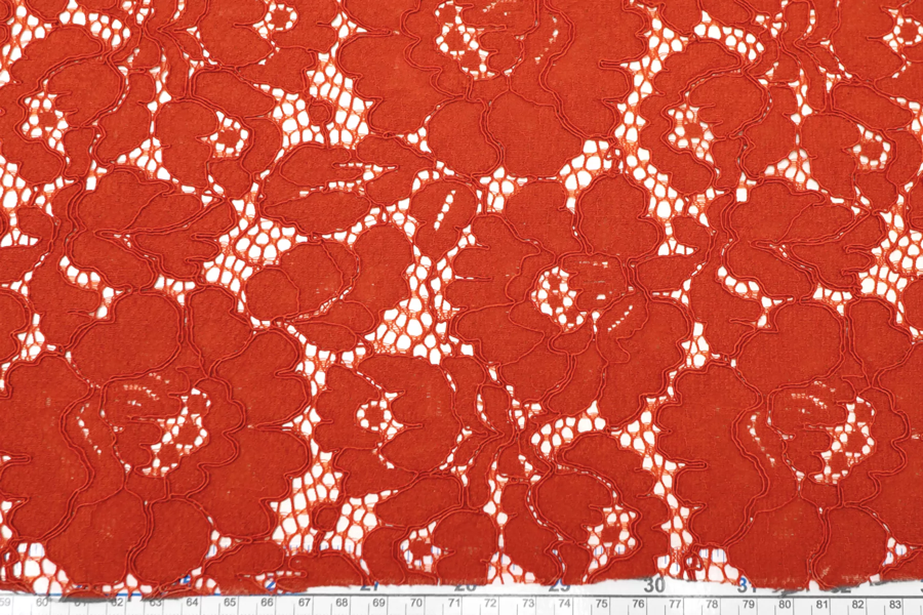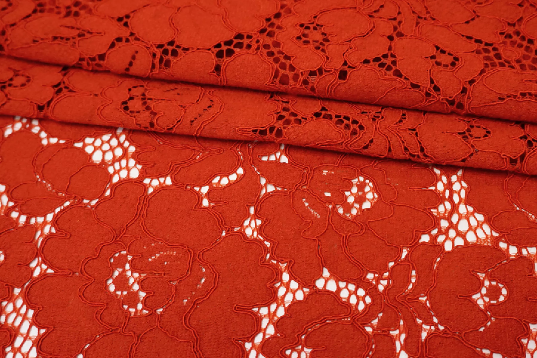 Очень красивое итальянское хлопковое кружево красного цвета (с тёплым, рыжеватым подтоном) с цветочной выработкой и кордовым шнуром. Цветы среднего размера. Тактильно материал приятный, мягкий, ощущается выработка. Прекрасен в своей пластике. Подойдет для пошива нарядного самостоятельного изделия (на подкладе ) или отделки отдельных элементов одежды.