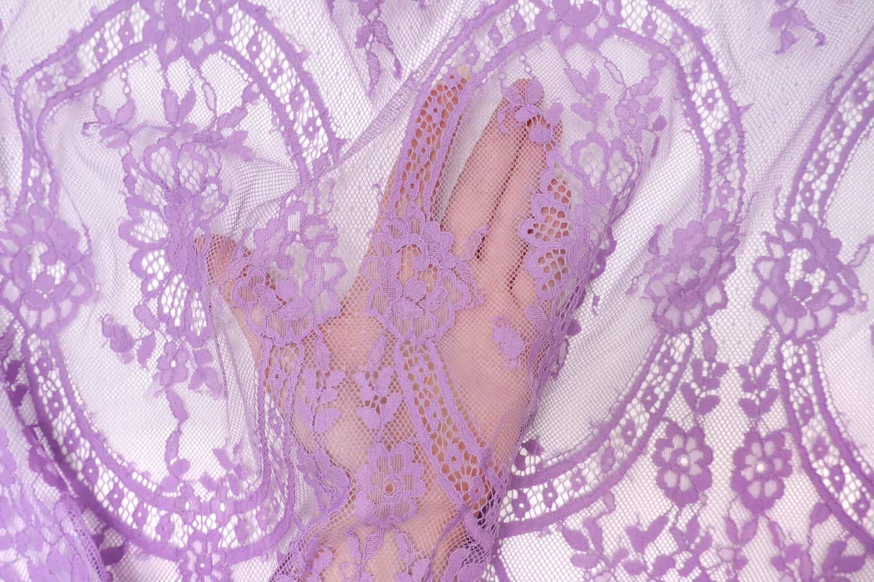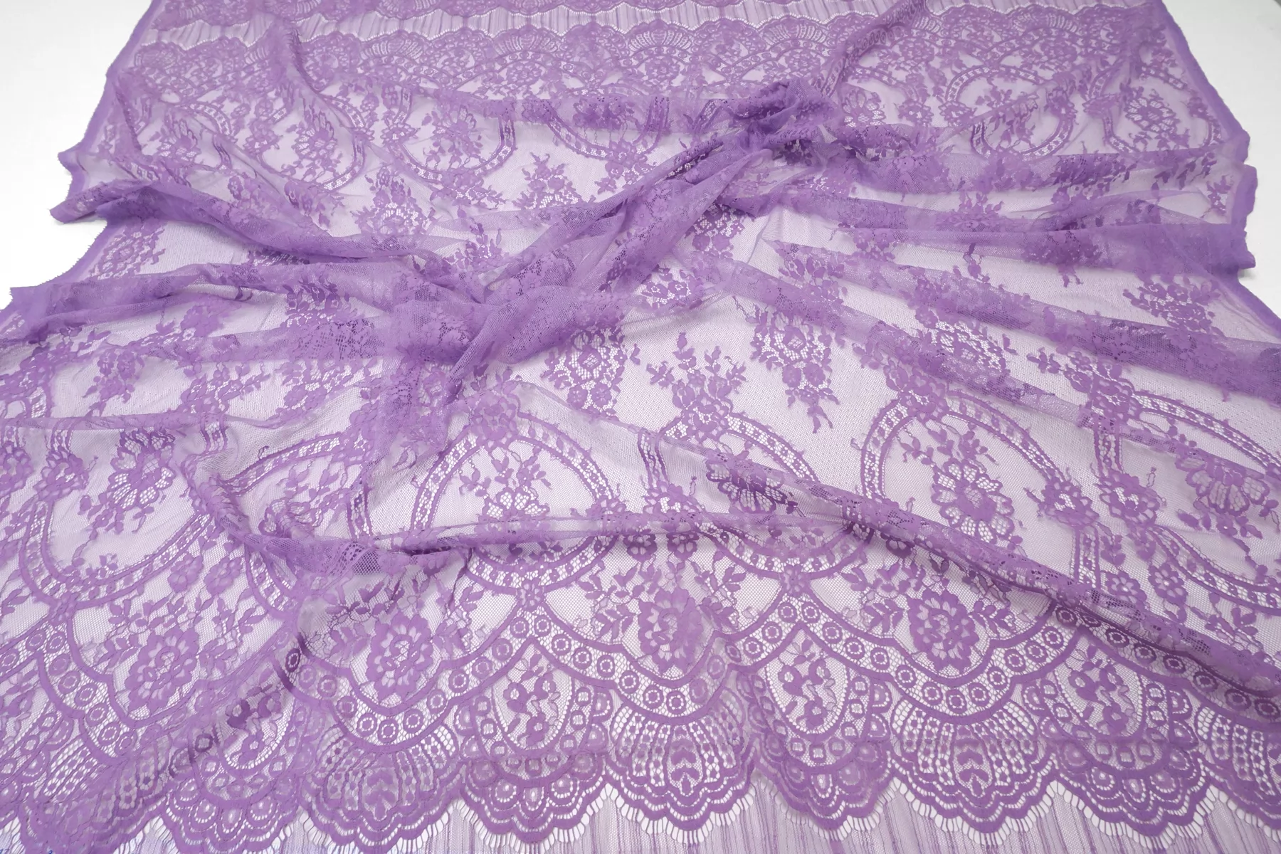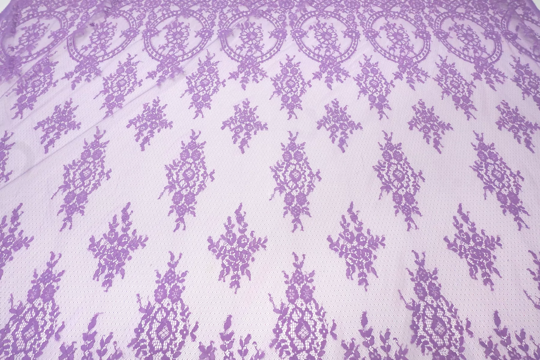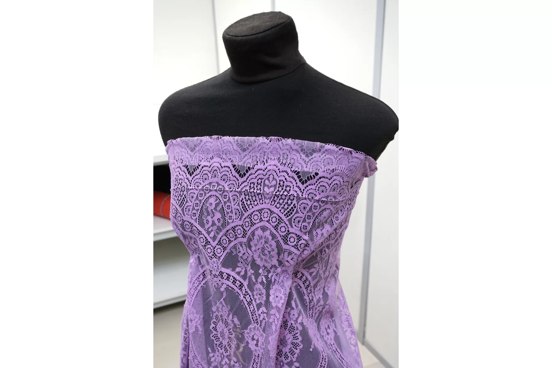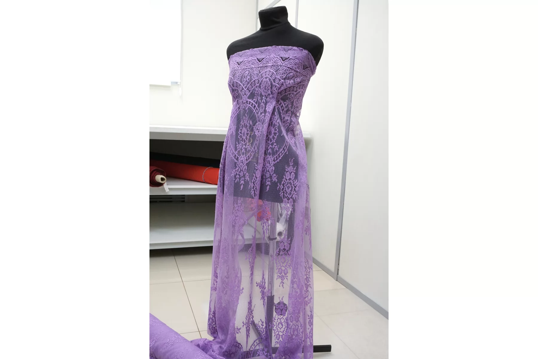 ВНИМАНИЕ! Ткань купонная, купон 149 см, ЦЕНА КУПОНА 4 470 руб. Очень красивое итальянское хлопковое кружево в красивом лилово-сиреневом оттенке, с орнаментальным узором. Тактильно чуть суховато. Пластичное, прозрачное. Подойдет для пошива нарядного самостоятельного изделия (на подкладе ) или отделки отдельных элементов одежды.