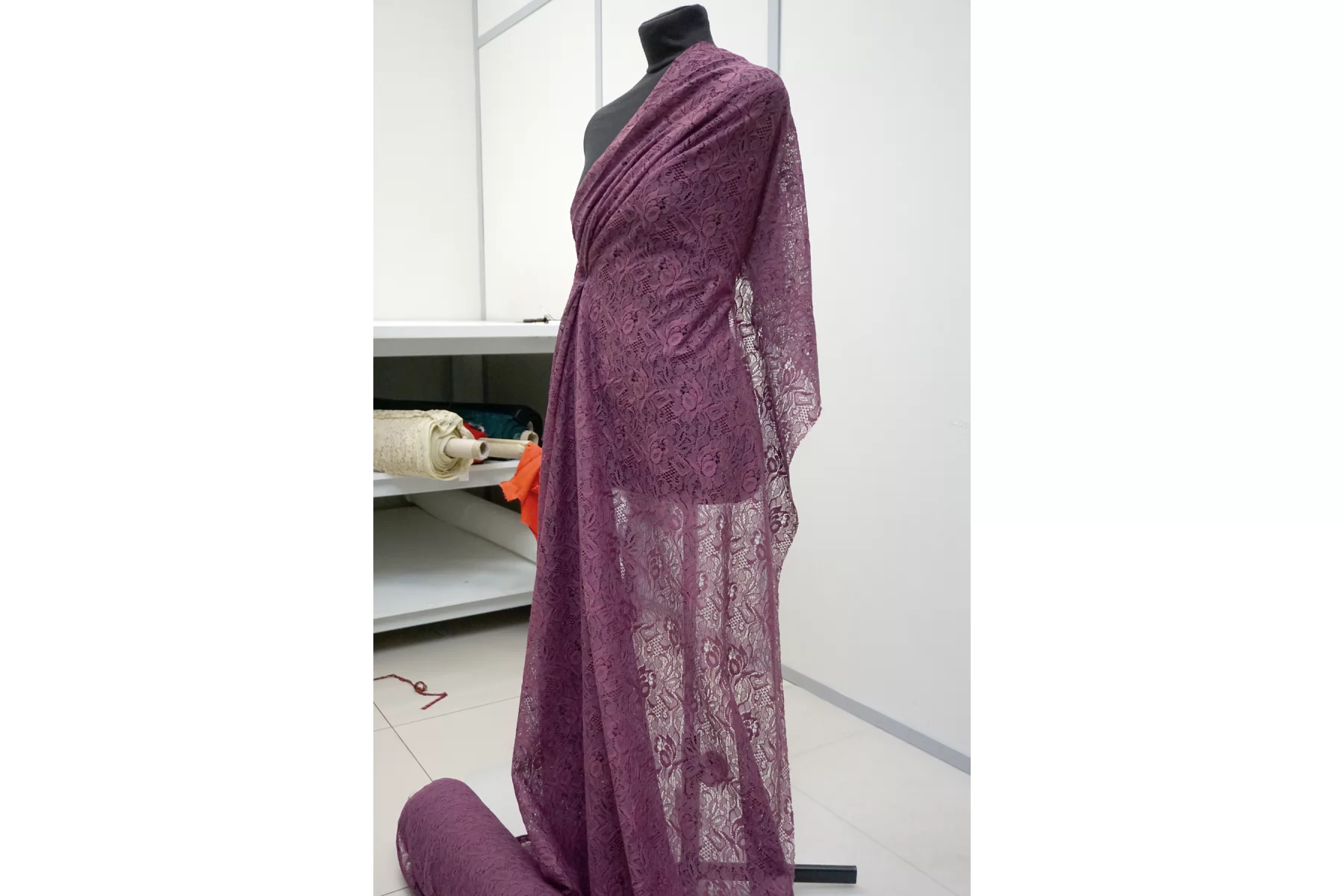 Очень красивое итальянское хлопковое кружево в неярком, чуть высветленном сливовом оттенке. Тактильно чуть суховато. Пластичное, прозрачное. Подойдет для пошива нарядного самостоятельного изделия (на подкладе ) или отделки отдельных элементов одежды.