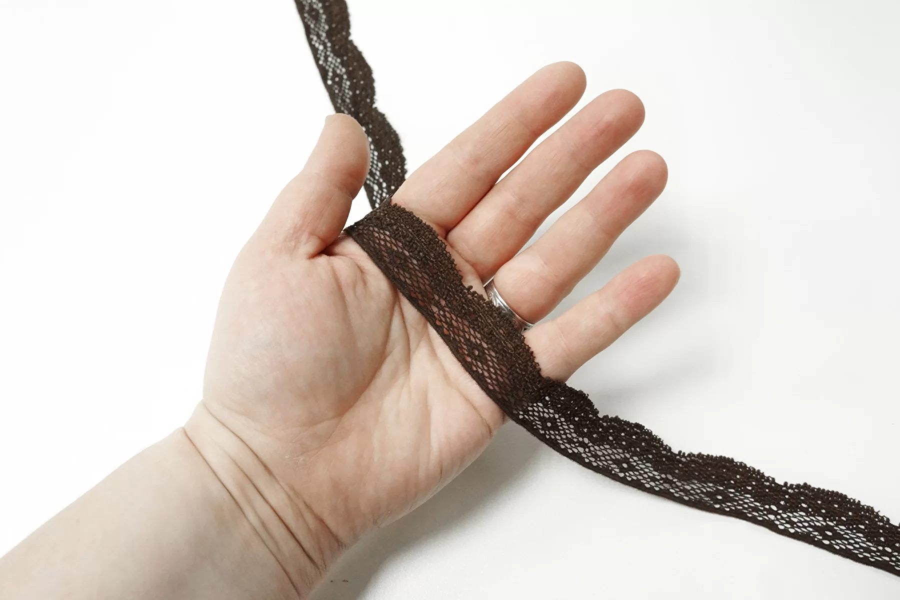 Итальянское кружево коричневого цвета. Мягкое, пластичное. Отлично подойдет для пошива нижнего белья, отделки одежды и аксессуаров.