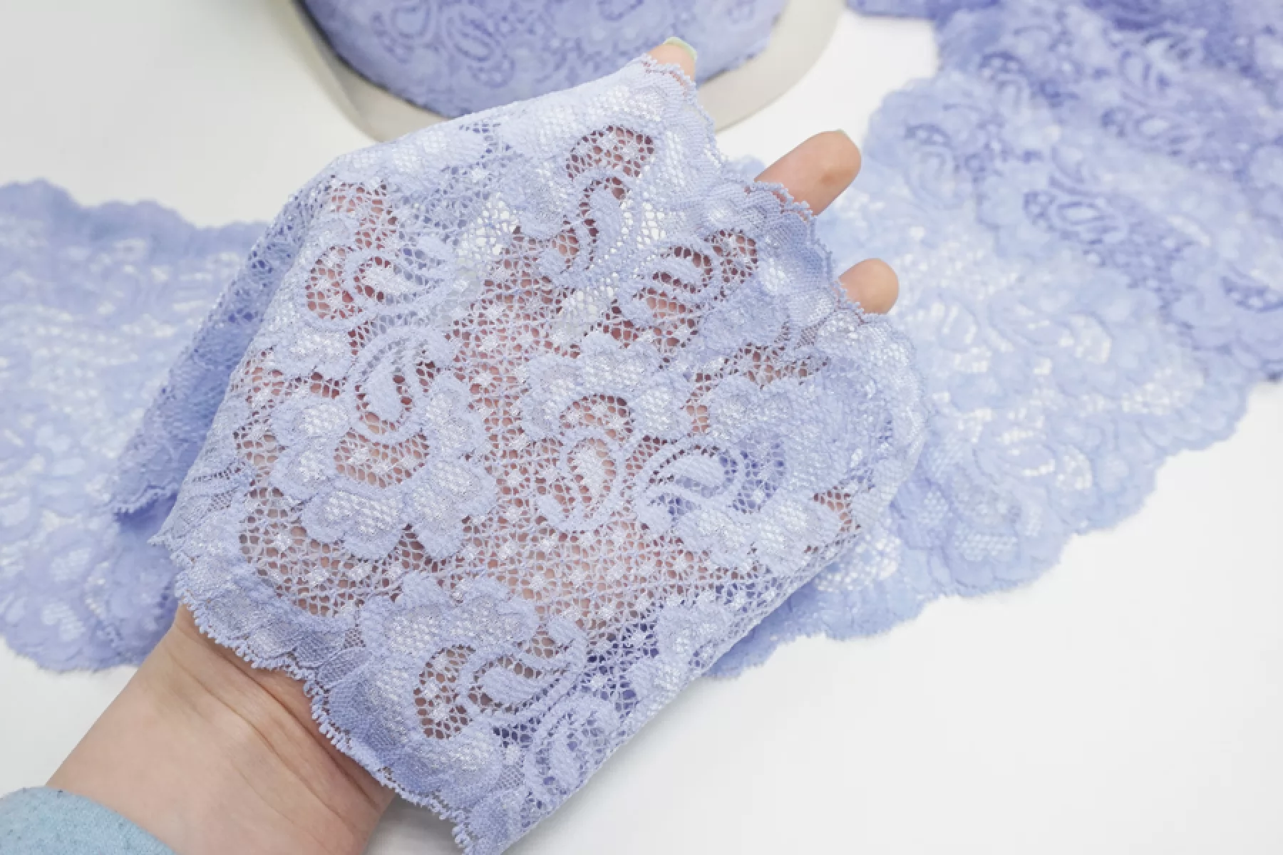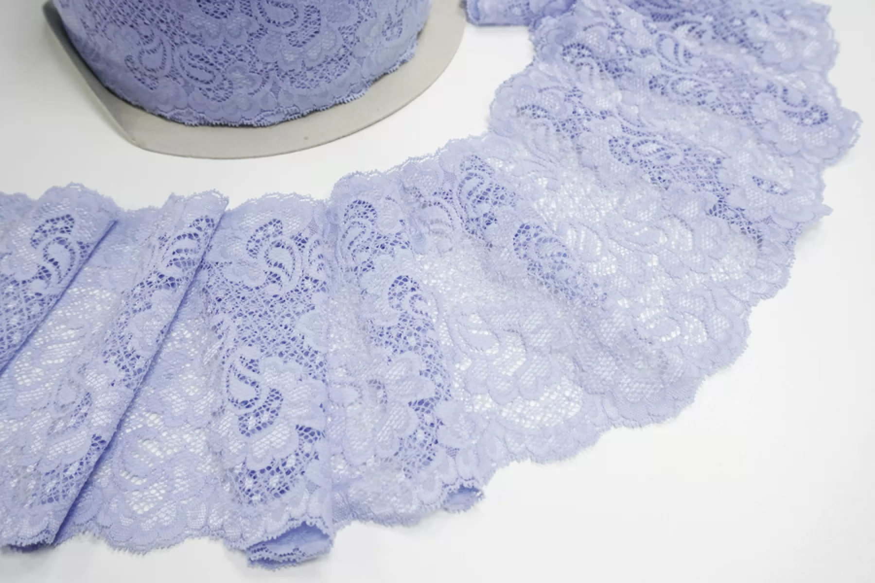 Итальянское кружево цвета лаванды. Мягкое, пластичное. Отлично подойдет для пошива нижнего белья, отделки одежды и аксессуаров.