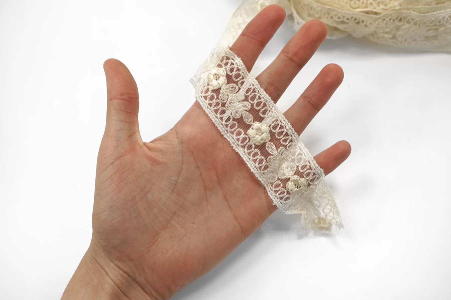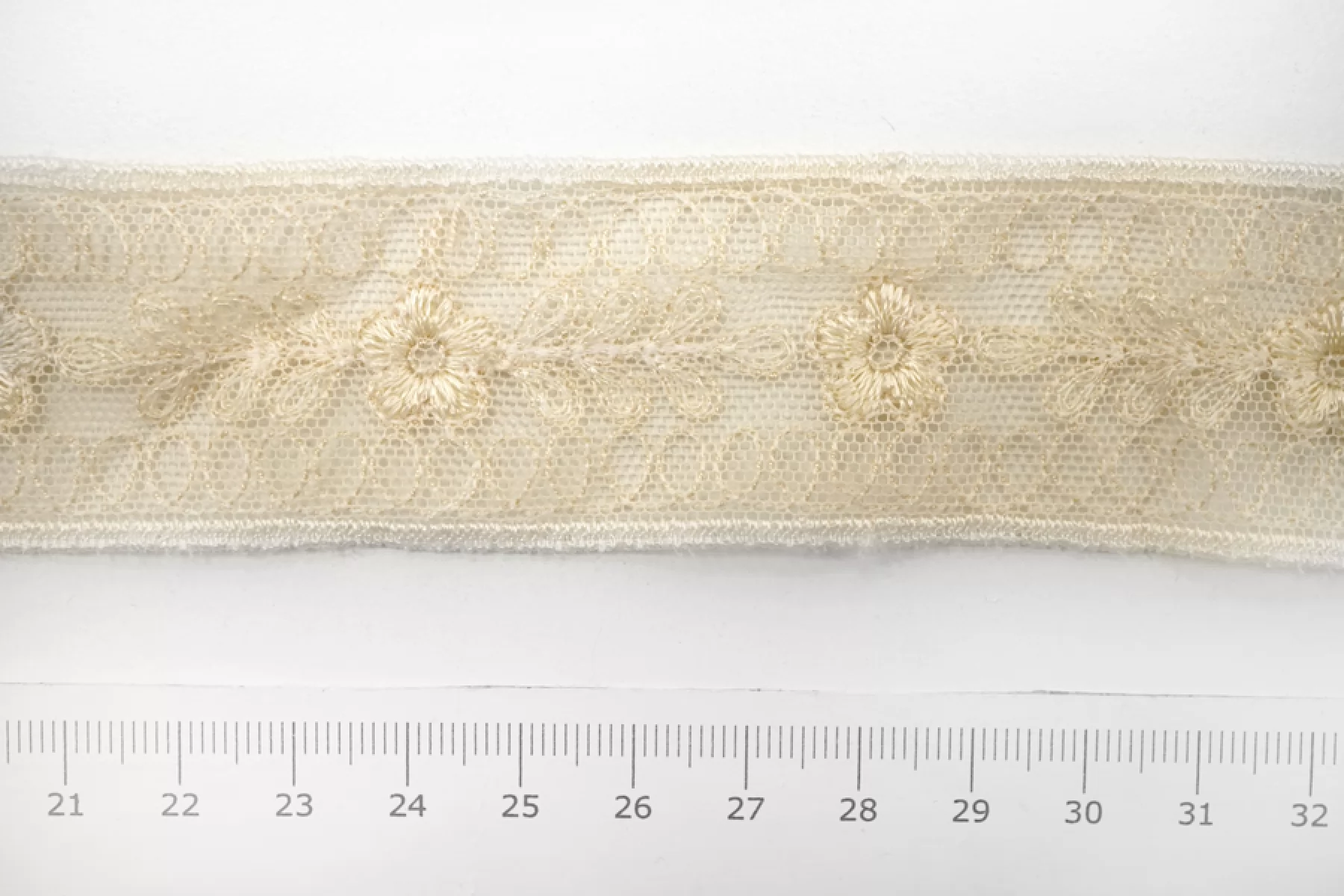 Итальянское кружево молочного цвета. Мягкое, пластичное. Отлично подойдет для пошива нижнего белья, отделки одежды и аксессуаров.