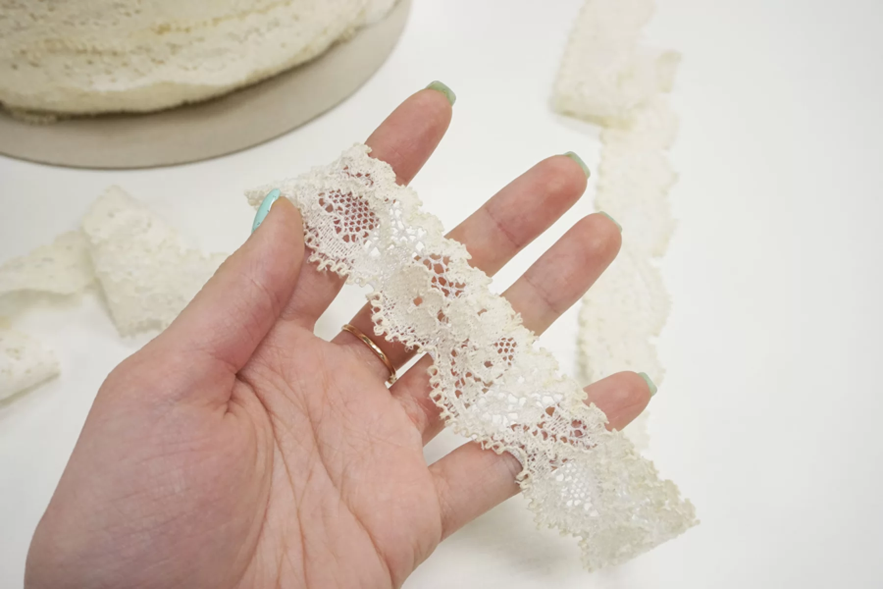Итальянское кружево молочного цвета. Мягкое, пластичное. Отлично подойдет для пошива нижнего белья, отделки одежды и аксессуаров.
