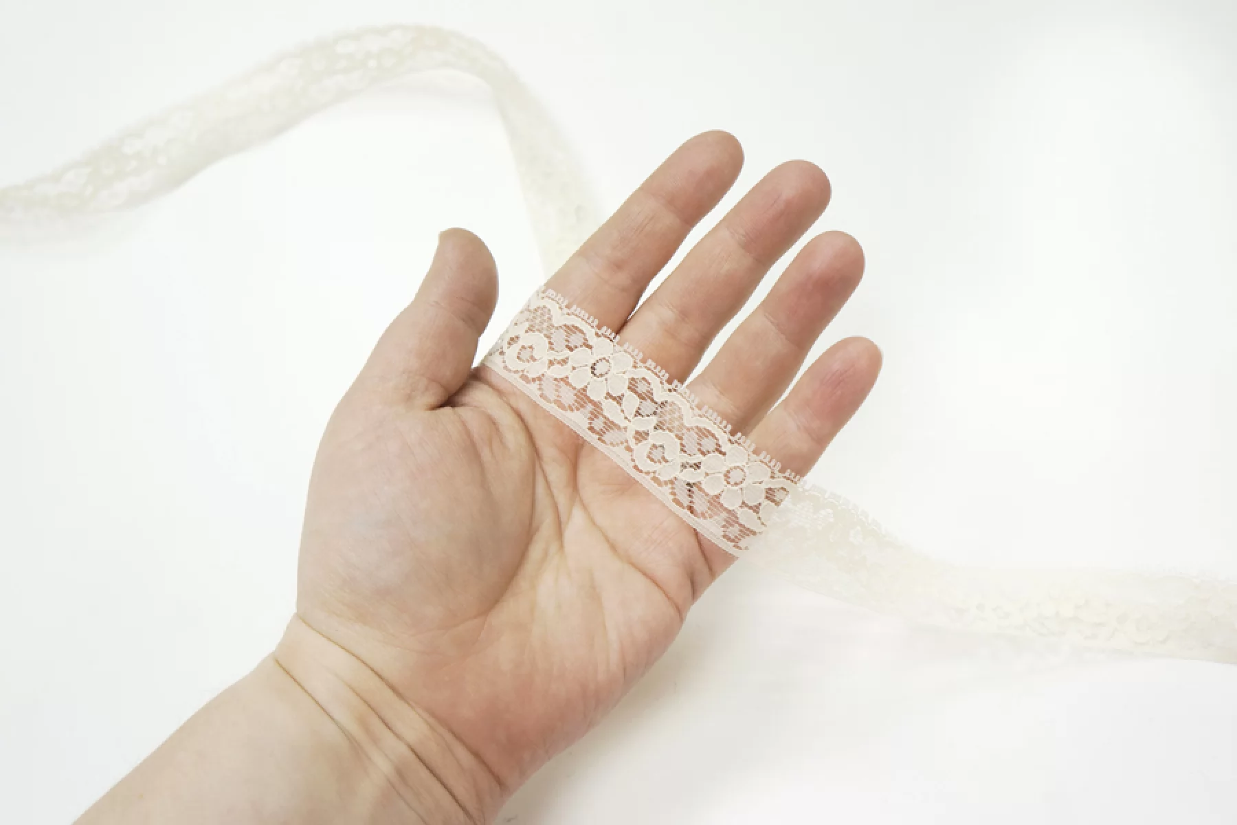 Итальянское кружево молочного цвета. Мягкое, пластичное. Отлично подойдет для пошива нижнего белья, отделки одежды и аксессуаров.