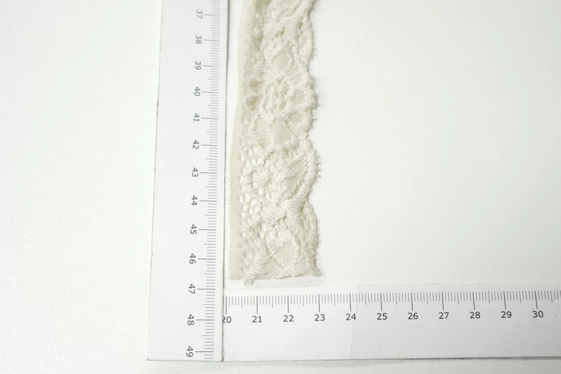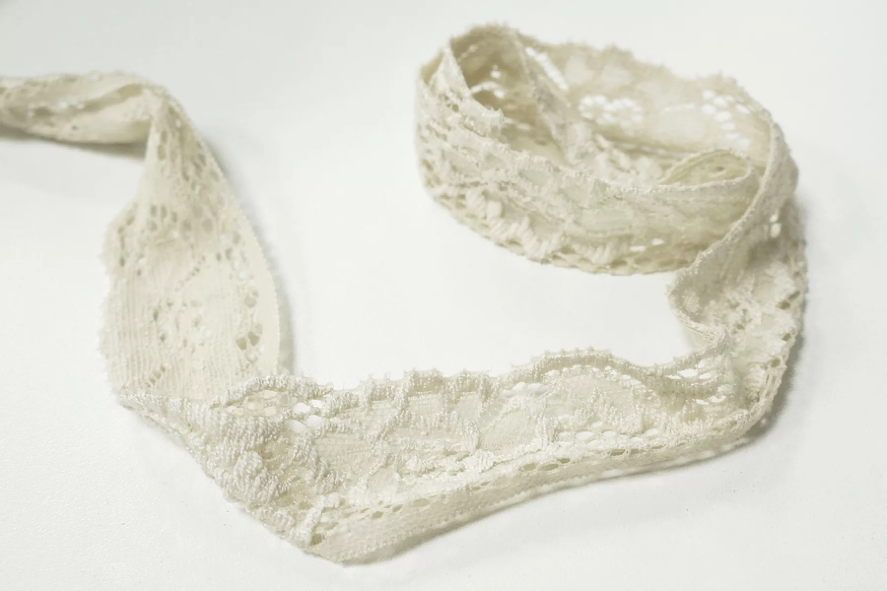 Итальянское кружево молочного цвета. Мягкое, пластичное. Отлично подойдет для пошива нижнего белья, отделки одежды и аксессуаров.