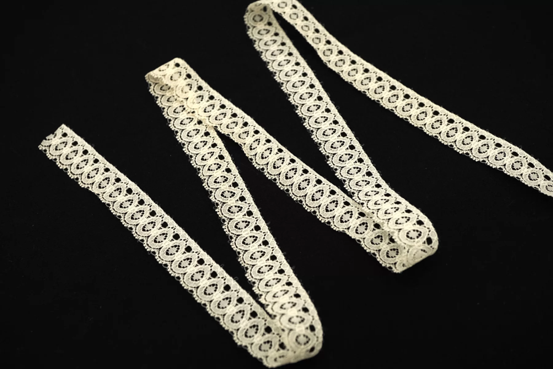 Итальянское кружево пастельно-желтого цвета. Мягкое, пластичное. Отлично подойдет для пошива нижнего белья, отделки одежды и аксессуаров.