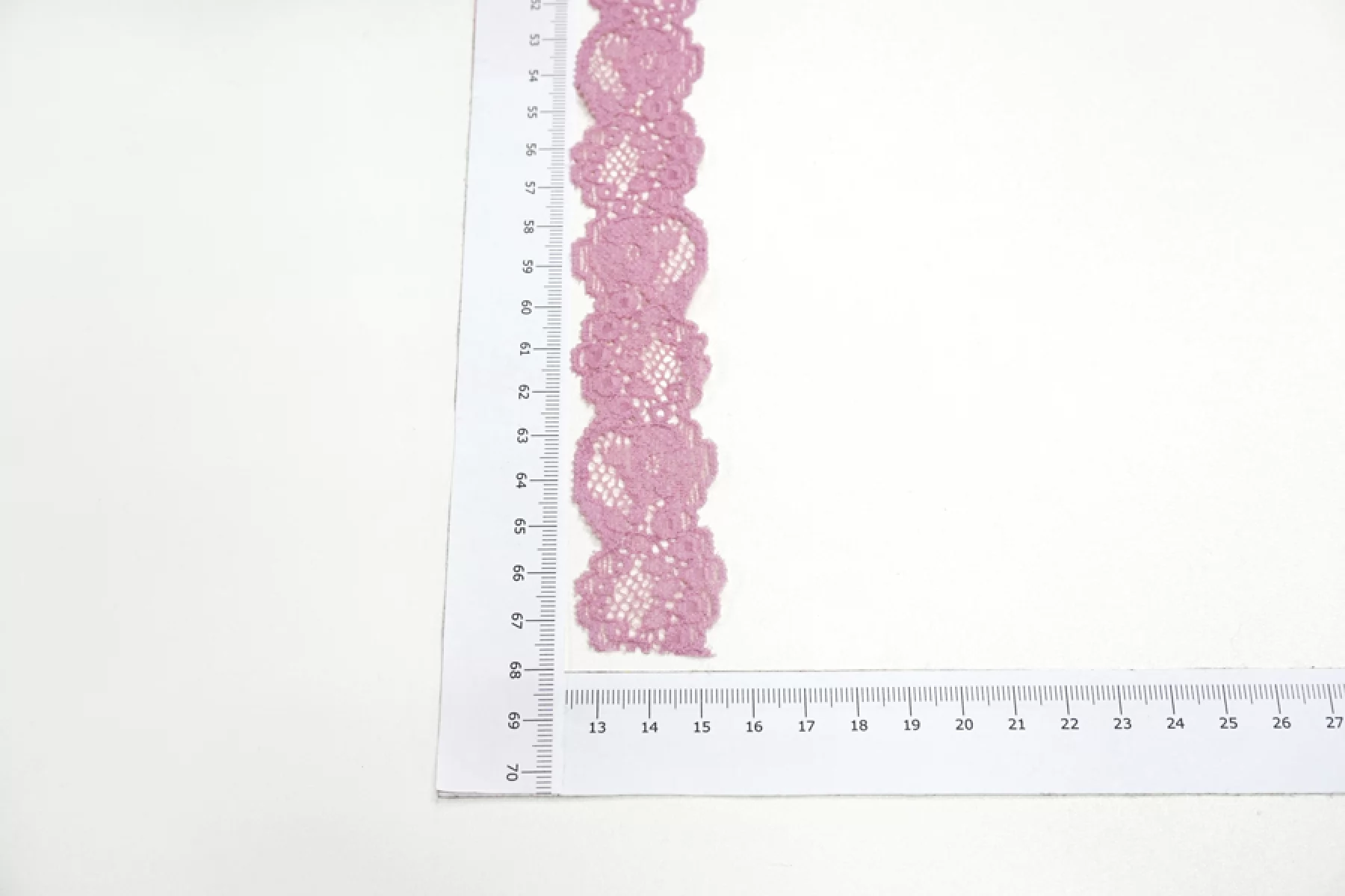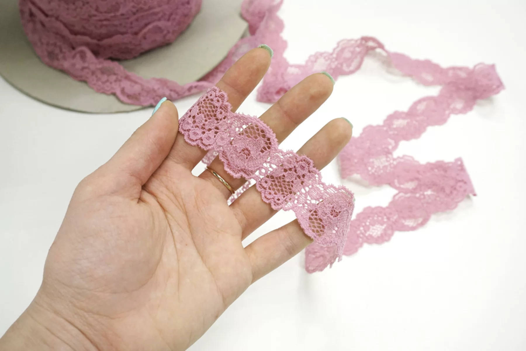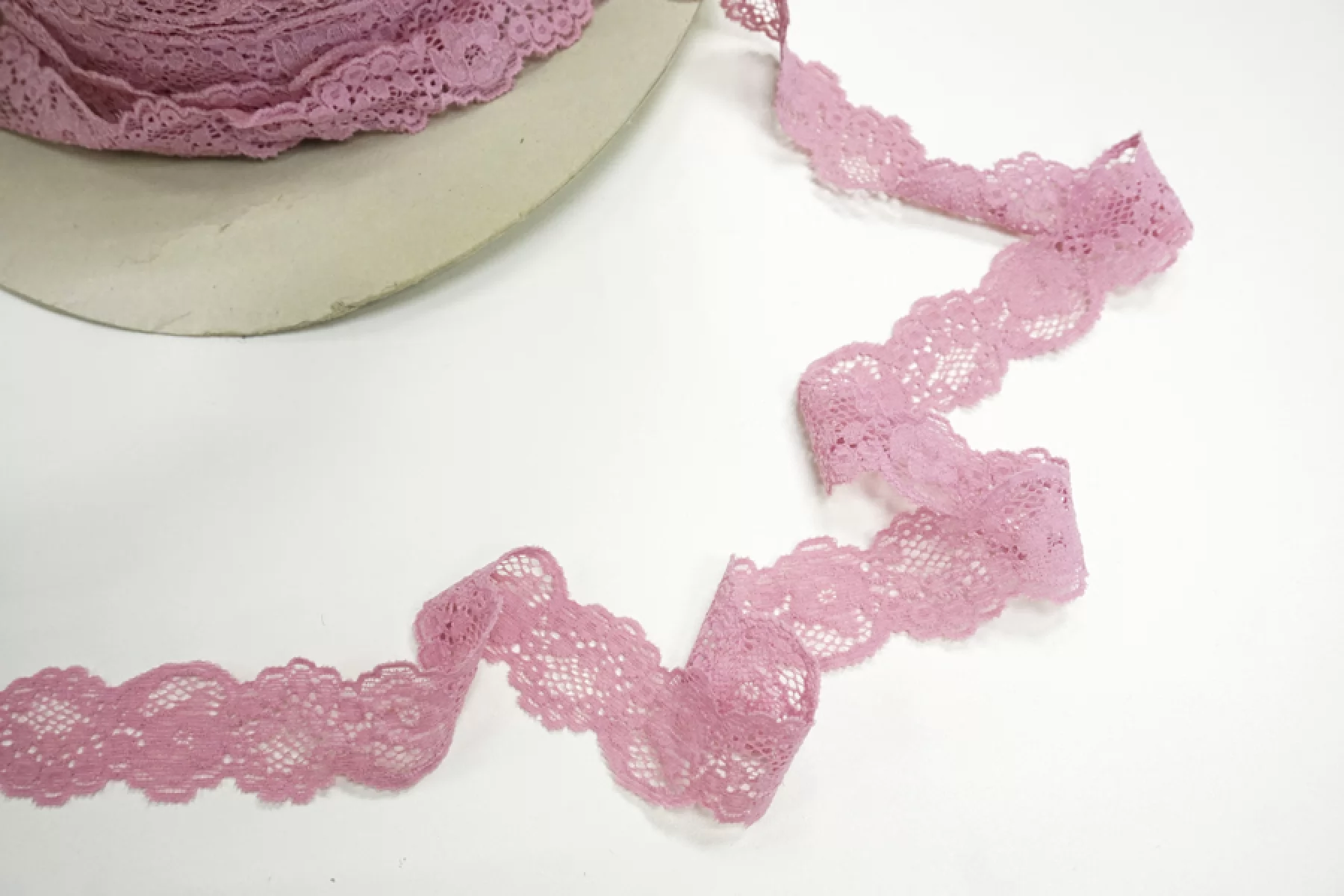 Итальянское кружево пыльно-розового цвета. Мягкое, пластичное. Отлично подойдет для пошива нижнего белья, отделки одежды и аксессуаров.