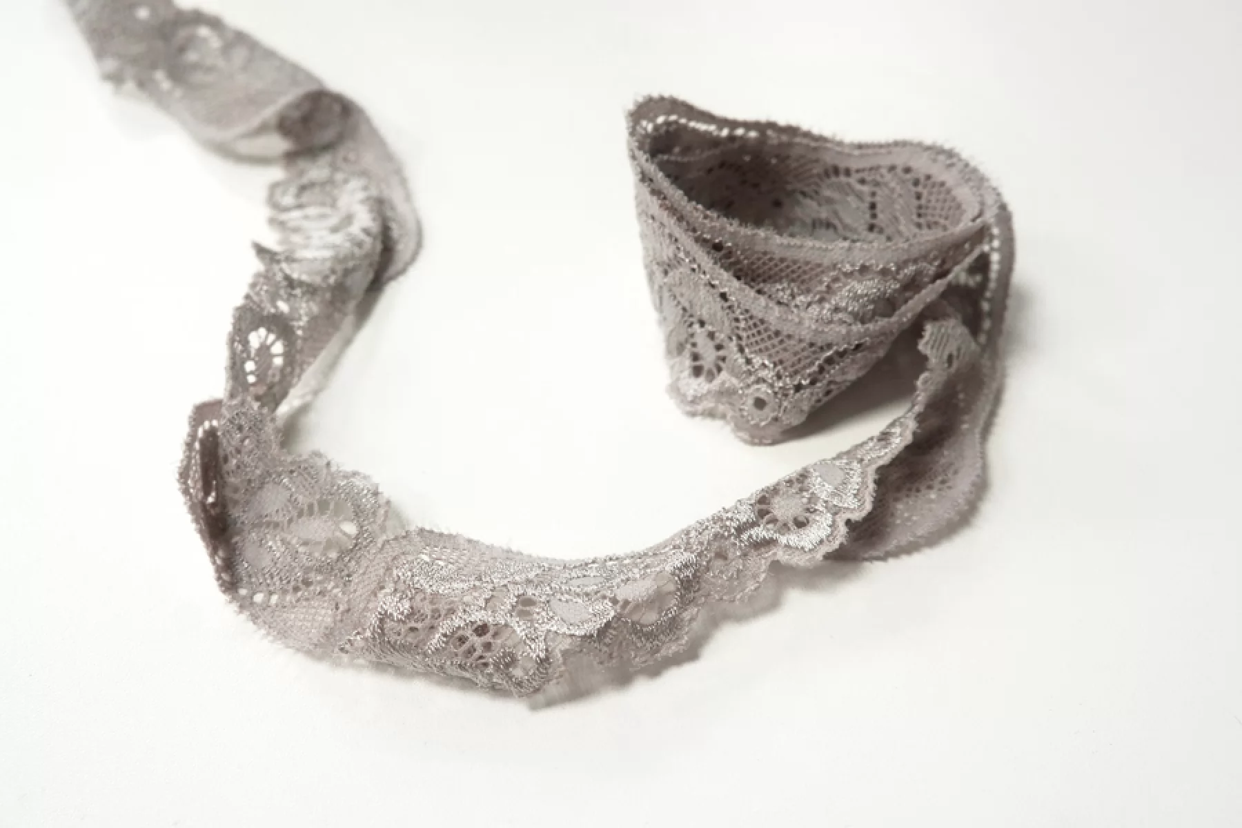 Итальянское кружево серого цвета. Мягкое, пластичное. Отлично подойдет для пошива нижнего белья, отделки одежды и аксессуаров.