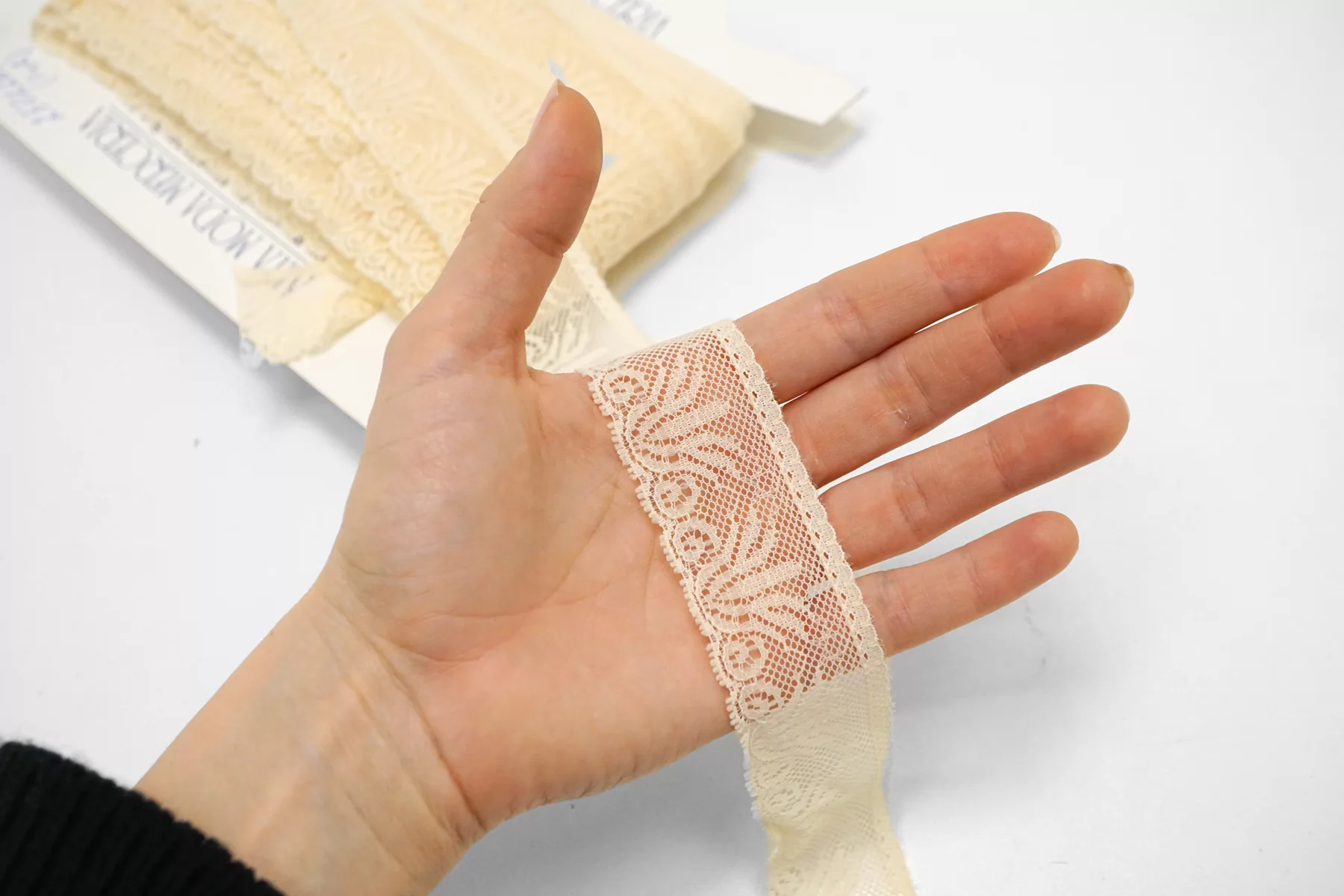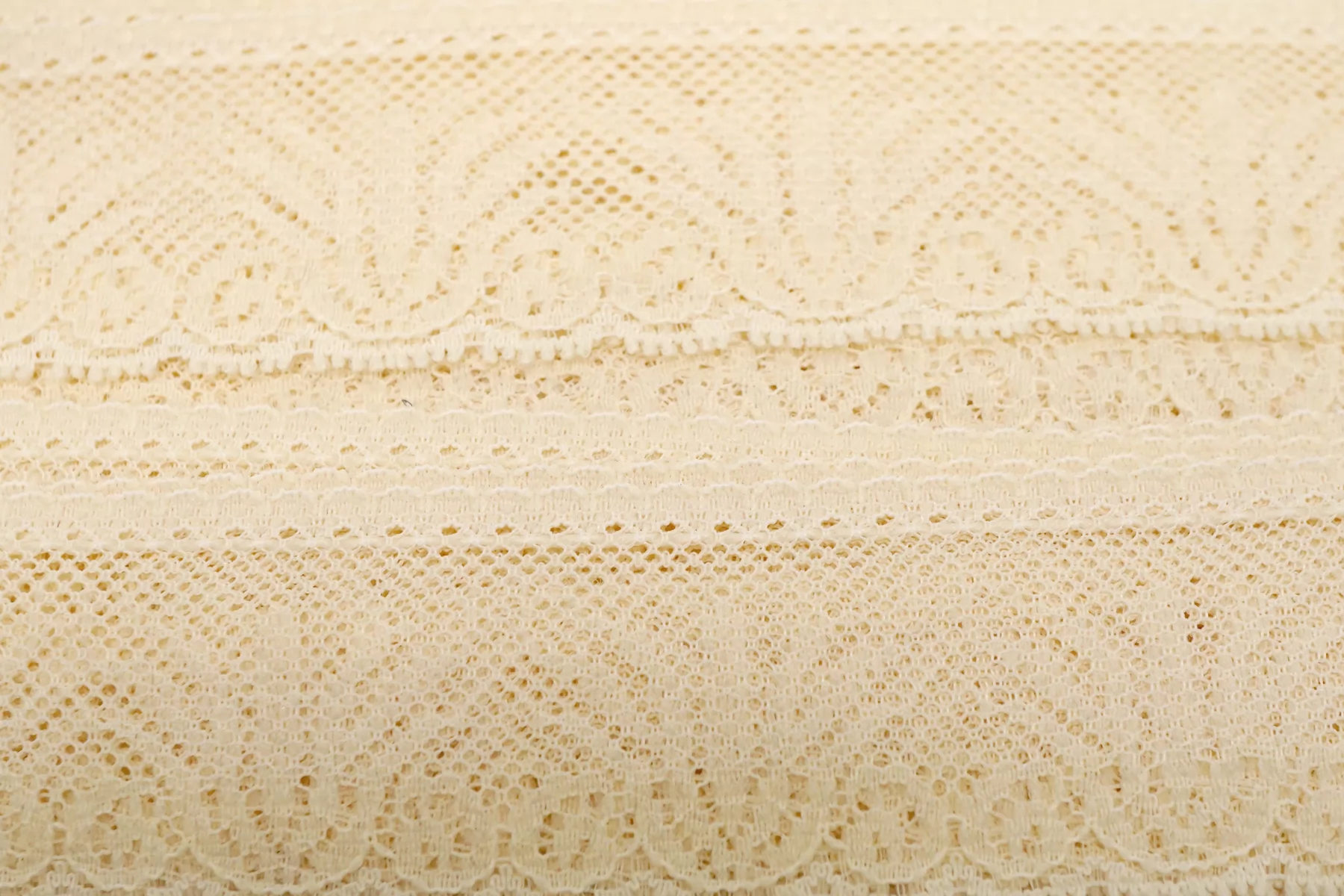 Итальянское кружево сливочного (светло-бежевого) цвета. Мягкое, пластичное. Не тянется. Отлично подойдет для пошива нижнего белья, отделки одежды и аксессуаров.