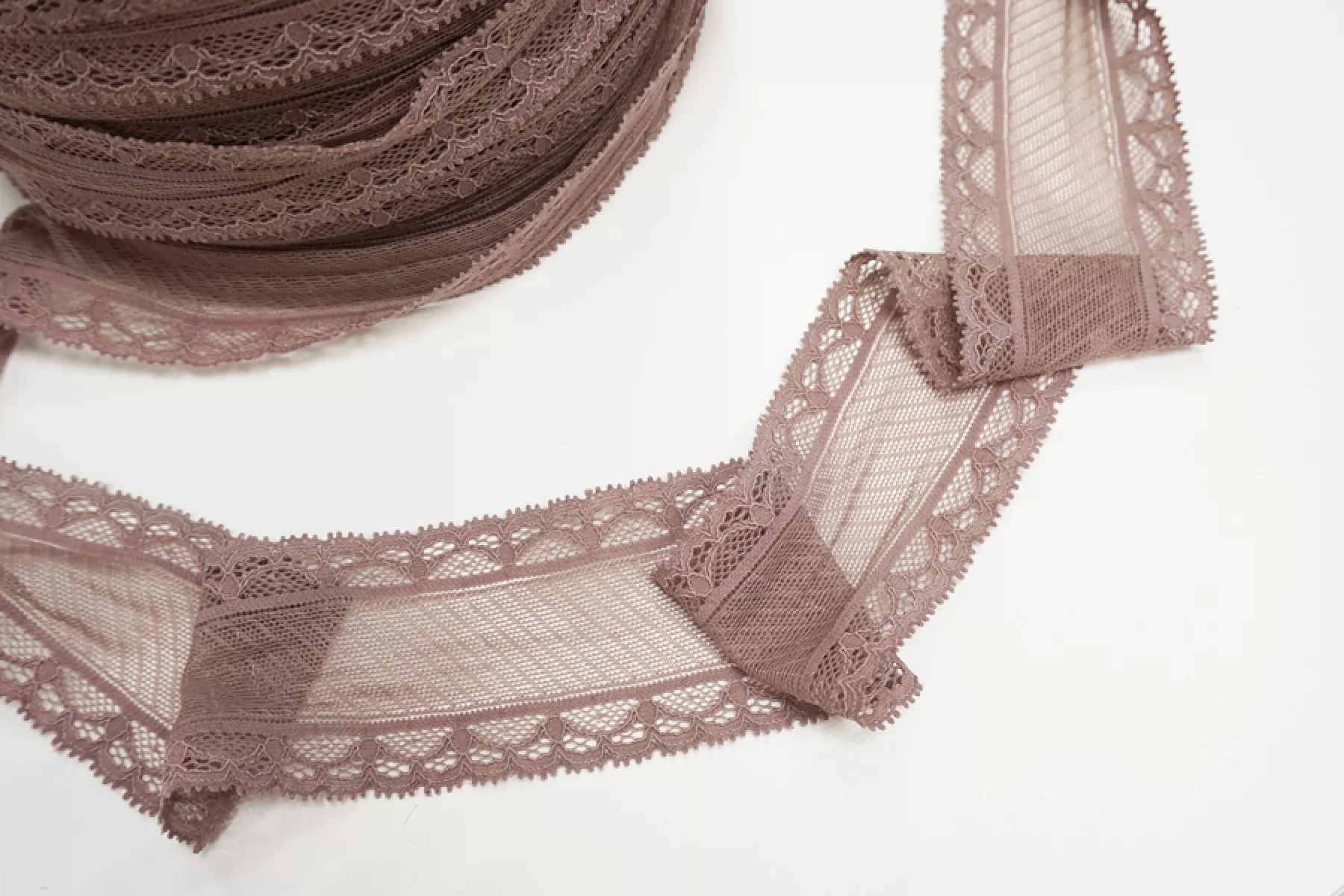Итальянское кружево светлого оттенка какао. Мягкое, пластичное. Отлично подойдет для пошива нижнего белья, отделки одежды и аксессуаров.