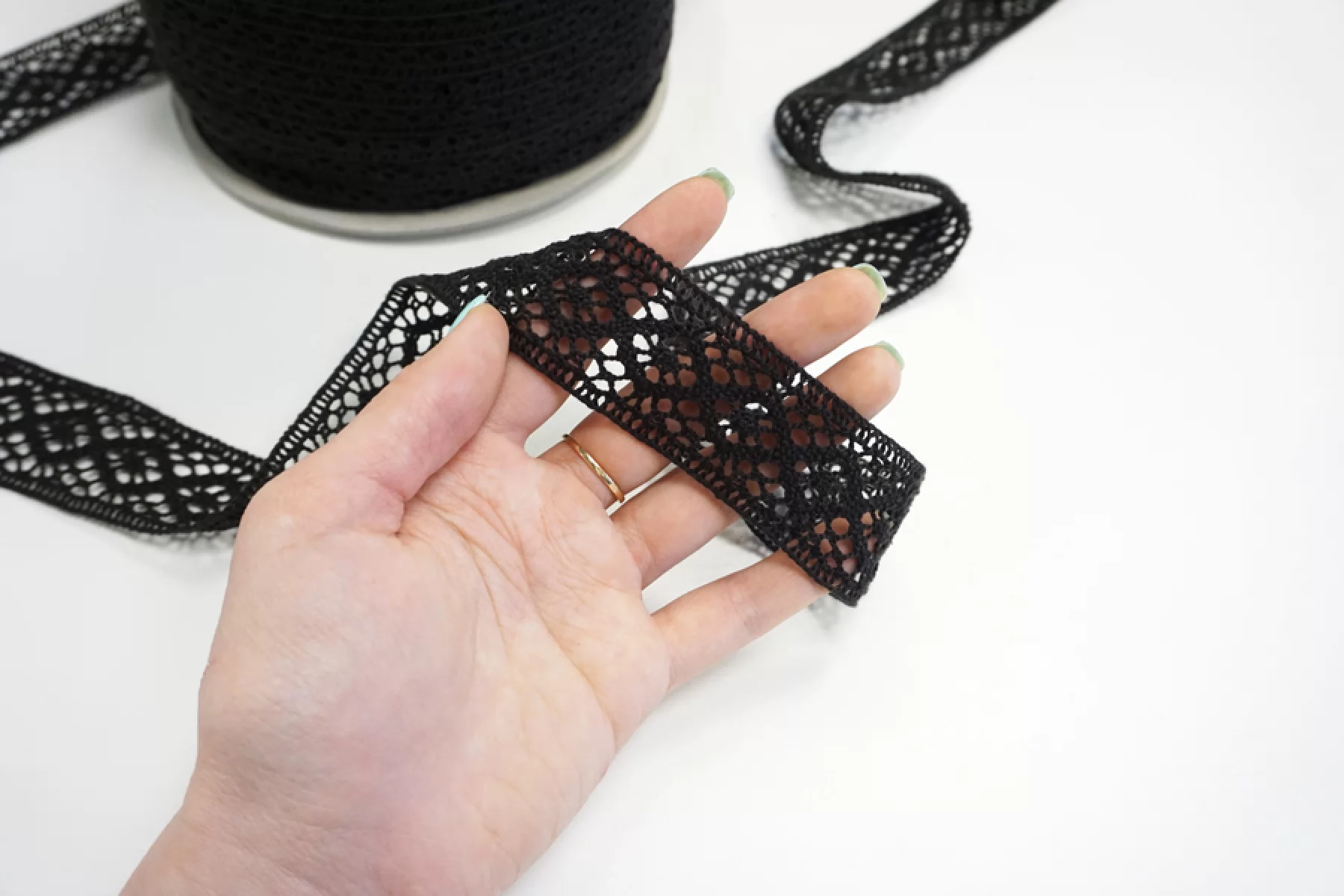 Итальянское кружево темно-коричневого цвета. Мягкое, пластичное, при этом плотное. Отлично подойдет для пошива нижнего белья, отделки одежды и аксессуаров.