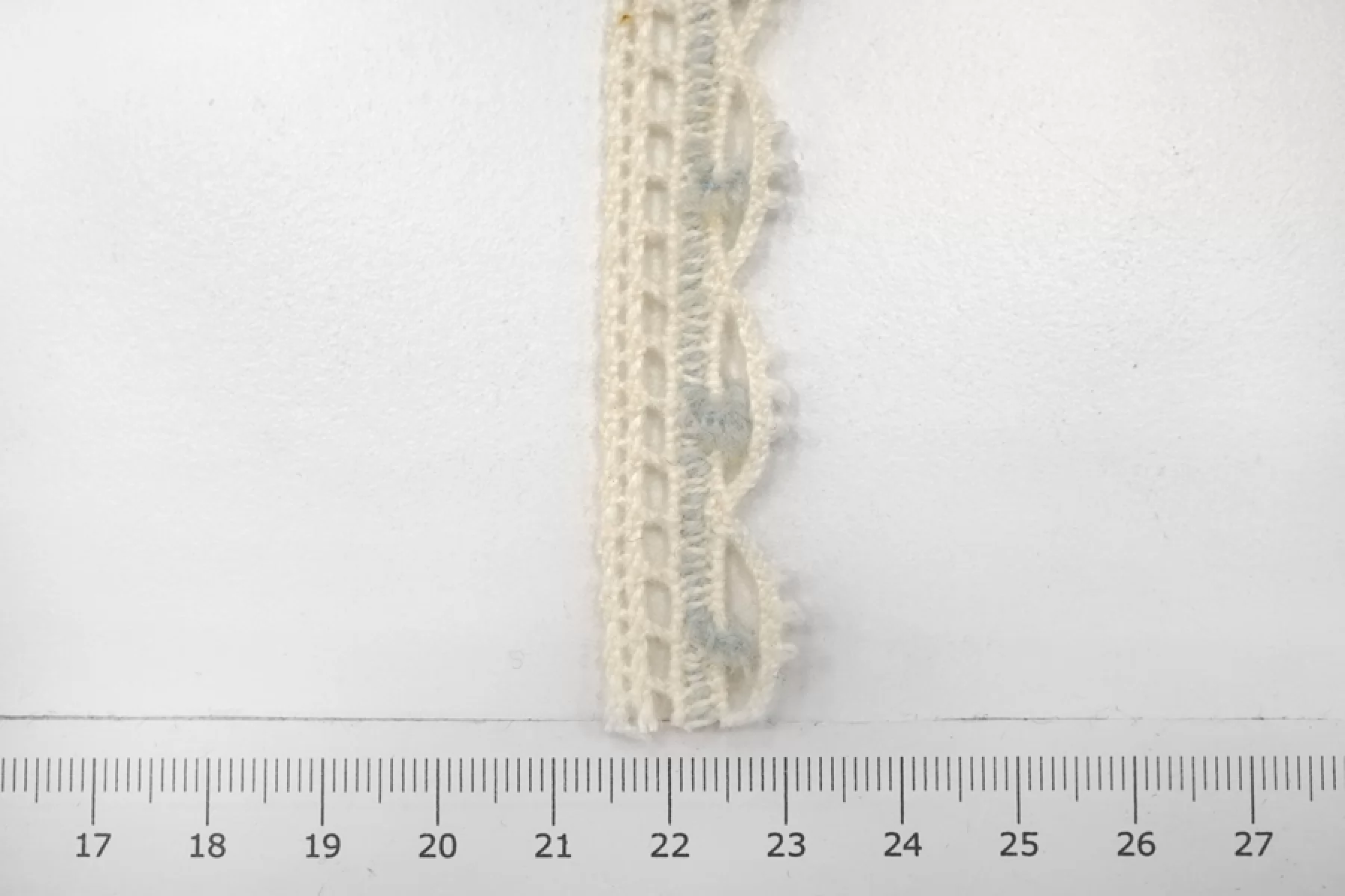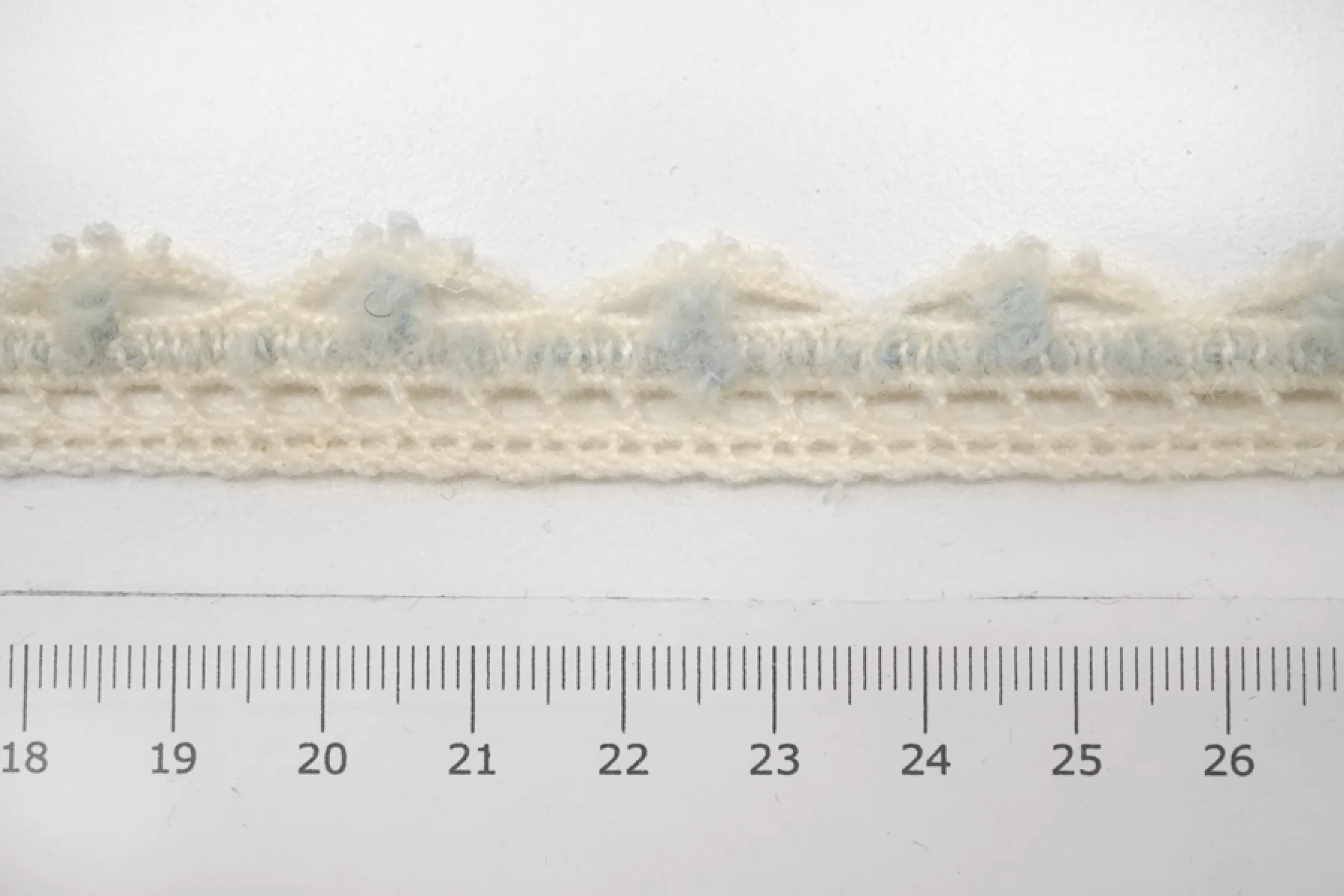 Итальянское кружево-тесьма молочного цвета с голубой вставкой. Мягкое, пластичное. Отлично подойдет для декорирования нижнего белья, одежды и аксессуаров.