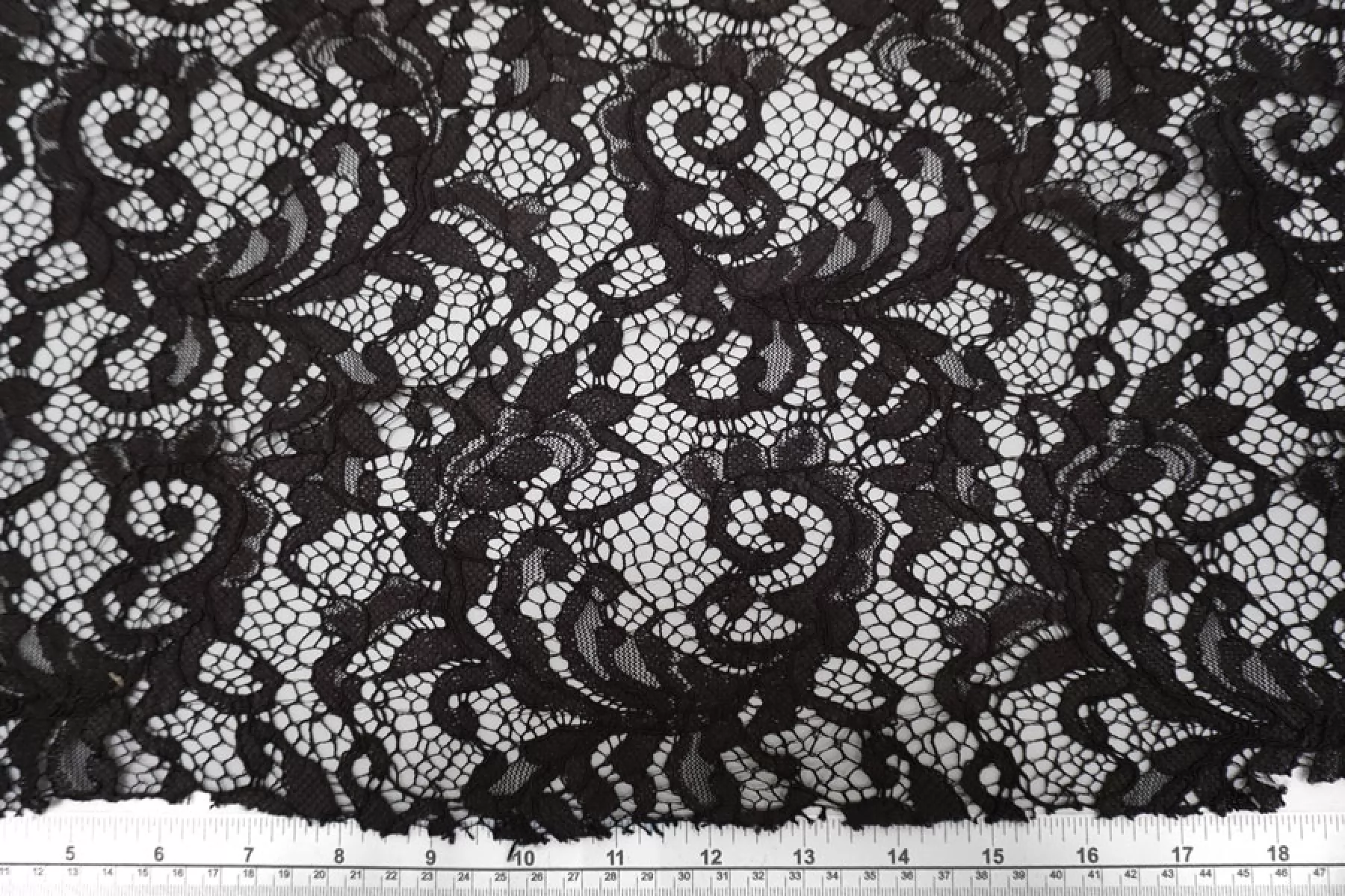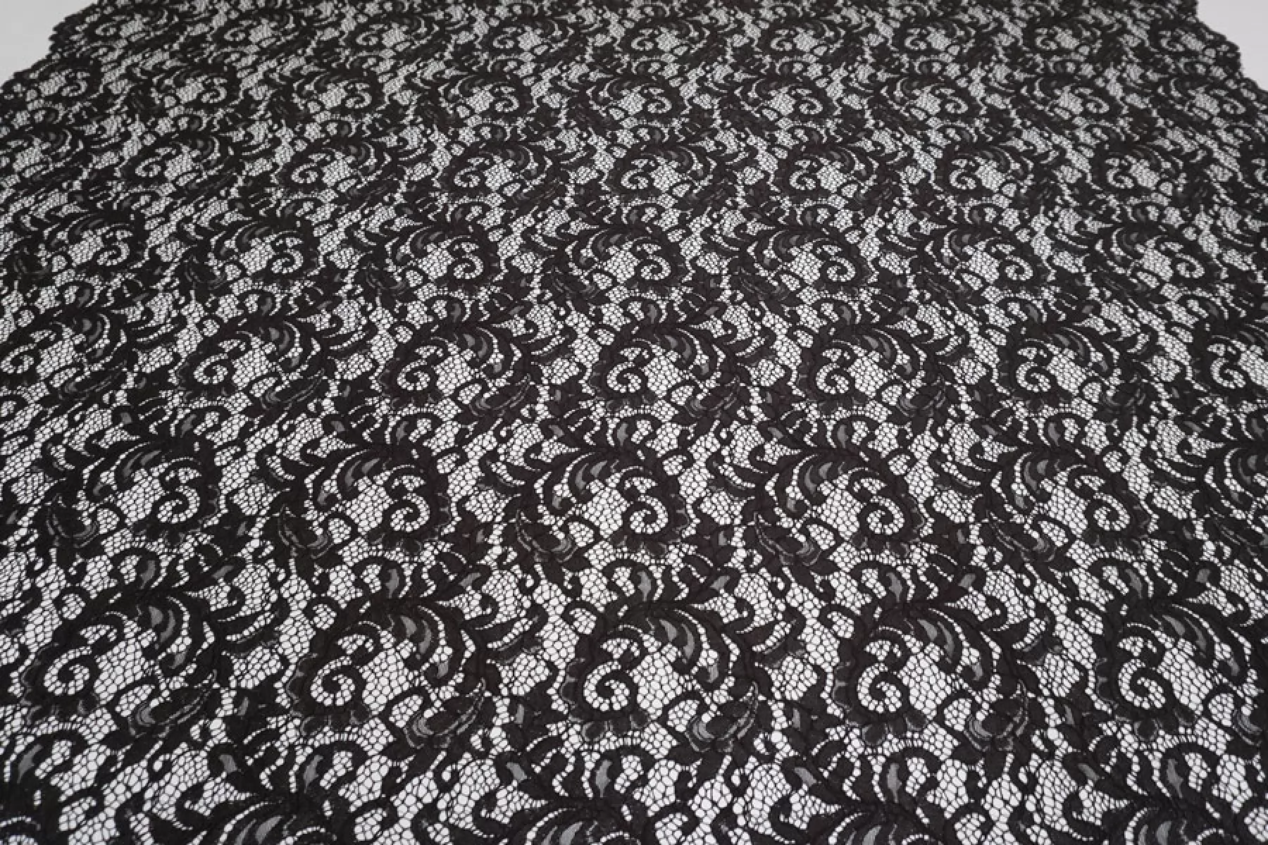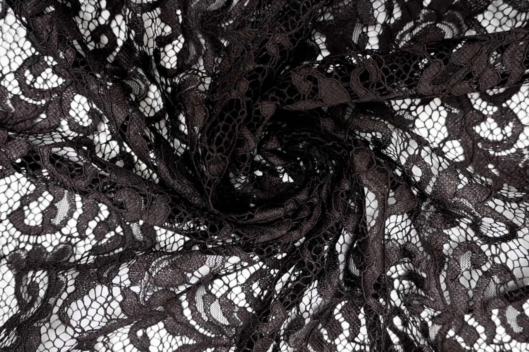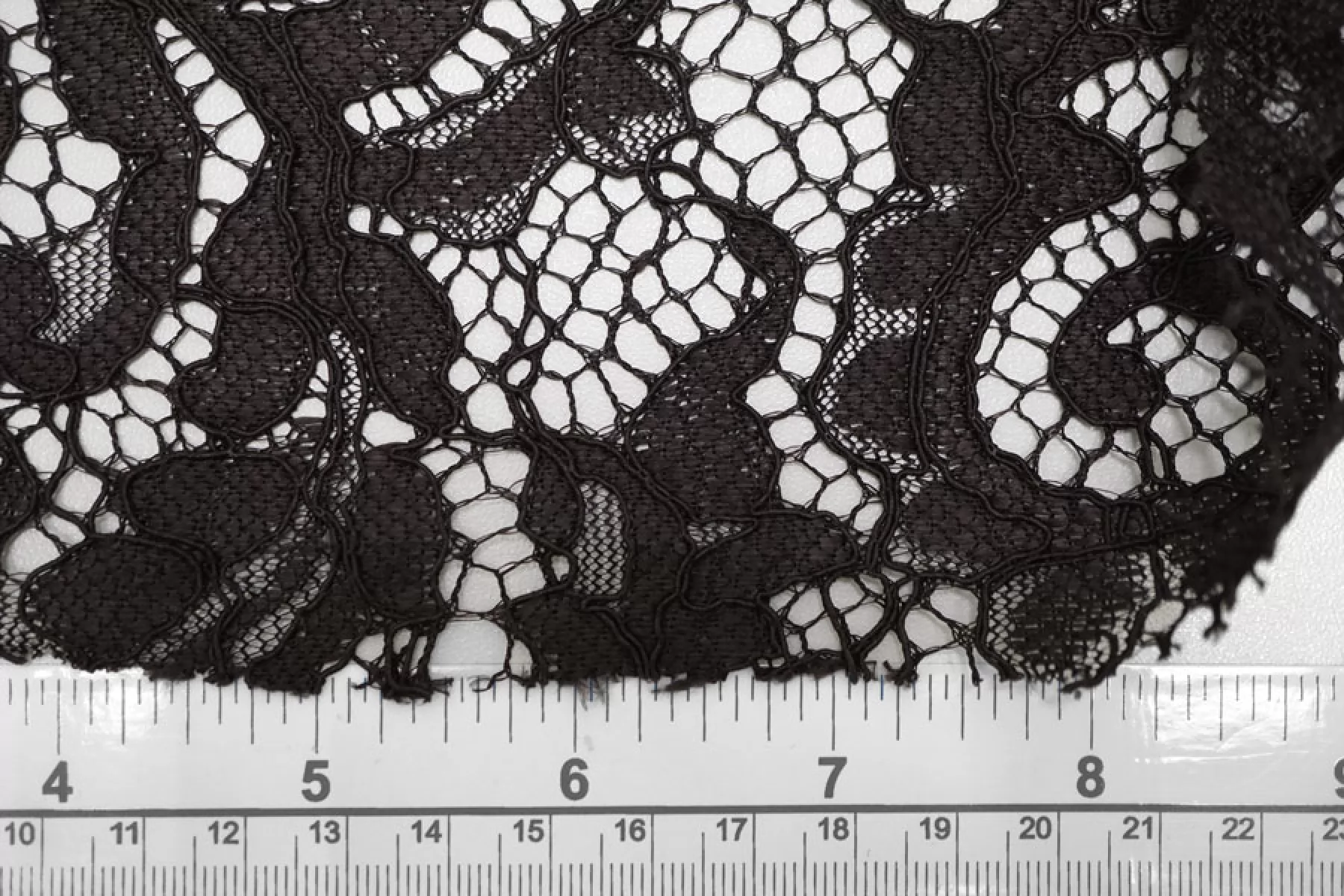 Итальянское кружево в тёмно-коричневом цвете (оттенок как у горького шоколада) с узором в виде цветов. Мягкое, фактурное. Практически не тянется. Не мнется, форму не держит, хорошо драпируется. Отлично подойдет для пошива самостоятельного изделия (на подкладе), или отделки отдельных элементов одежды и аксессуаров. Край фестонный.