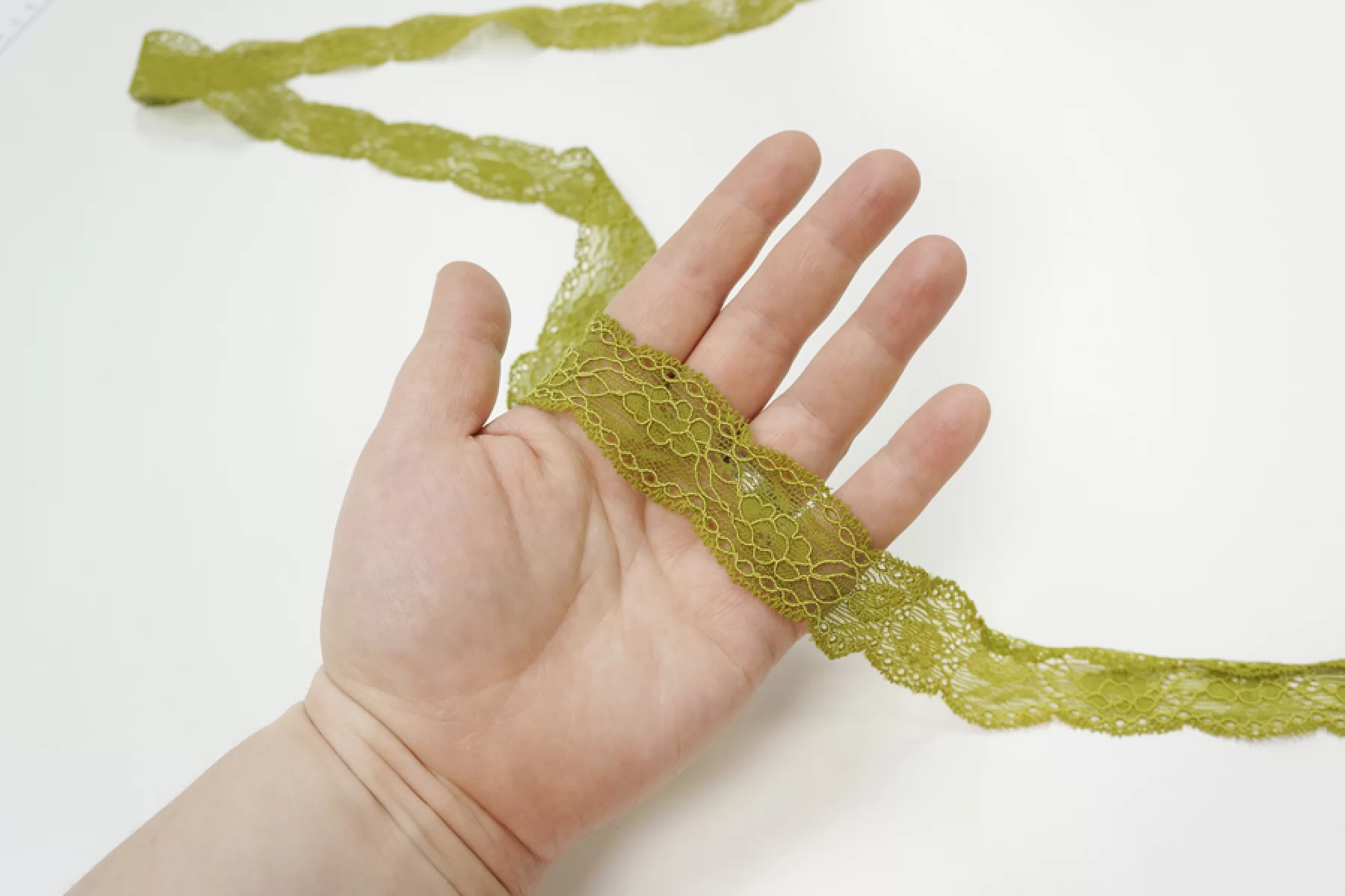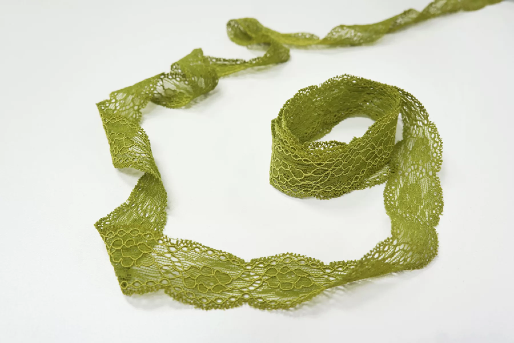 Итальянское кружево зеленое цвета . Мягкое, пластичное. Отлично подойдет для пошива нижнего белья, отделки одежды и аксессуаров.