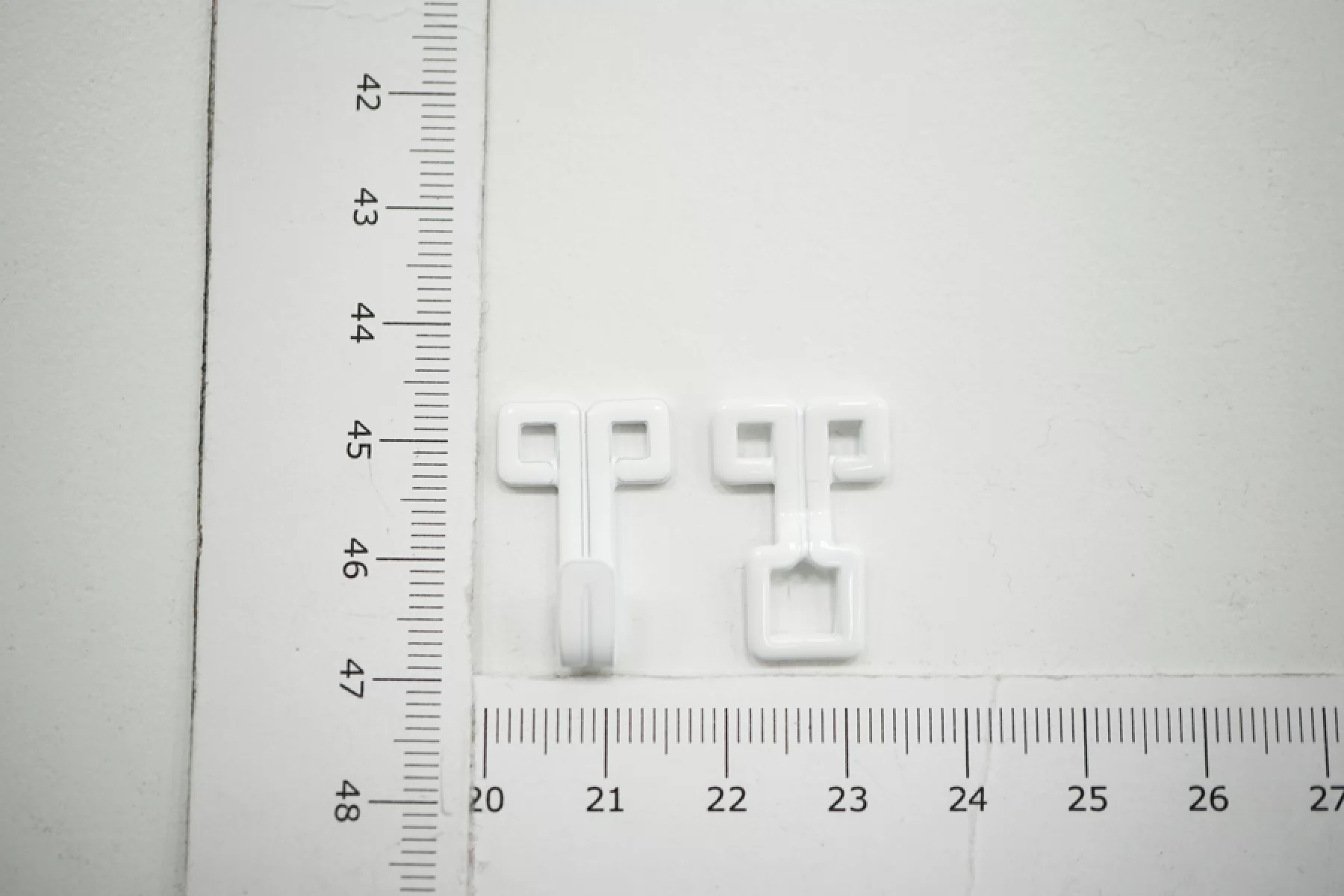 Крючки и петли металлические, покрытые белой эмалью . Размер крючка - 23 мм, петли - 22 мм. Продаются по 3 пары.