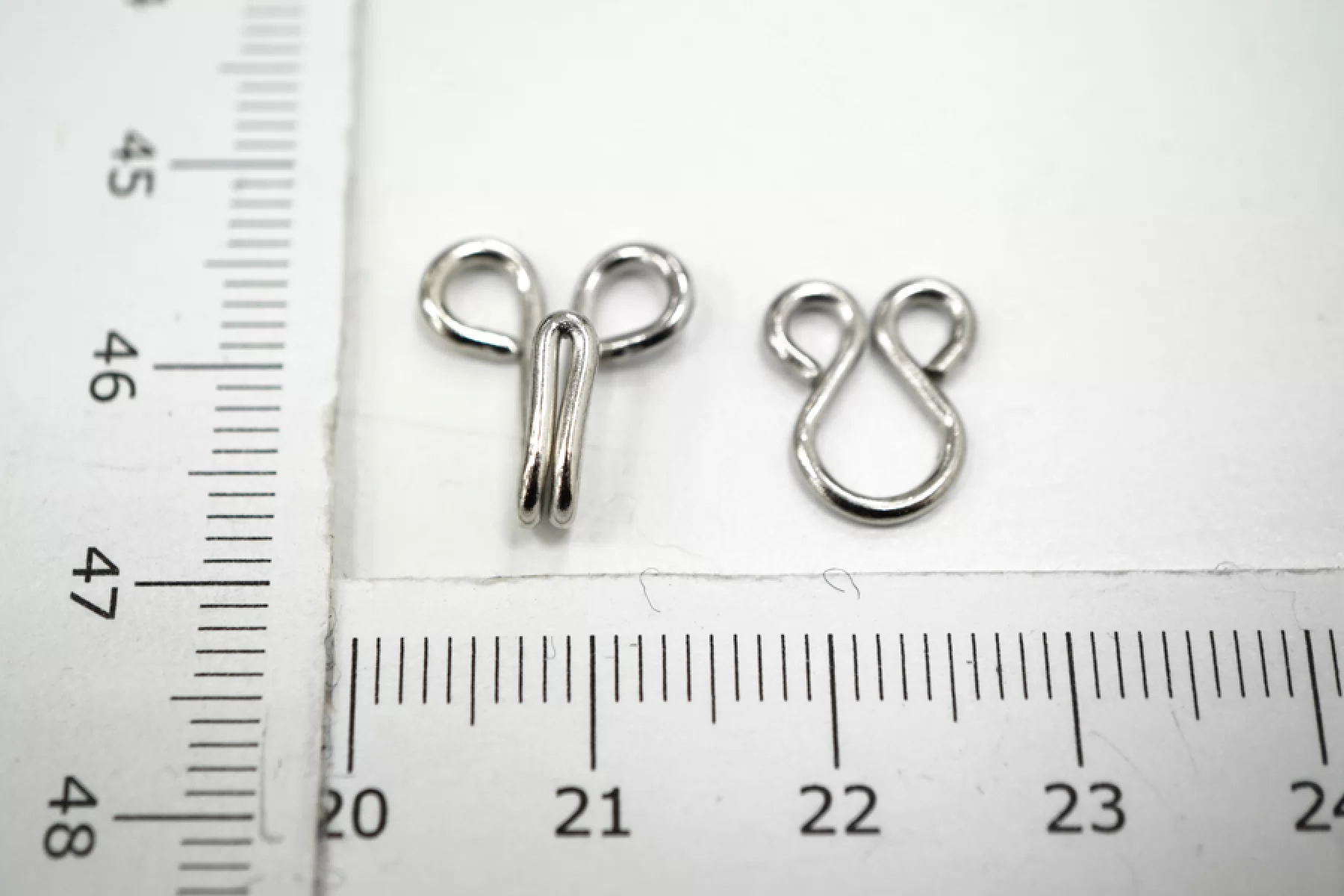 Крючки и петли металлические серебристого цвета. Размер крючка - 13 мм, петли 11 мм. Продаются по 10 пар.