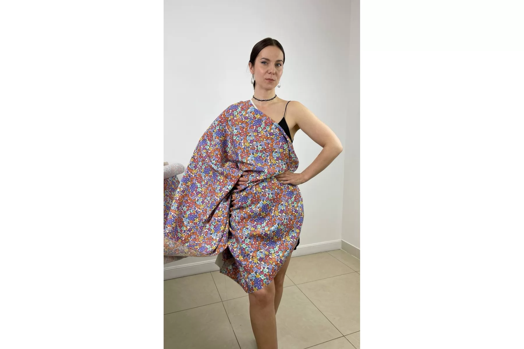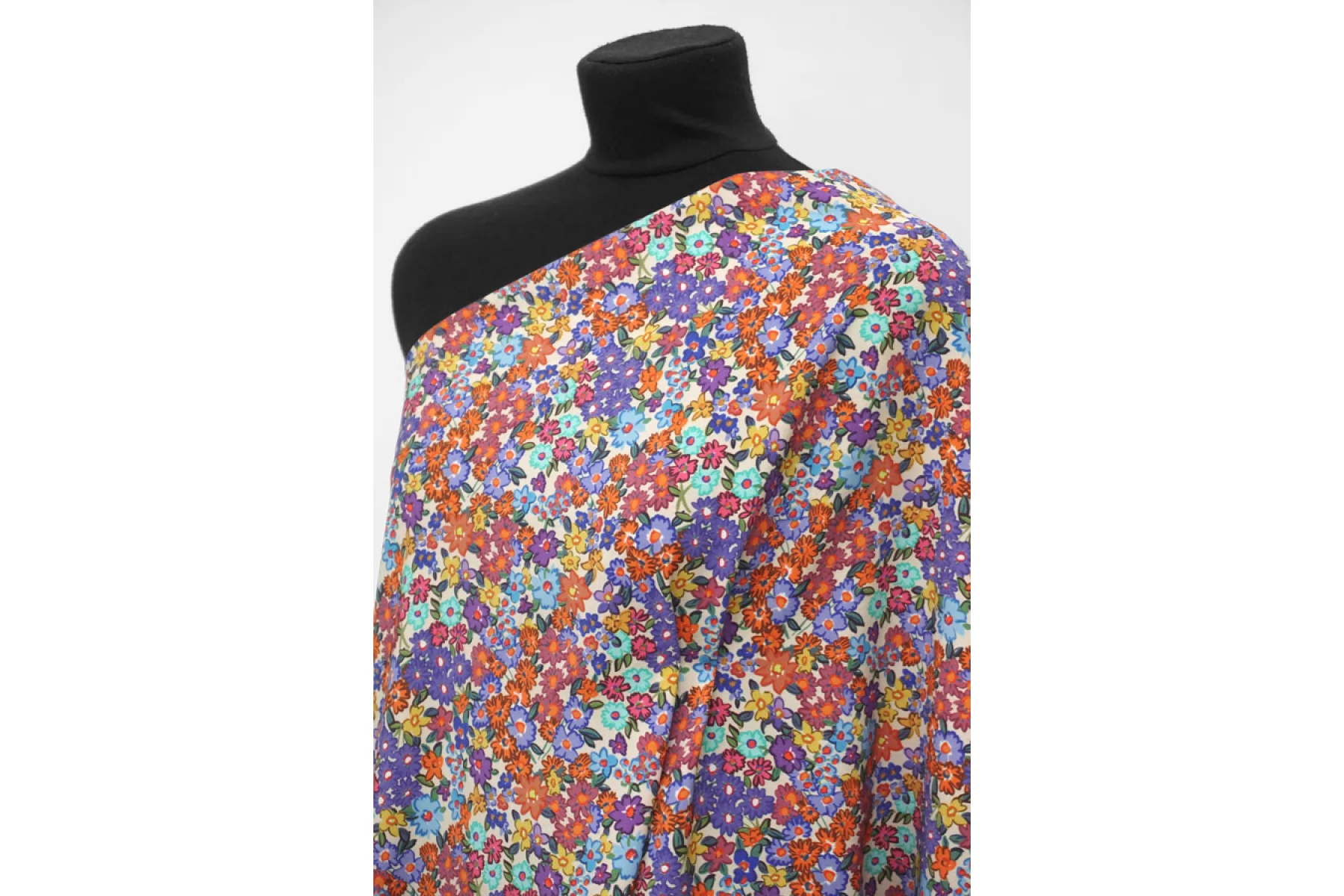 Плательная купра от Giambattista Valli со среднего размера цветочным принтом. Материал тактильно очень приятный, безумно мягкий. В основу материала добавлены нити нейлона. Немного тянется. Сминается. Совсем немного просвечивает контур силуэта, если смотреть прямо на просвет. Красив в пластике. Шьем платья, рубашки, брюки, юбки и не только.