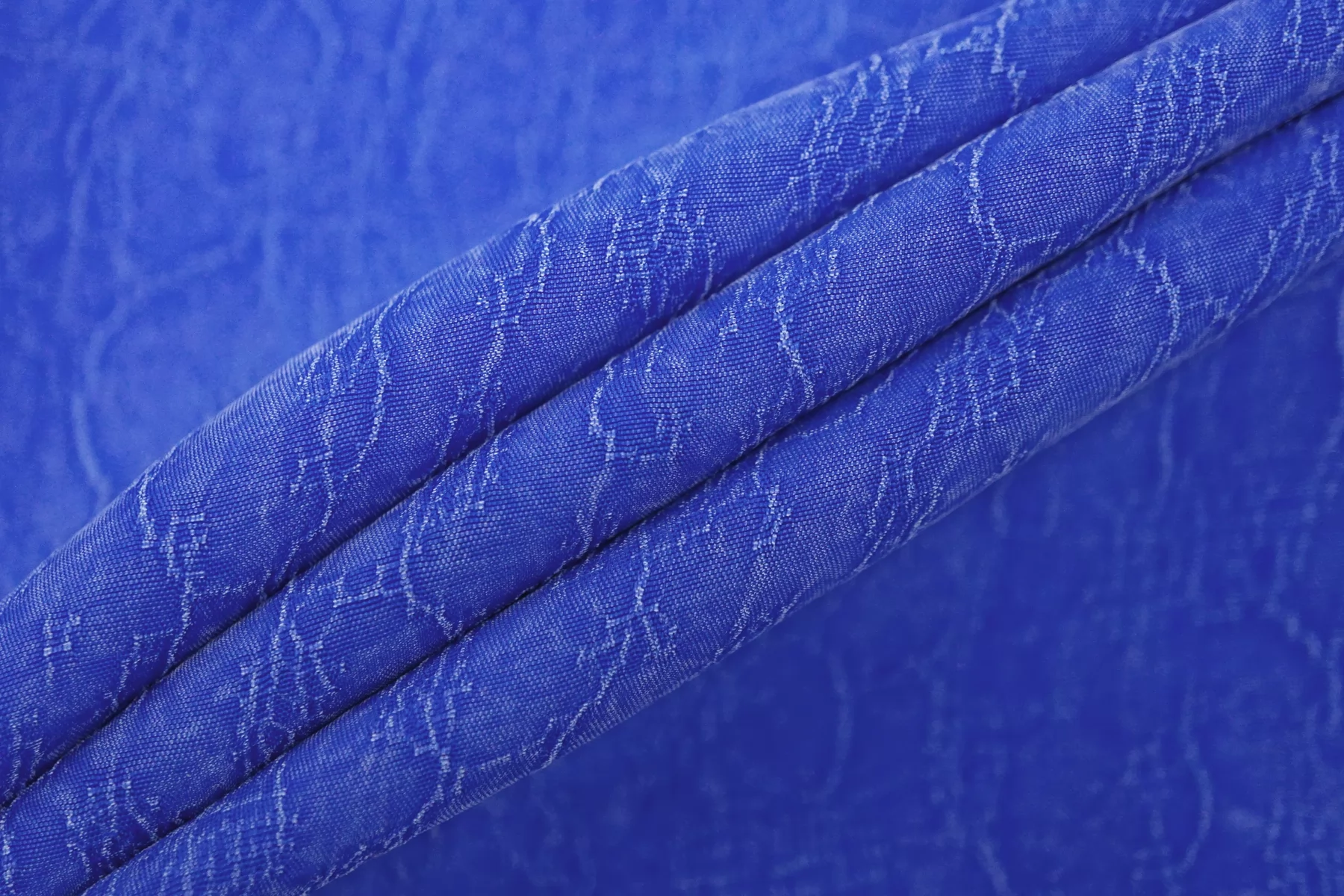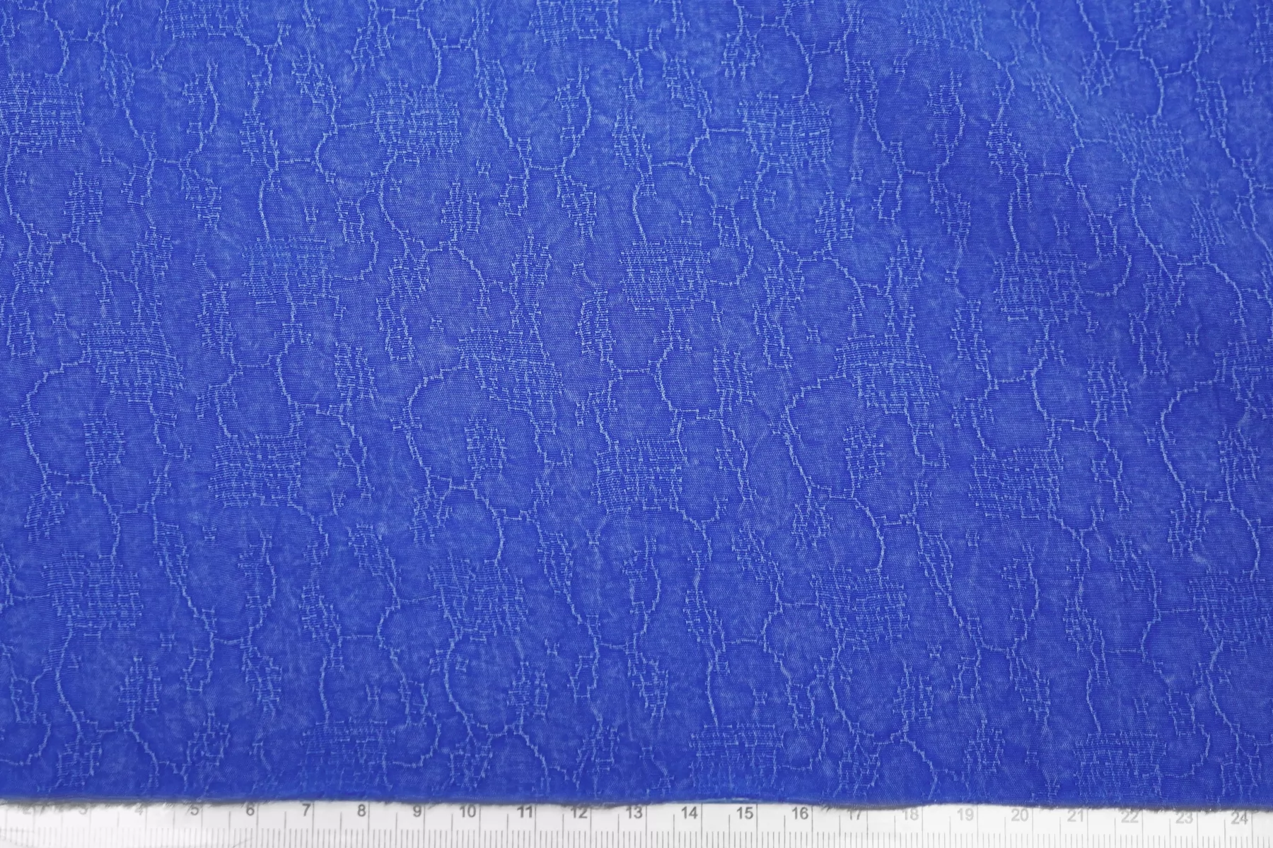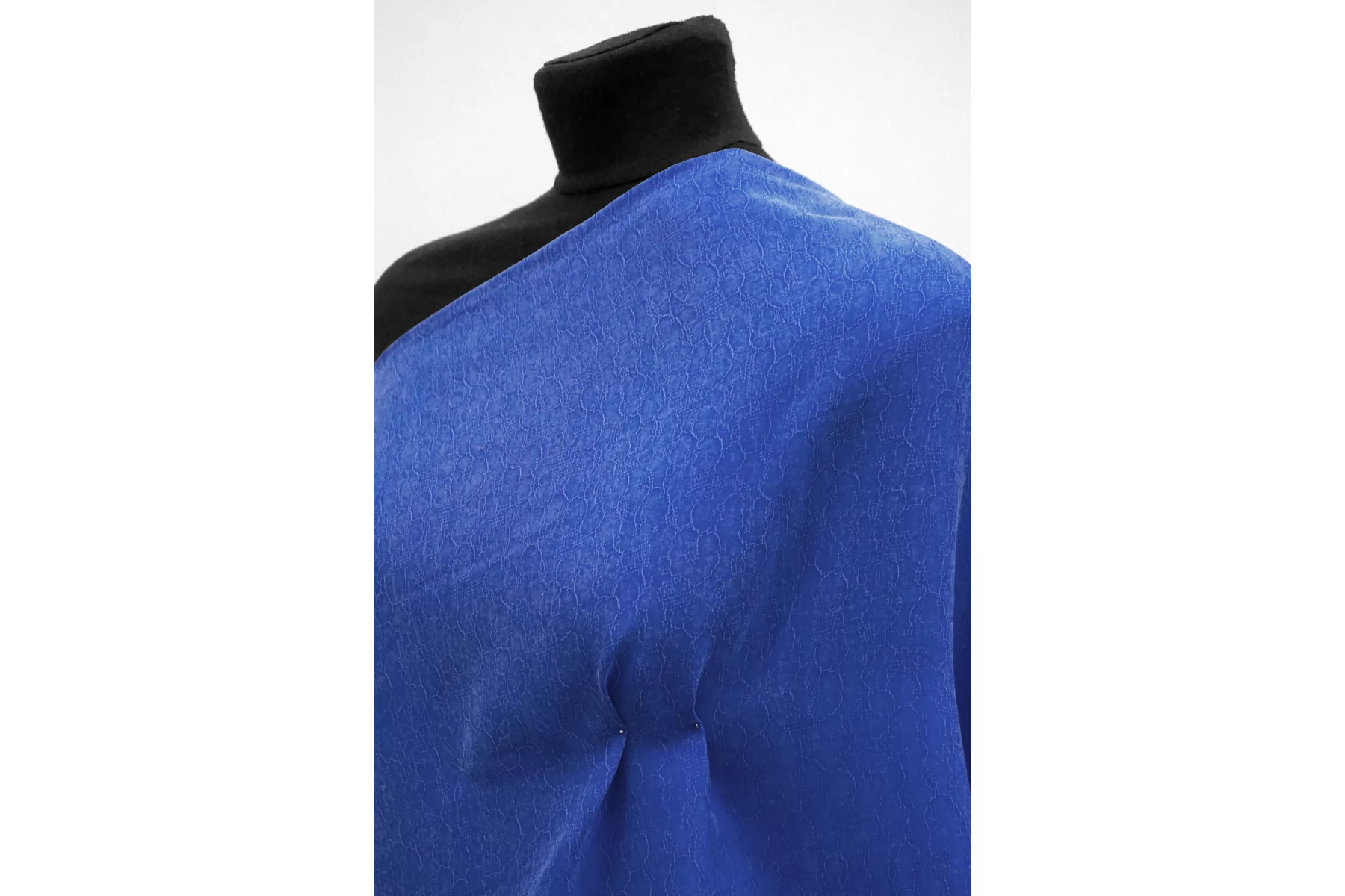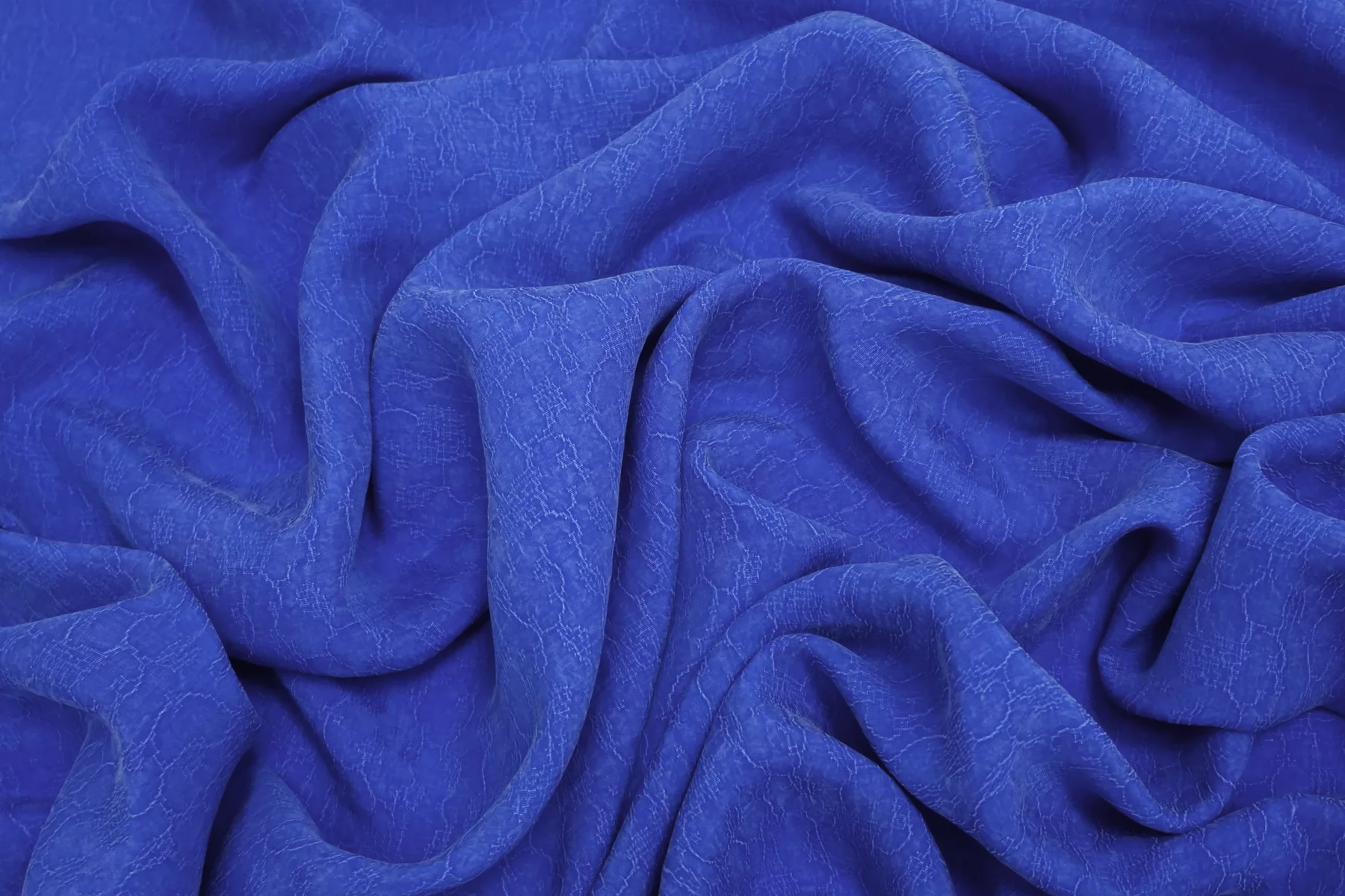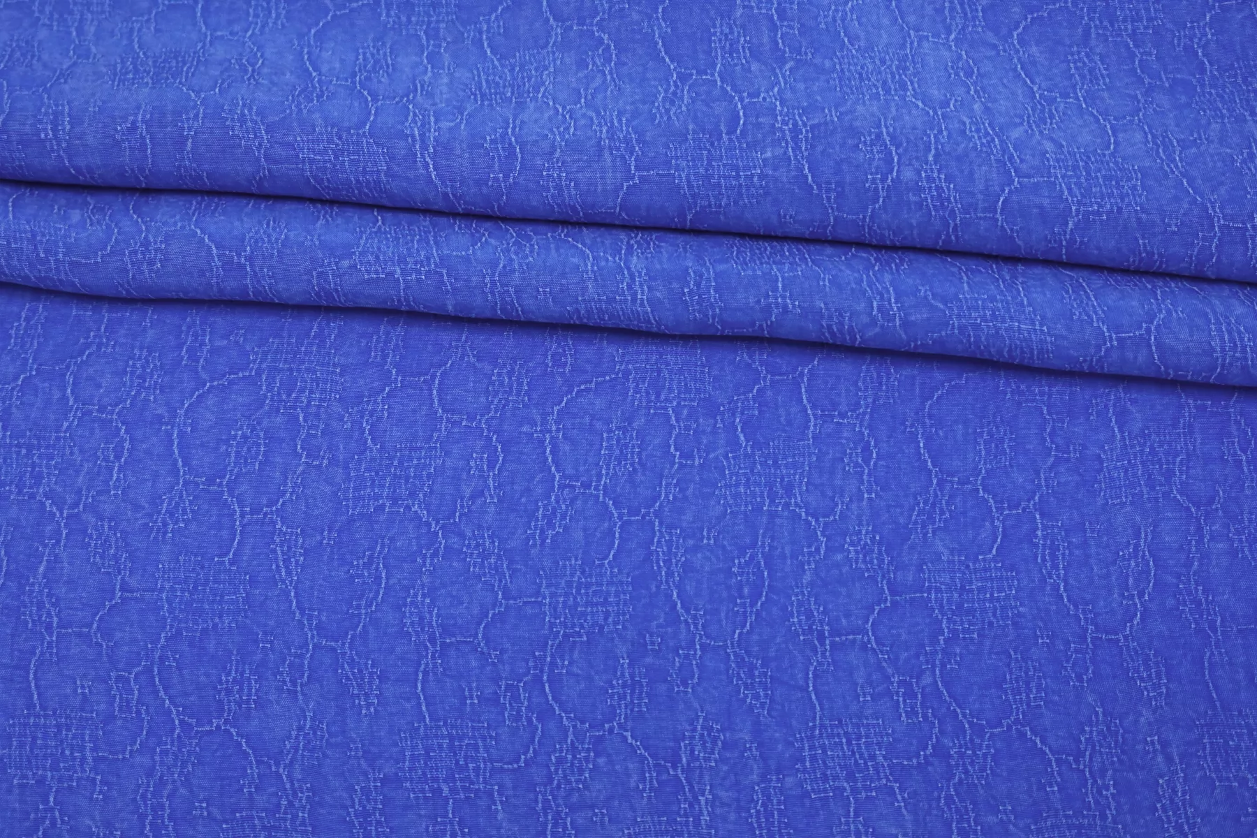 Красивая жаккардовая купра в синем цвете с абстрактным принтом. Тактильно невероятно приятная бархатистая. С белёсым отливом, характерным для купры. Тонкая, очень пластичная. Не тянется. Плетение неплотное, просвечивает силуэт. Красиво струится. Вариант на платья, юбки, блузки и одежду в бельевом стиле. При необходимости используйте подкладочный материал. Обязательно учитывайте усадку 5-10%.
