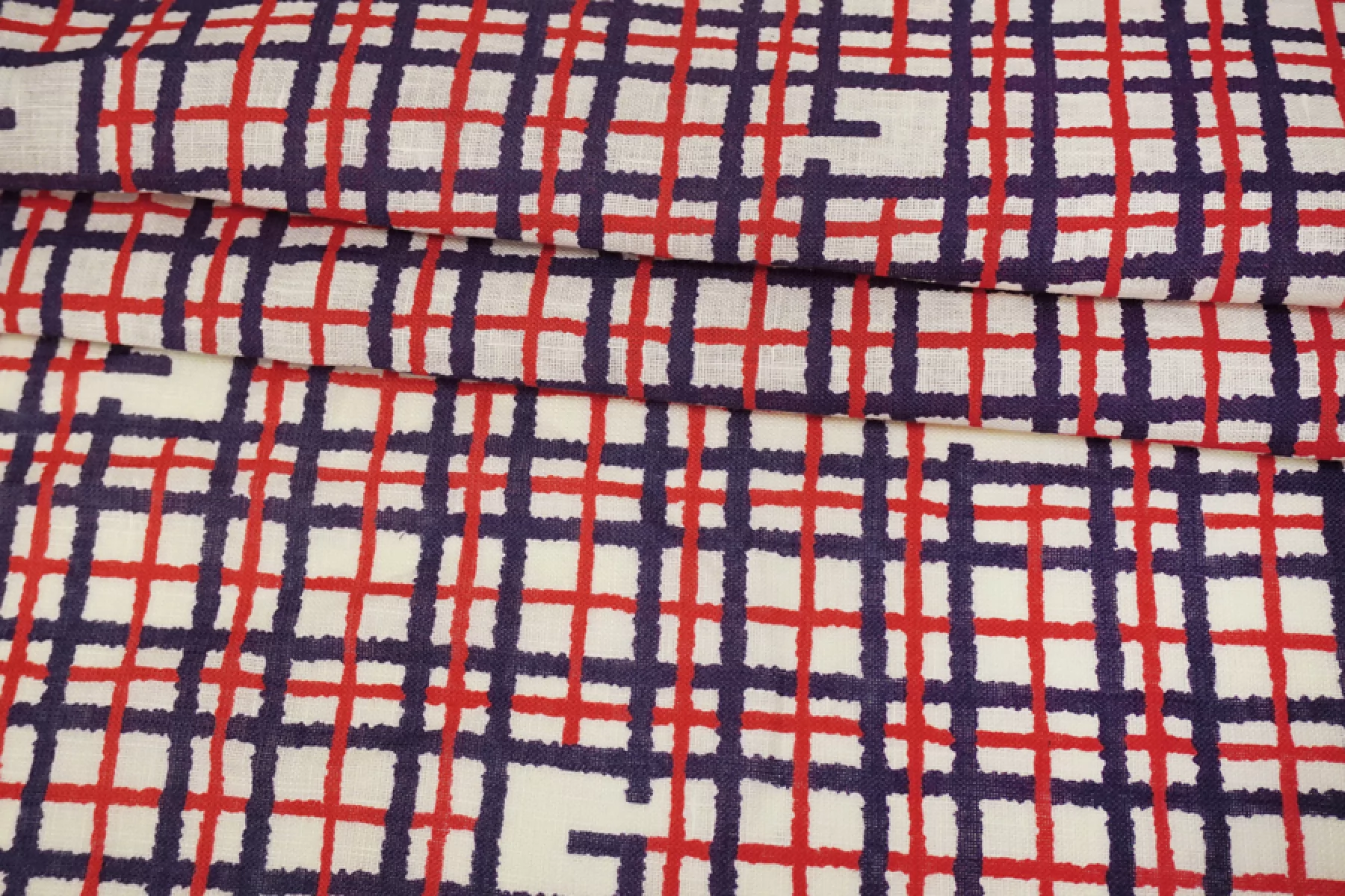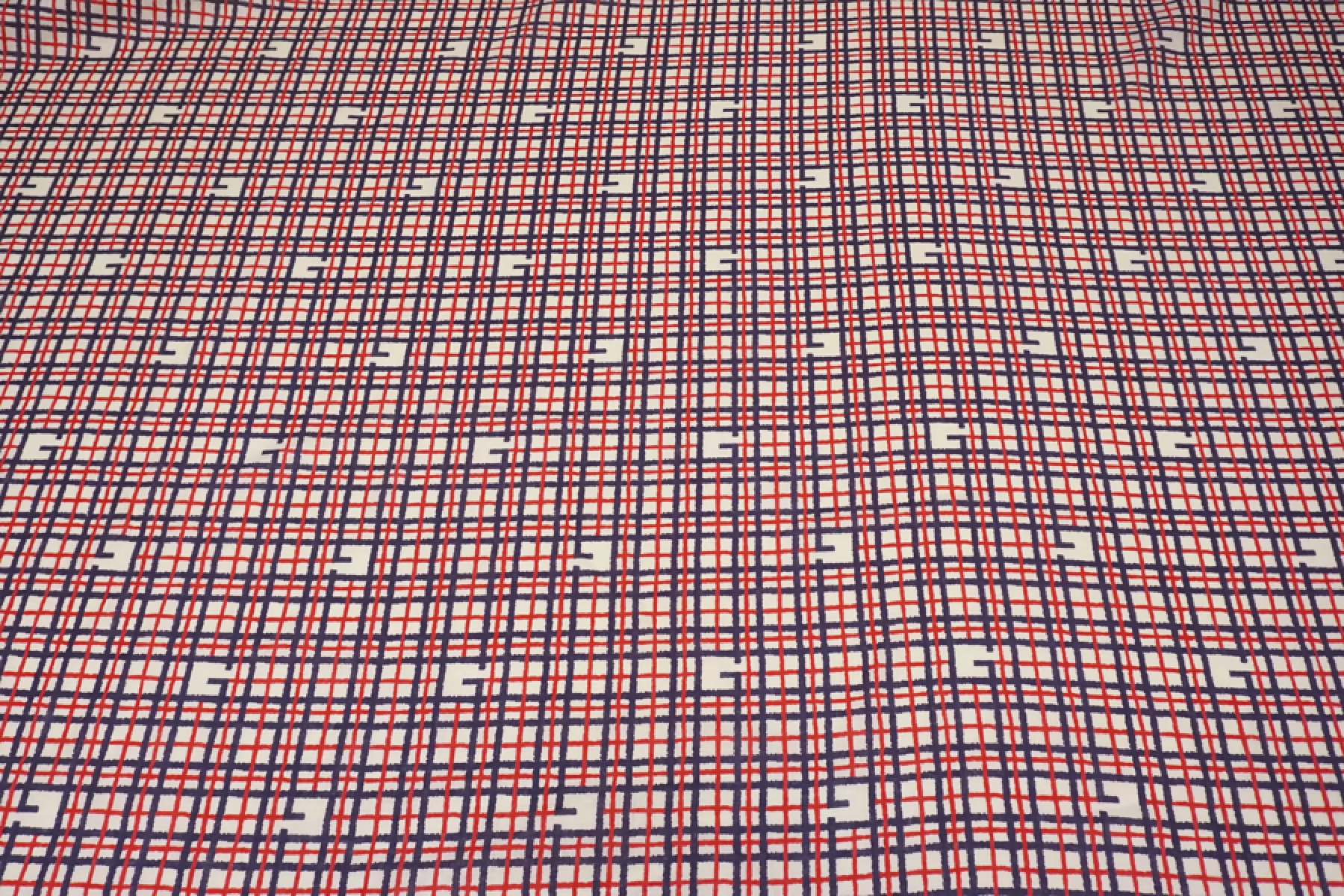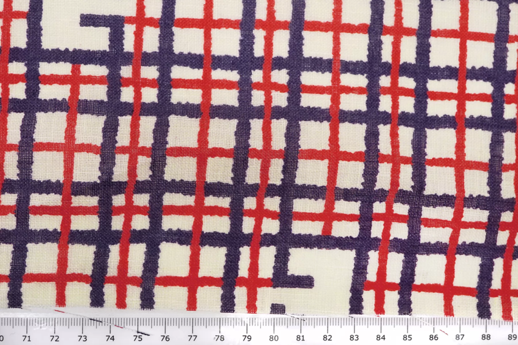 Лён Gucci Красно-синяя абстрактная клетка на бежевом H16/2 G10 12122301