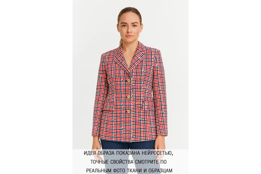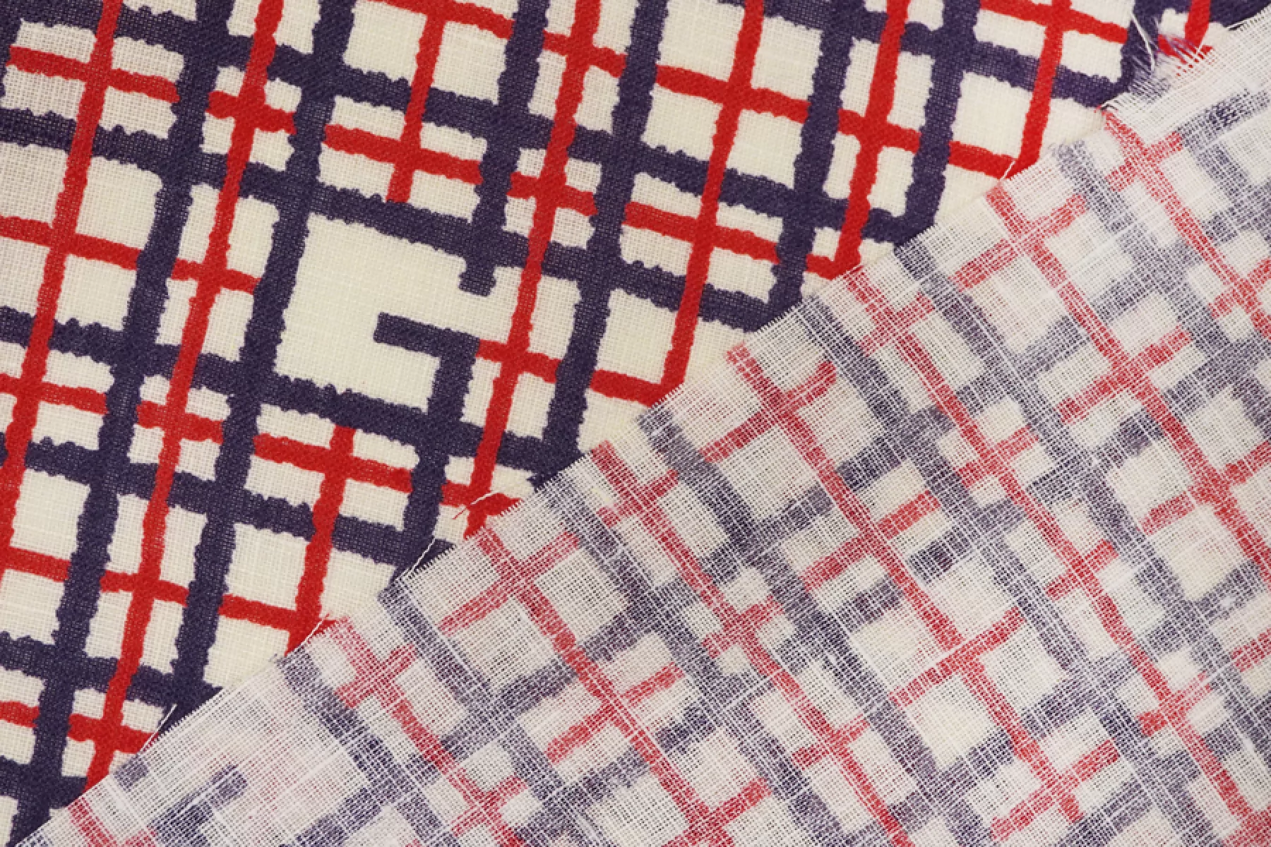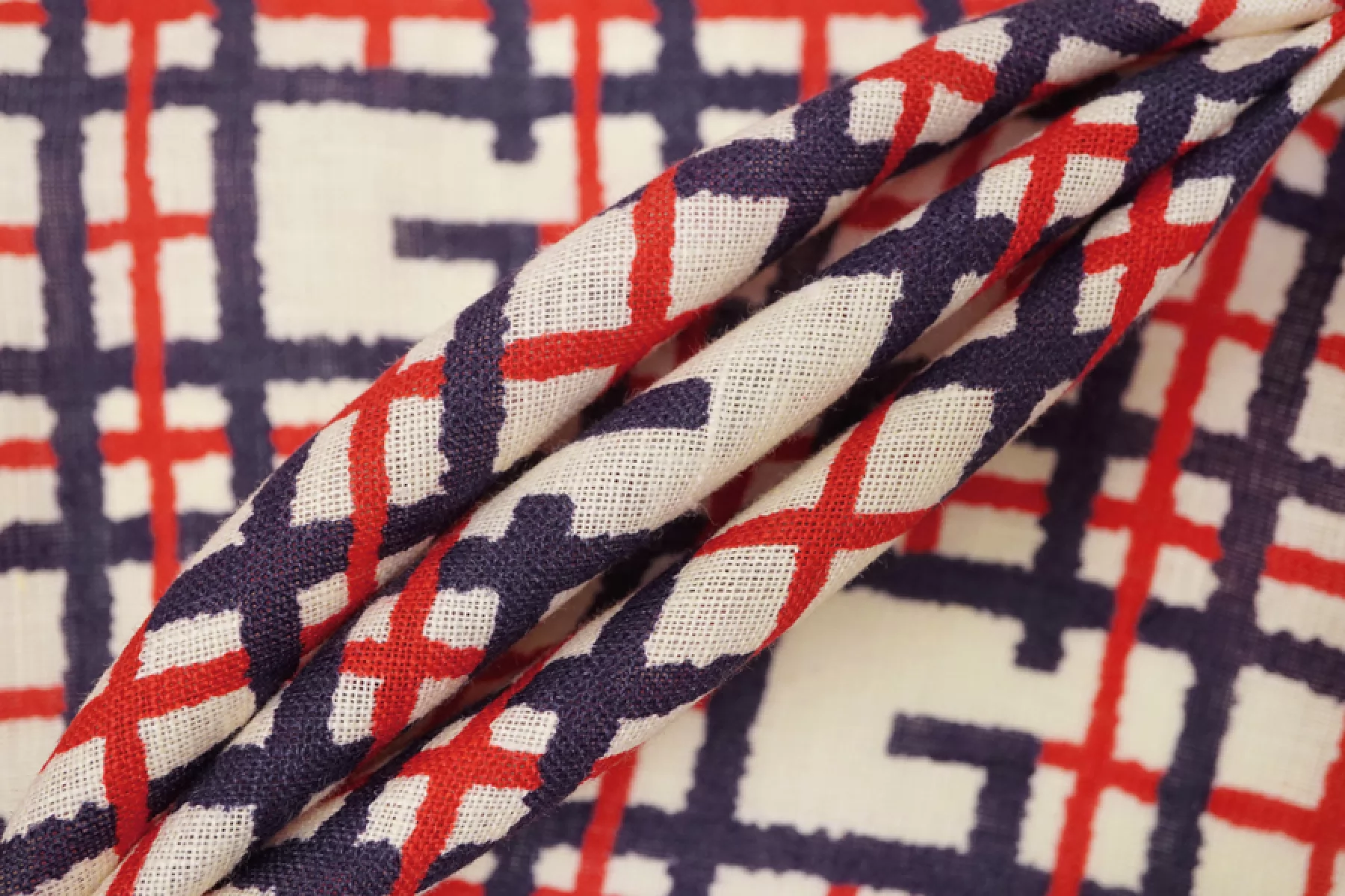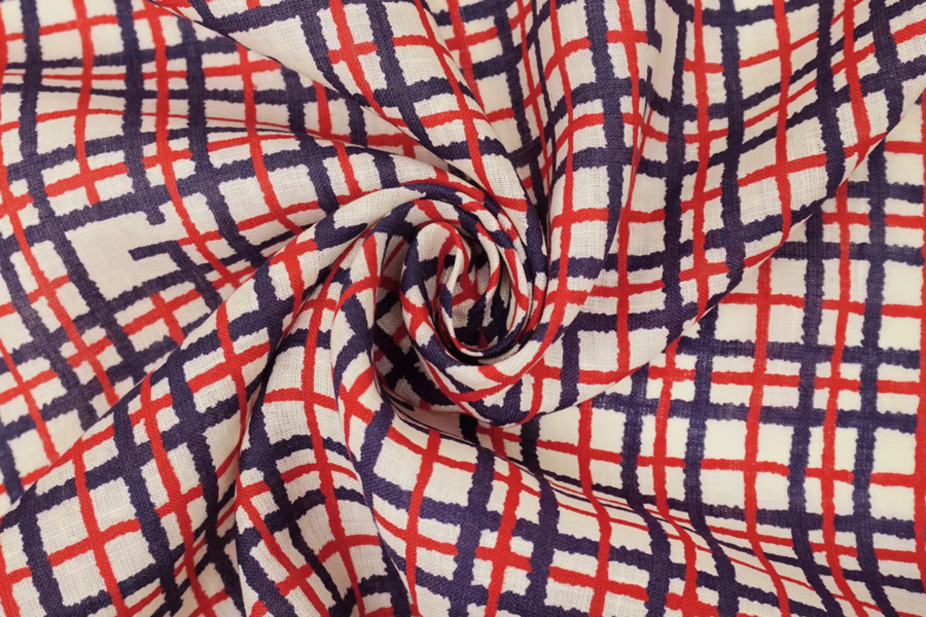 Лён Gucci Красно-синяя абстрактная клетка на бежевом H16/2 G10 12122301