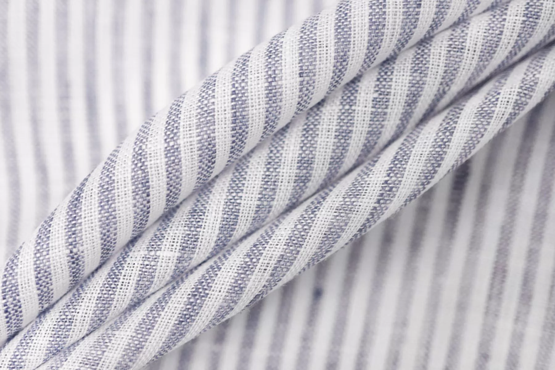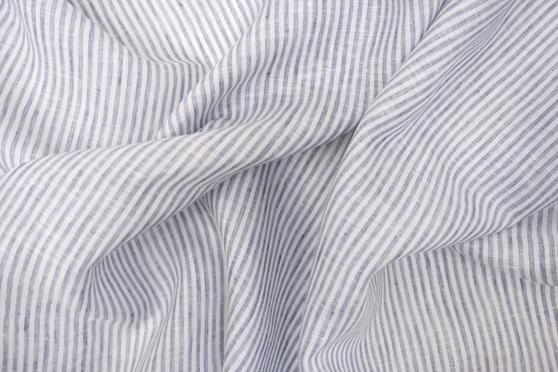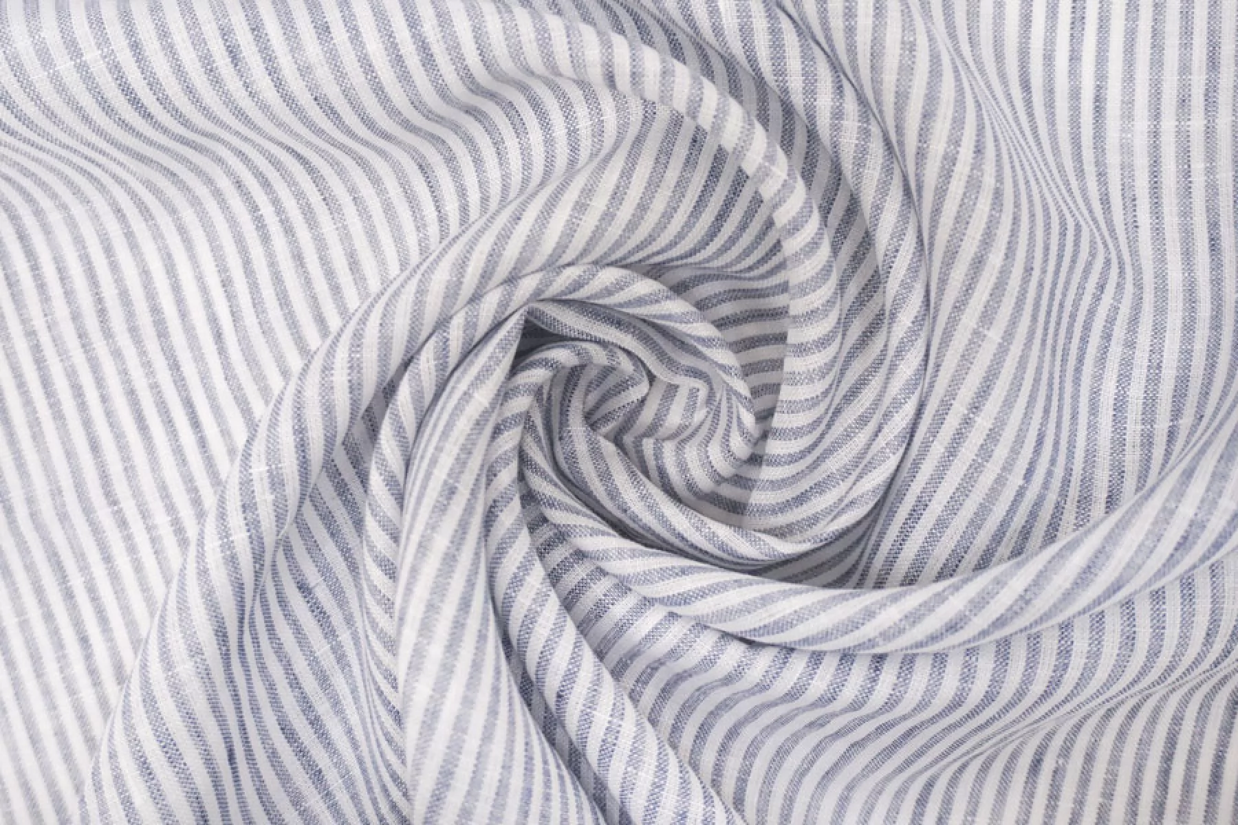 Классный плательно-рубашечный лён в узкую серо-голубую полоску Тактильно суховатый, с уплотнения. Тонкий приятный наоущпь. Мягкий. Просвечивает. Форму немного держит. Не тянется. Тактильно мягкий, приятный. Немного просвечивает. Не тянется. Хорошо драпируется. Отличный вариант на летние платья, рубашки, жакеты, брюки на резинке. При необходимости используйте подкладочный материал. Учитывайте возможную усадку.