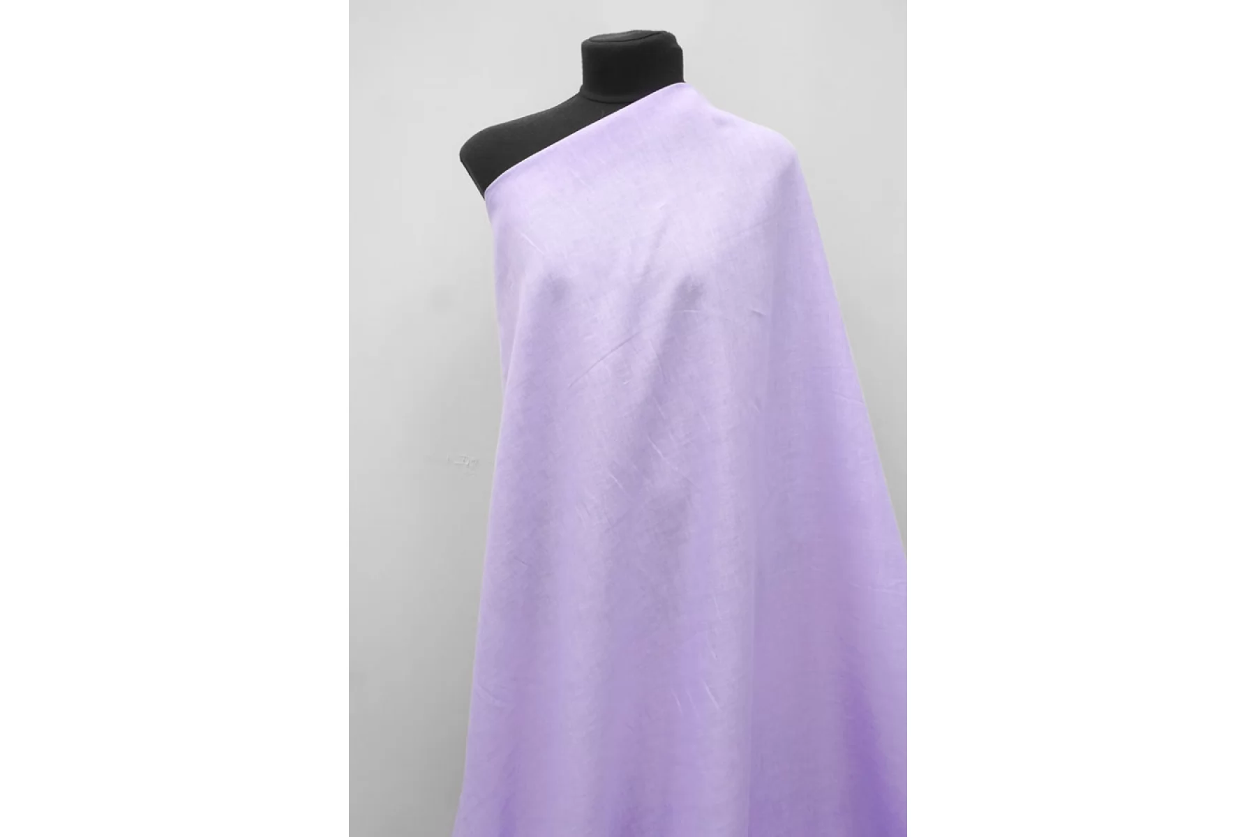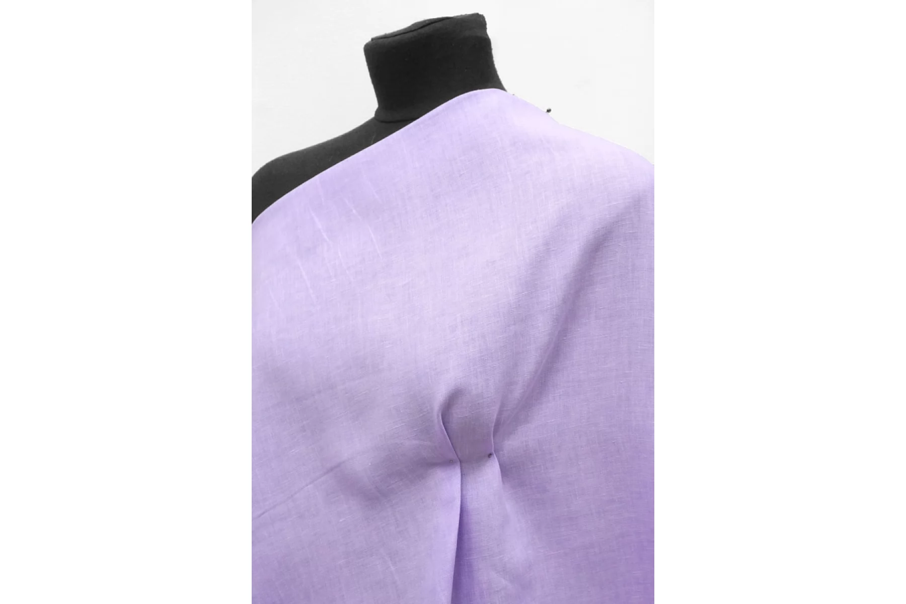 Плательный лён красивого лавандового оттенка. С классическими для льна утолщениями нити. Просвечивает силуэт. Немного держит форму. Тактильно суховат. Не тянется. Мнется. Вариант на летние платья, рубашки, юбки и не только. При необходимости используйте подкладочный материал.