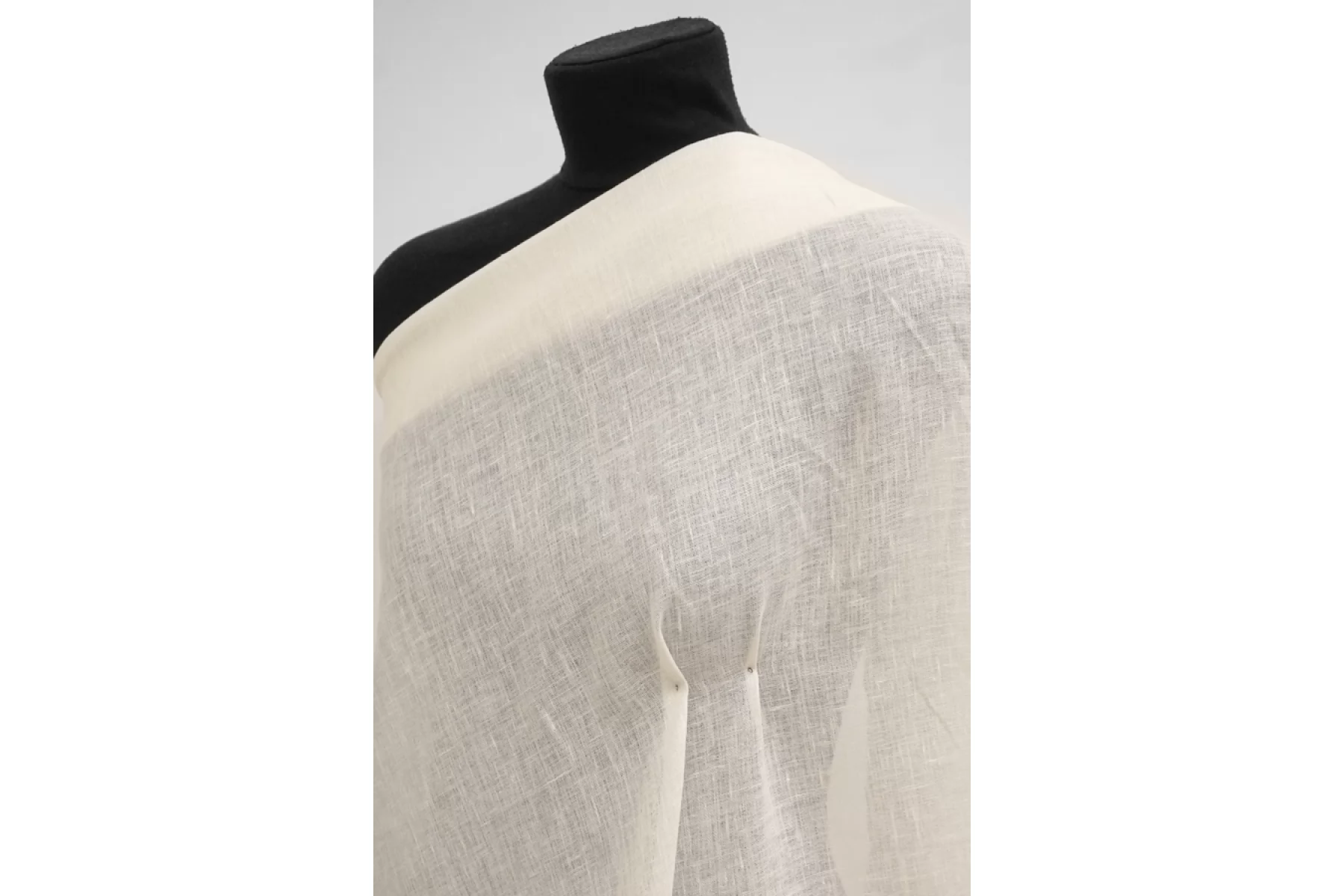 ВНИМАНИЕ! Полоса вдоль всей ткани, 27 см от кромки см. фото. Лён рубашечно-плательный молочного оттенка, с красивым легким блеском. Плетение разреженное. Тактильно материал приятный, гладкий, нет суховатости, свойственной льну, но есть уплотнения. Не тянется. Мнется. Просвечивает. Отлично держит форму. Красивый вариант на платья, рубашки, юбки, идеально на лето. При необходимости используйте подкладочный материал. Учитывайте усадку материала.